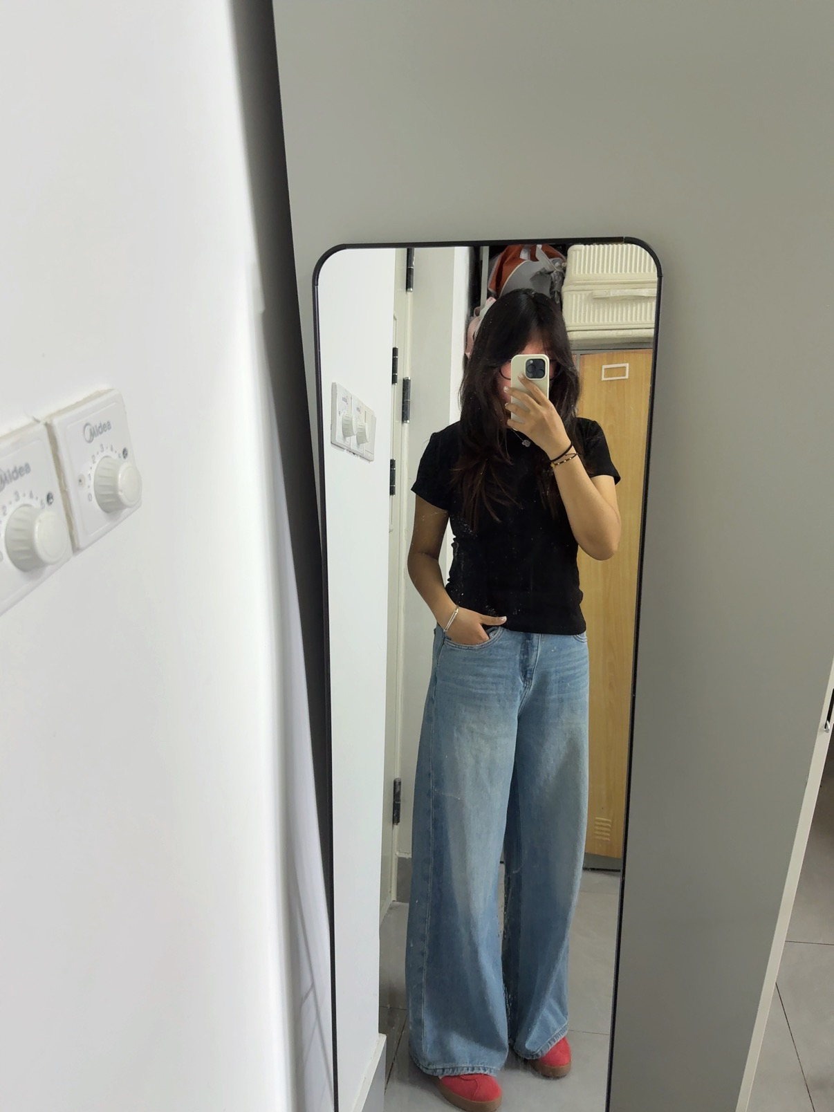 春日通勤穿搭公式来啦! 格子衬衫+黑T+阔腿牛仔裤+红德训 一套不费力的好看,上课/上班穿都超合适 红鞋是整套的点睛之笔,瞬间让基础款活起来了 平价穿搭也能穿出高级感~