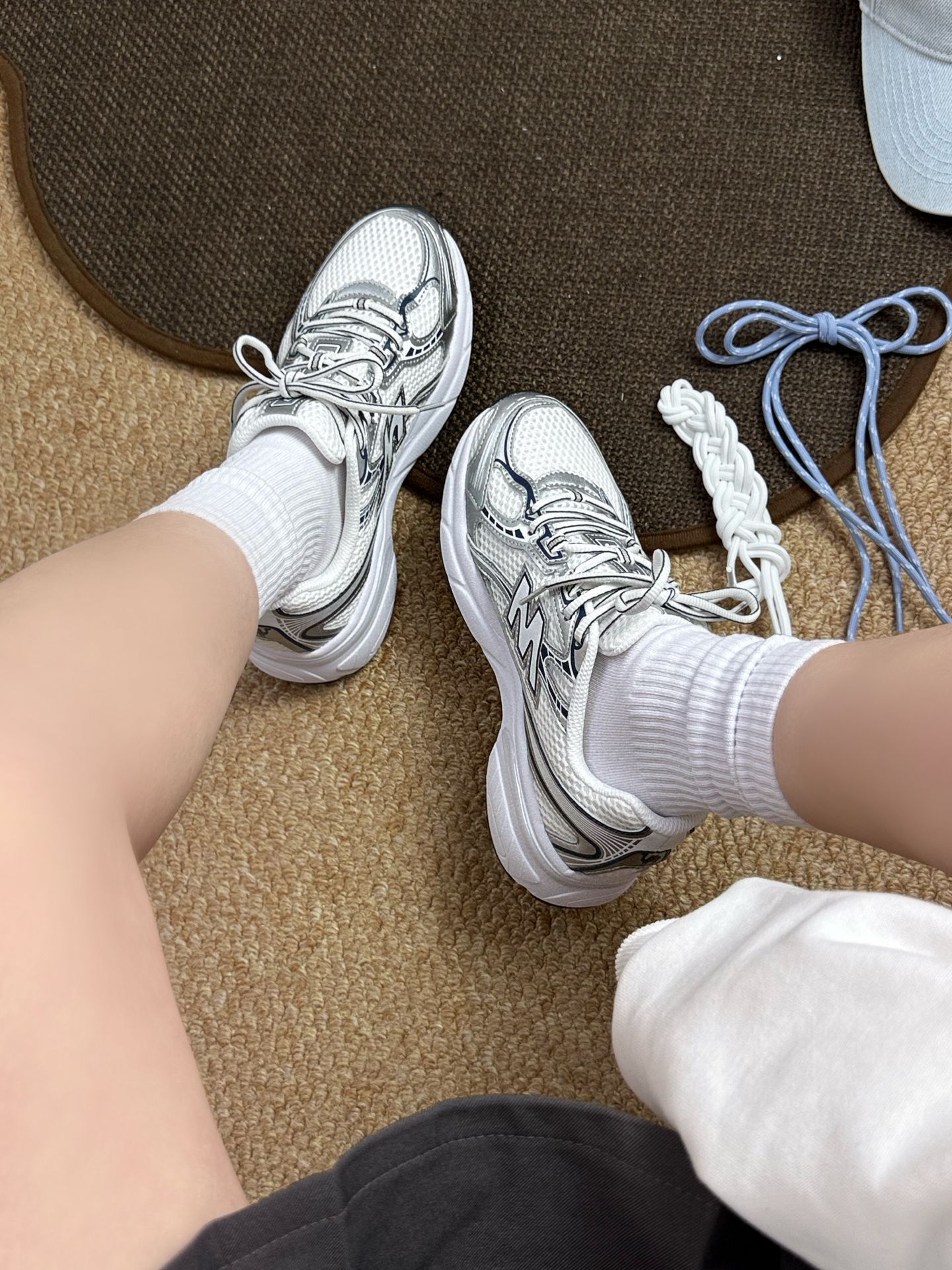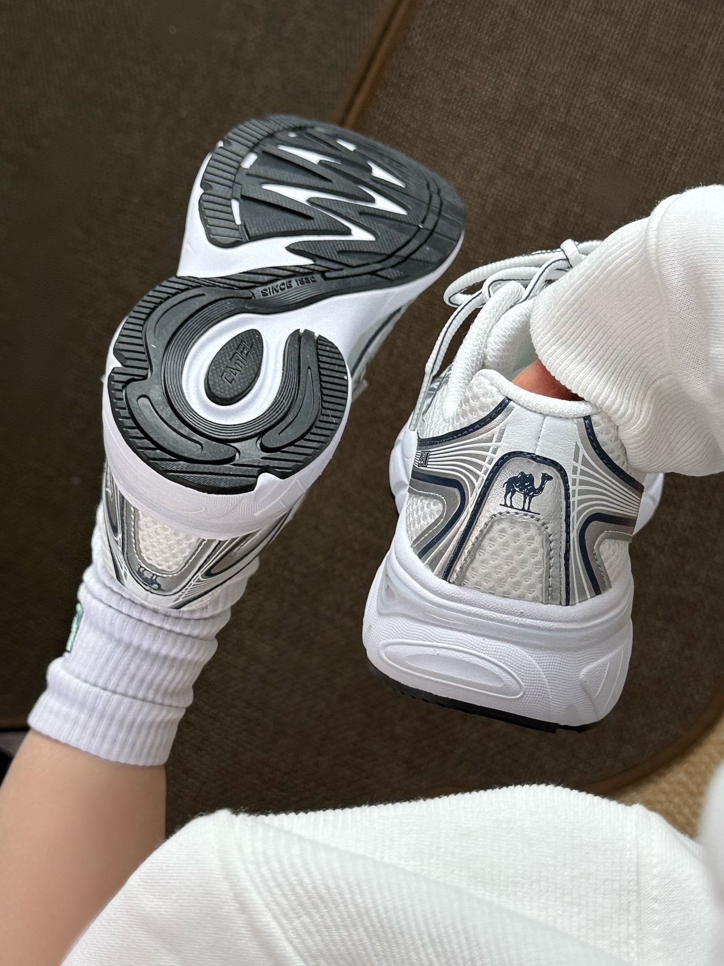 测评封神!骆驼银白复古跑鞋,百元价位get千元质感! 细节控真的爱惨:透气网面+亮面皮革拼接,质感高级又耐造;Y2K风线条设计,千禧感拉满;银白撞色不挑肤色不挑穿搭;鞋型超修饰脚型,显脚小显腿直,小个子也能轻松驾驭~ 耐磨橡胶大底防滑又稳,日常通勤、健身运动、逛街约会全场景适配,辣妹穿酷飒,甜妹穿温柔,完全不挑人! 作为骆驼爆款复古款,颜值与实力双在线,不管是自留还是送朋友都超有面,年度必入老爹鞋...