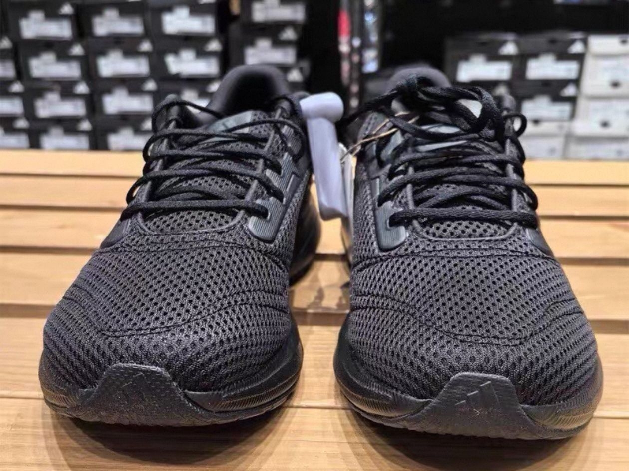 黑色网面设计,透气又舒适,适合长时间运动穿着。鞋底采用轻质EVA,减震效果好,跑步或日常通勤都很OK!鞋侧三条杠超有辨识度,简约百搭,运动休闲都能轻松驾驭✨。
