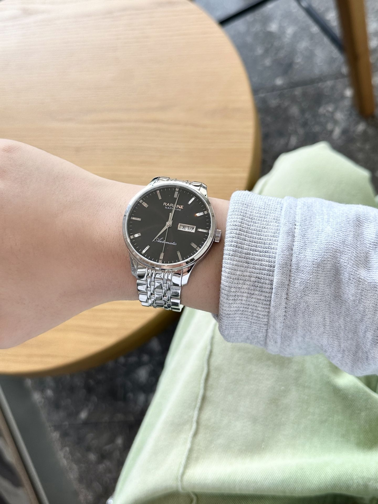 lululemon少年感~机械表打开今日look|||今天是清新少女感look呀 lululemon灰色卫衣搭配绿色牛仔裤 清爽气息扑面而来呀🥝 手上戴了雷诺大师系列的机械手表来点缀今日look 银色钢带搭配黑色表盘大气简约 还有日历窗格设计 也挺有辨识度的🫧 通勤出游戴着正合适 #我们都爱戴手表 #人生的第一块手表 #配饰的亿点点作用 #这个手表品牌我独爱 #RARONE雷诺表 @RARONE雷...
