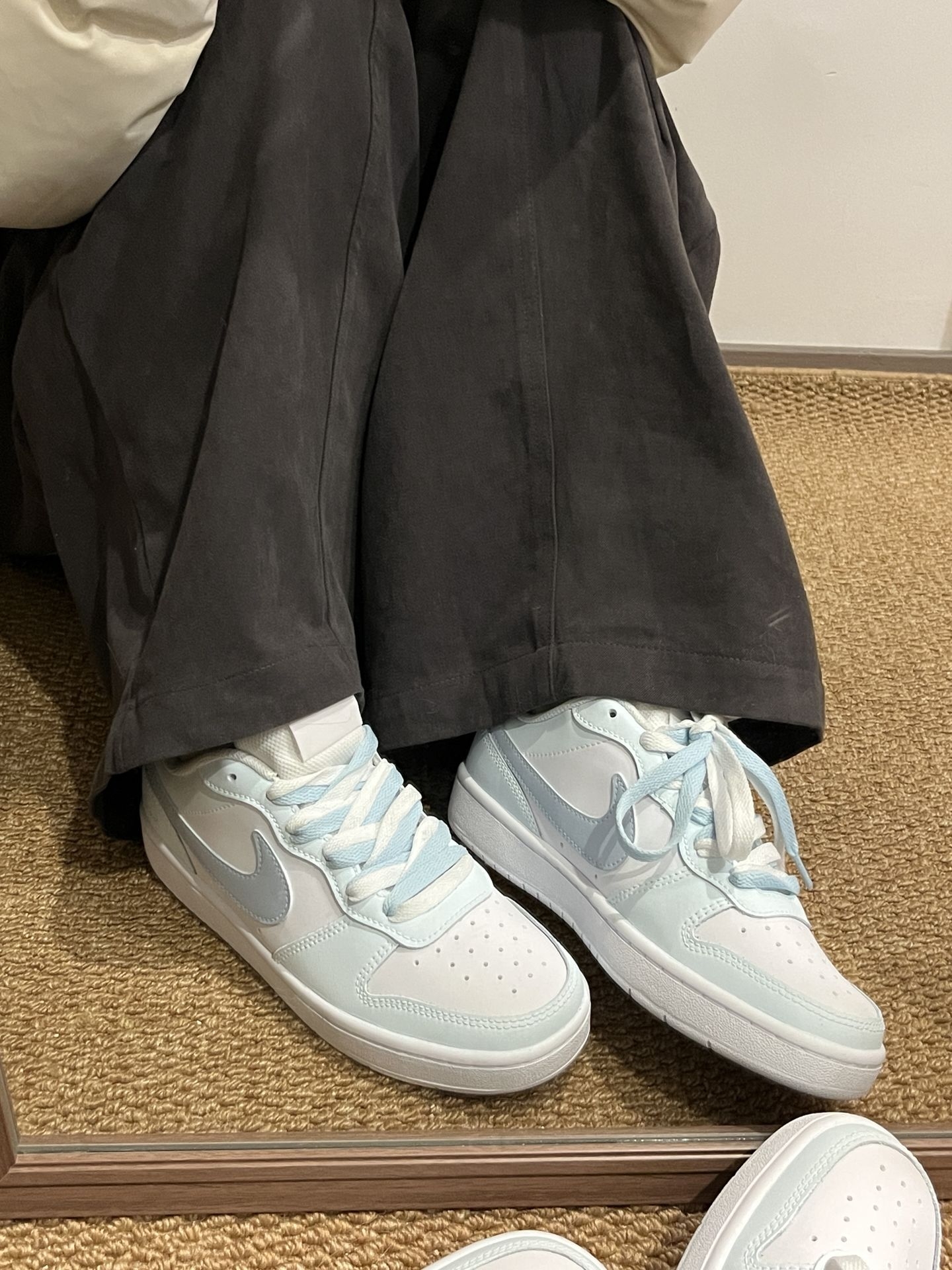 谁能拒绝奶敷敷的nike板鞋‼️|||介个baby蓝板鞋太戳我啦 上脚很有少年感,搭配牛仔裤就很好看捏 双层鞋带的搭配很有个性喔 也不太容易撞款,平时通勤或出去玩穿都合适 #耐克nike #马上换新鞋 #交出你的鞋靴链接 #板鞋拿捏秋冬氛围感 #秋冬板鞋选这双
