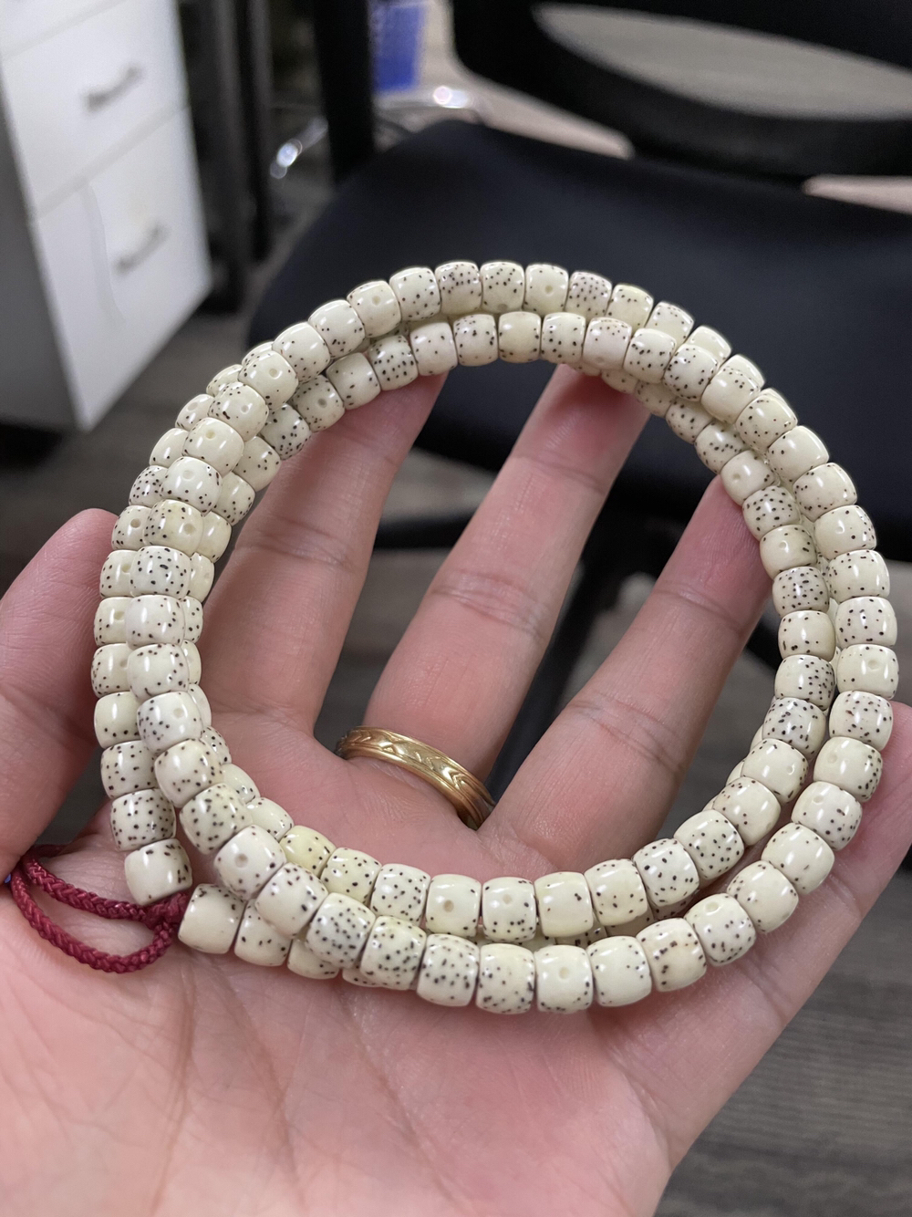 最近刚入的星月菩提,真的越戴越喜欢!毕业级的原生态顺白料,摸着手感超润,密度也在线,颗颗都很规整。还能自己DIY配珠,男女款都能戴,和对象搭情侣串超合适。108颗的寓意也超戳,八方来财、时来运转,日常盘盘解闷解压,戴着手腕图个事业顺、金榜题名的好彩头~