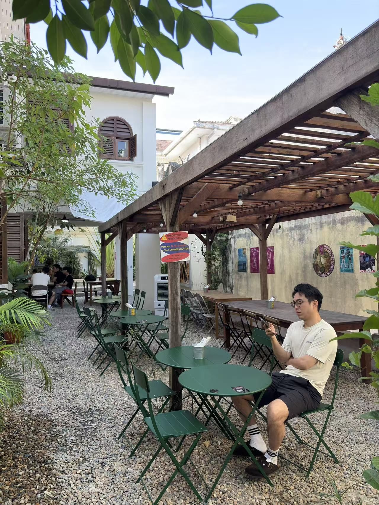 谁说花衬衫只能在海边穿?在城市街头一样可以穿出复古感。 单品细节: 深色系印花衬衫,利落又带点痞气;搭配质感十足的勃肯半拖,层次感丰富且透气。 场景适配: 这种搭配不仅能 hold 住看展、喝咖啡,去球场挥上两拍也毫无违和感。