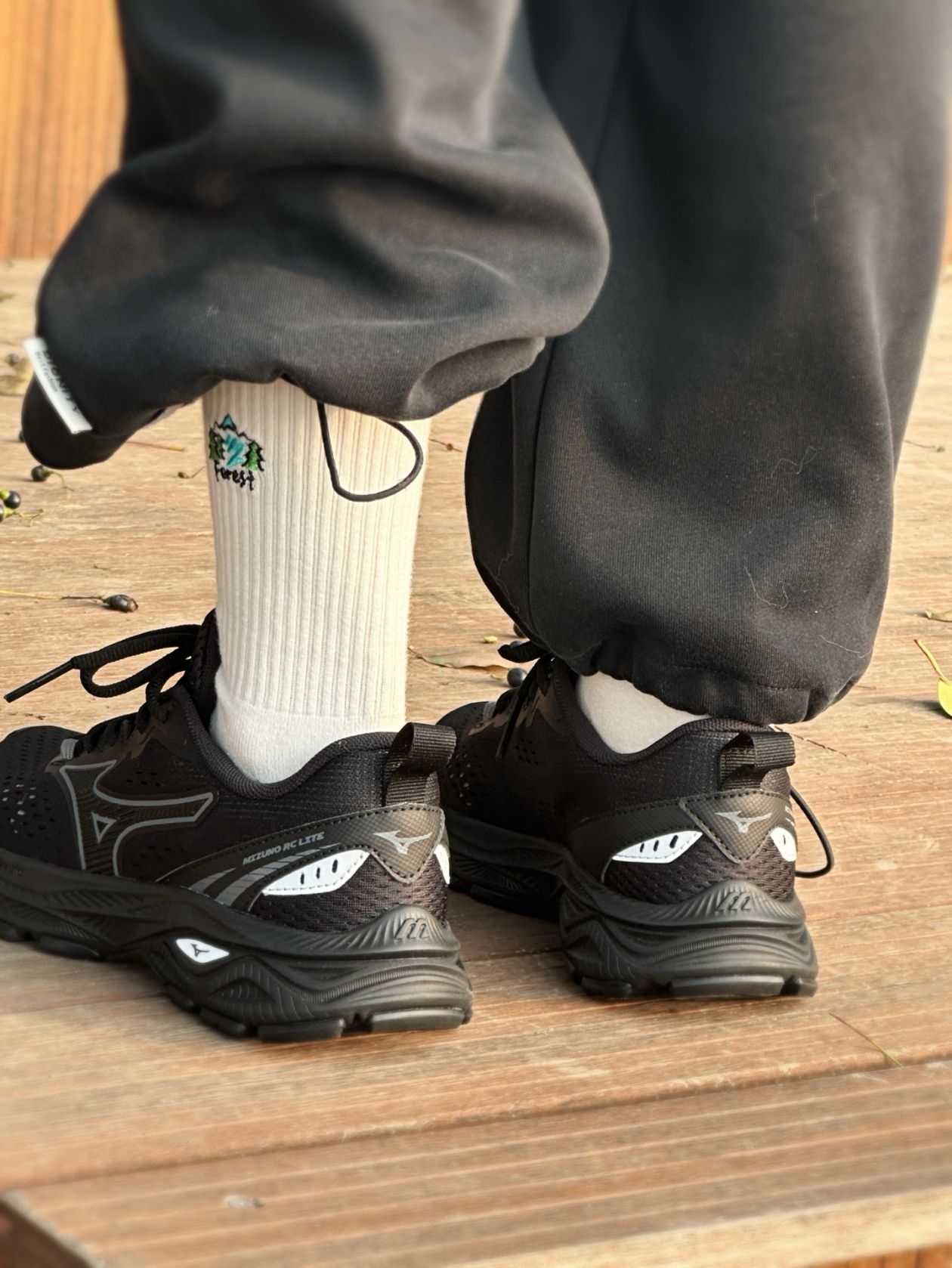 谁知道有一双“上班能穿、下班能跑”的复古跑鞋 有多香? 直到遇到 这双Mizuno RC LITE系列休闲跑鞋 黑银 才懂什么叫“梦中情鞋”💫 黑色鞋身+银灰线条 高级感拉满~ 透气网面➕回弹中底 日常走路、跑步也像踩棉花☁️~ 鞋底防滑纹路,雨天、塑胶跑道都能稳稳hold住~