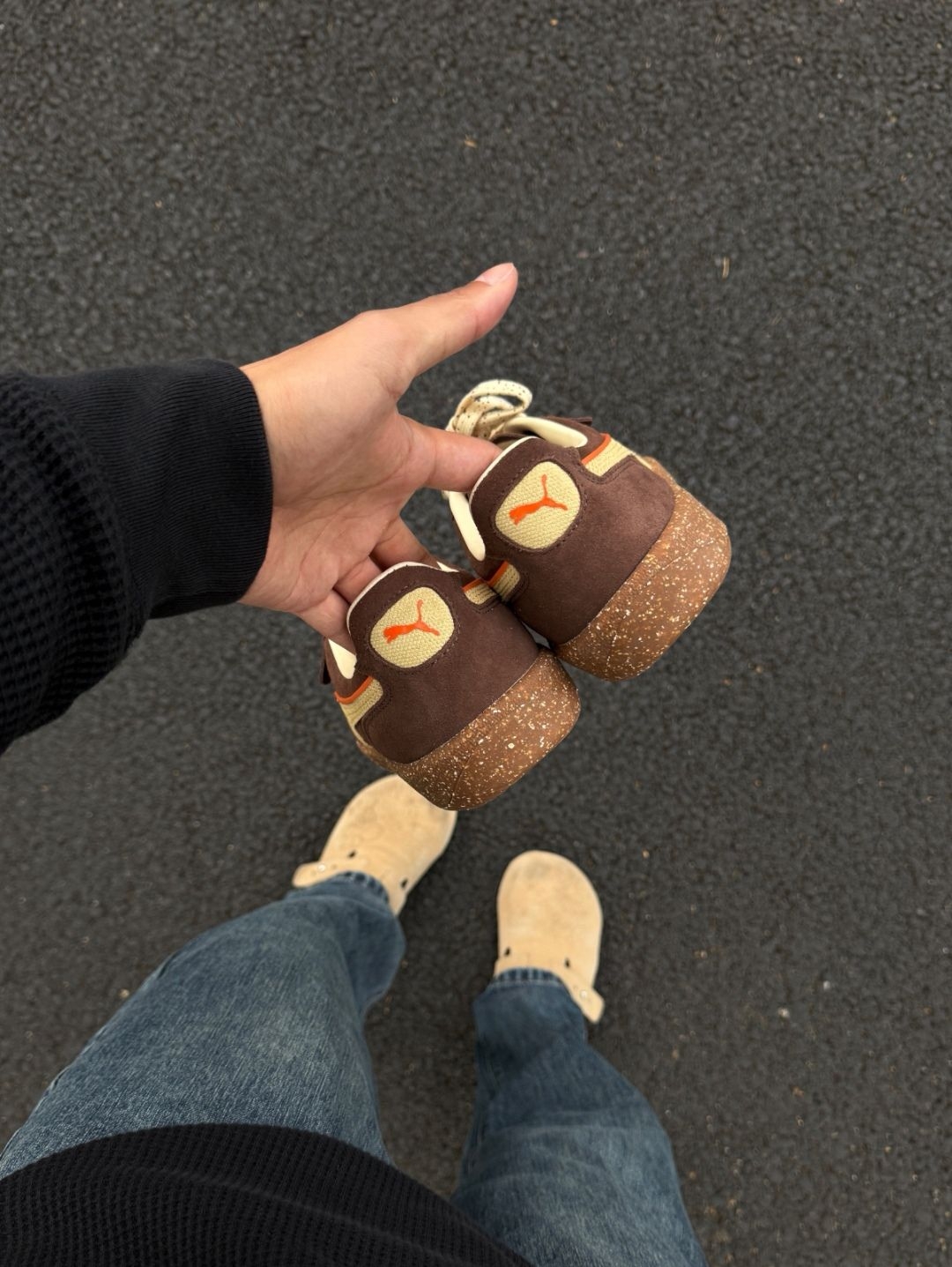这双彪马鞋,到手后整体感觉还不错~鞋面是麂皮材质,摸起来挺柔软的,不过也因为是麂皮,不太好打理,稍微沾点灰或者水痕,看着就明显,得小心保养。[赞_blue] 上脚试了试,脚感还算舒适,走路的时候,鞋底有一定的缓冲,不会觉得硬邦邦的。[敬礼_blue]搭配方面,我搭了牛仔裤,还挺和谐的,复古感有了。