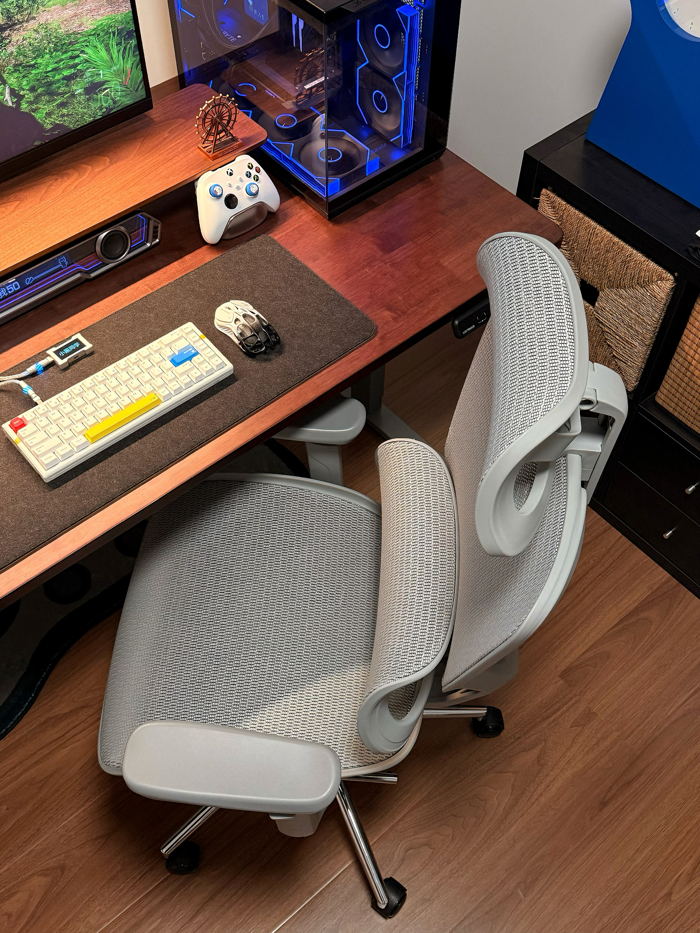 我选的这把小配列键盘,和胡桃木书桌搭起来挺和谐的🤍。 打游戏时触发很灵敏,反应快,日常打字也顺手。就是没有手托,长时间用手腕有点酸,得自己单独配一个。 平时宅家办公、玩游戏都能用上,还能给桌面省点空间。