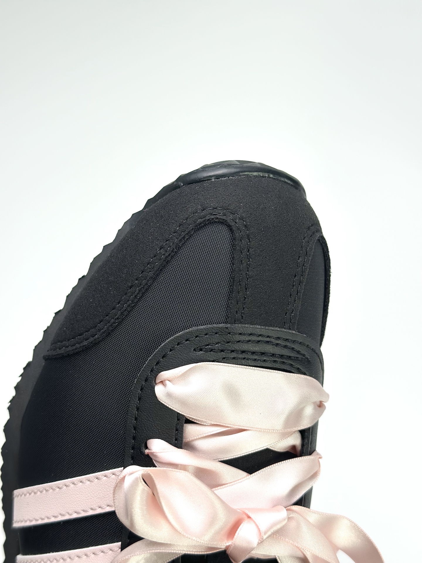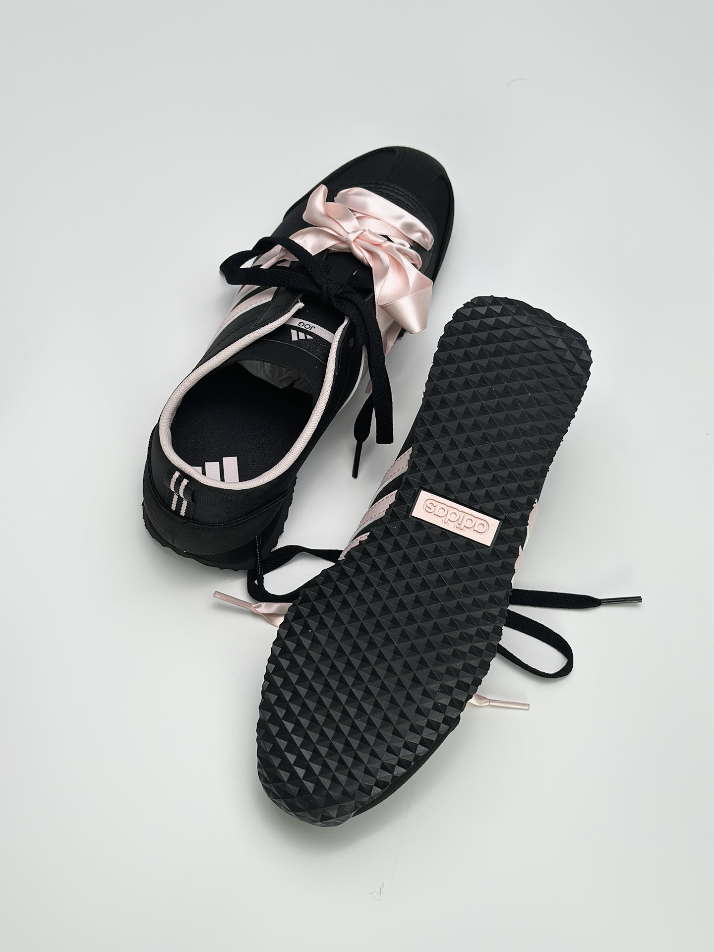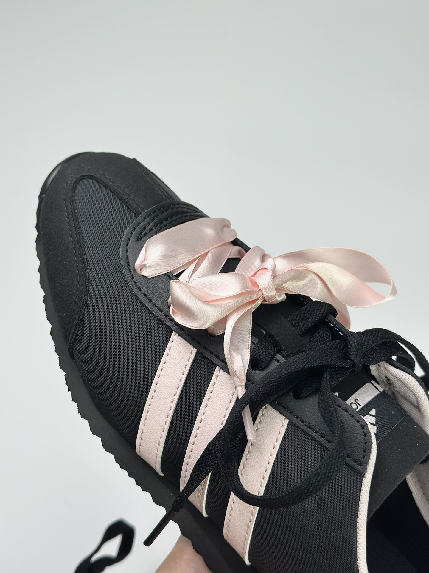 最近阿迪刚上市的这款Jog 2.0经典T头冰淇淋, 造型延续adidas复古德训鞋的T头轮廓 黑底+樱花粉三条纹,搭配鞋头的缎面蝴蝶结设计,平衡了酷感与少女感,鞋舌、后跟的品牌标识,以及鞋底的adidas压印logo,鞋口包边做了粉色点缀,整体配色统一和谐。 目前价格还算合理,部分断货的码数估计近期有小幅增长。尺码建议正码或者大半码拍、