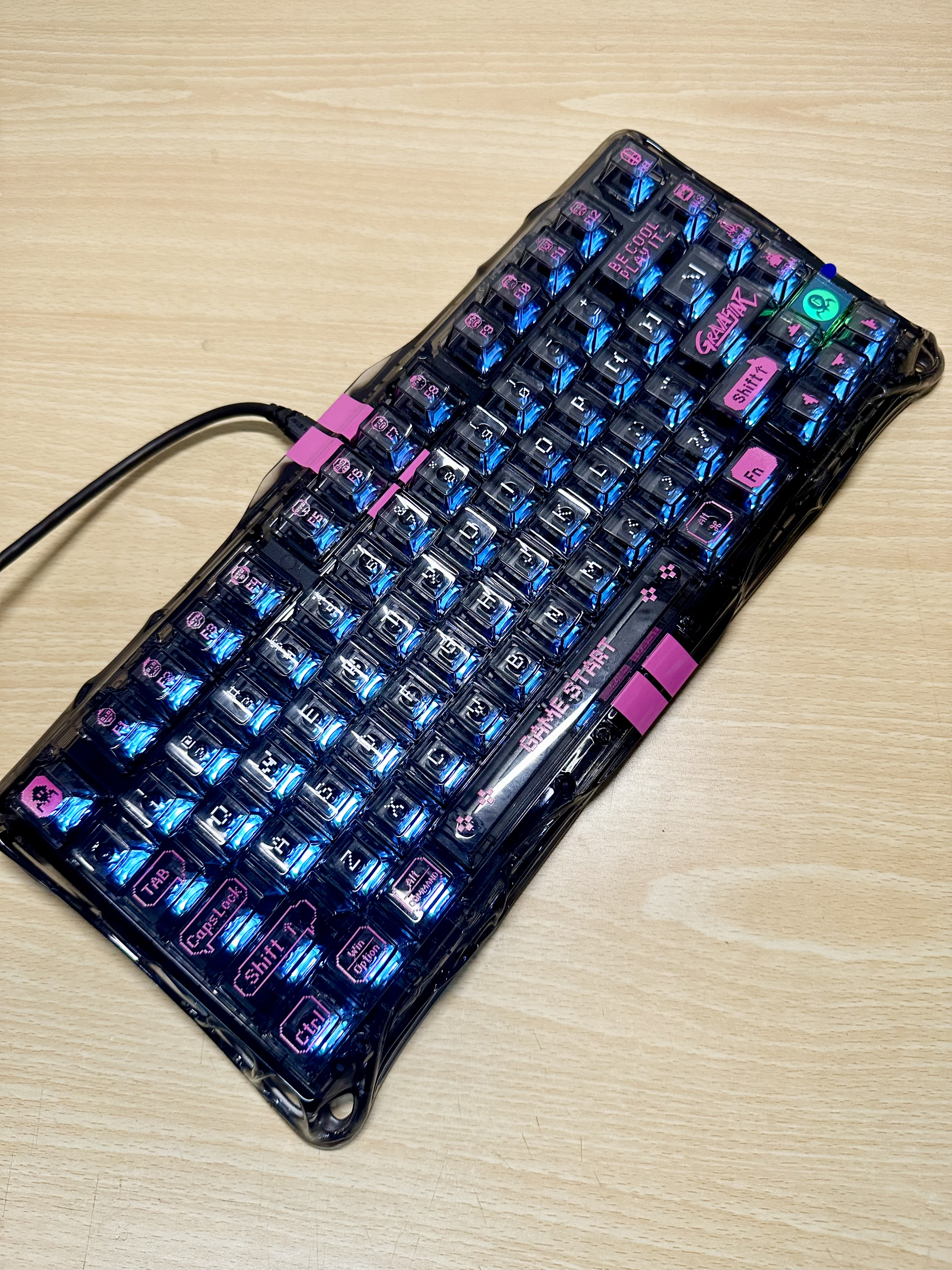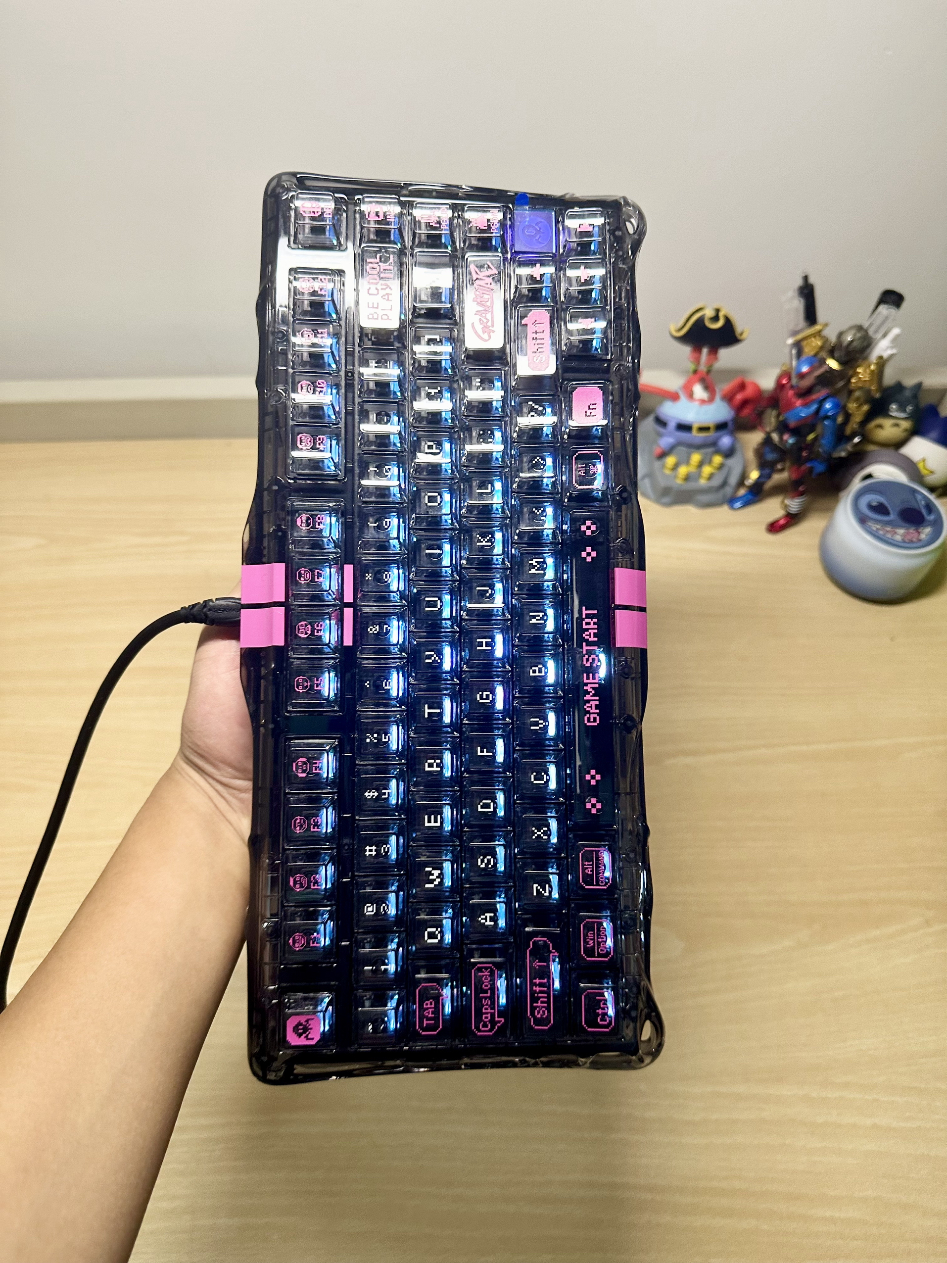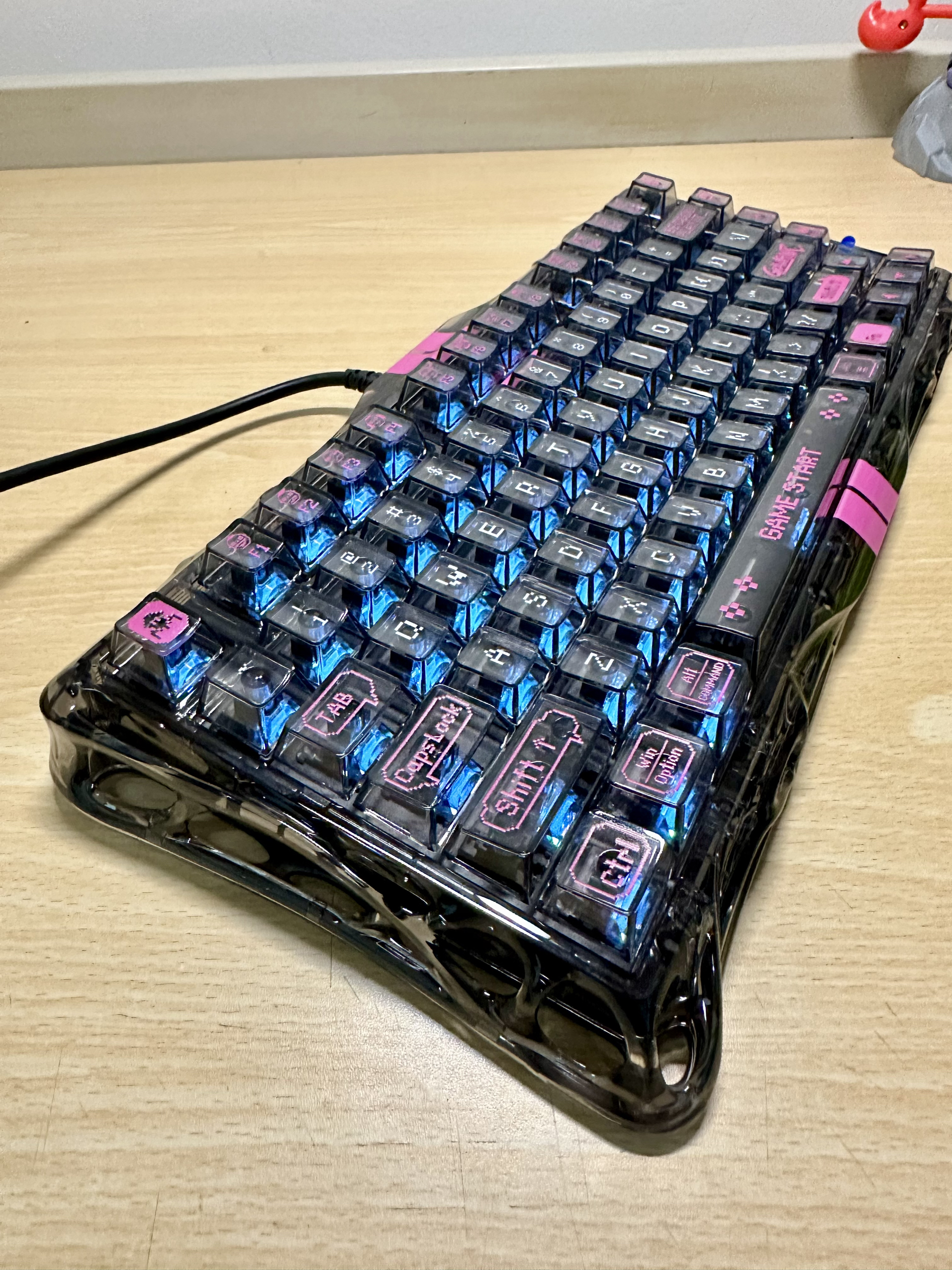 重力星球 瓦75LITE夜行者,79键的 黑莓粉配色真的斩男斩女,有点喜欢 我选的是有线连接,打瓦打FPS,没有延迟 磁轴轴体,可以根据自己的喜欢调节灯光, 敲击感是那种石子音
