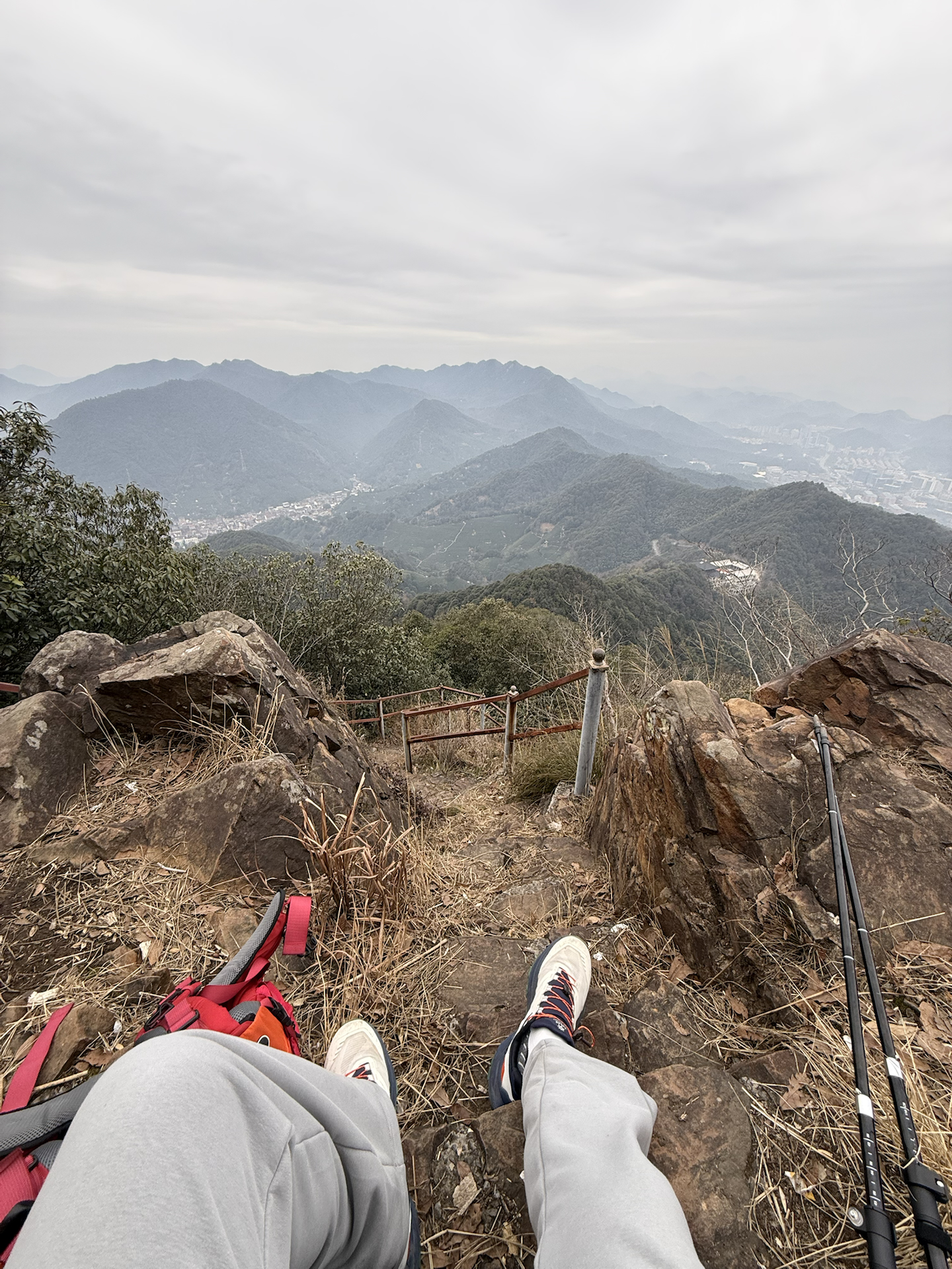 疯浙线都是台阶❗️太绝了hhhh 走了23公里!实在是走不动了 真的累了 果断下撤哦 好在山里的风景很美 带了自热锅米饭在山上吃 下次来杭州一定试试其他路线呐