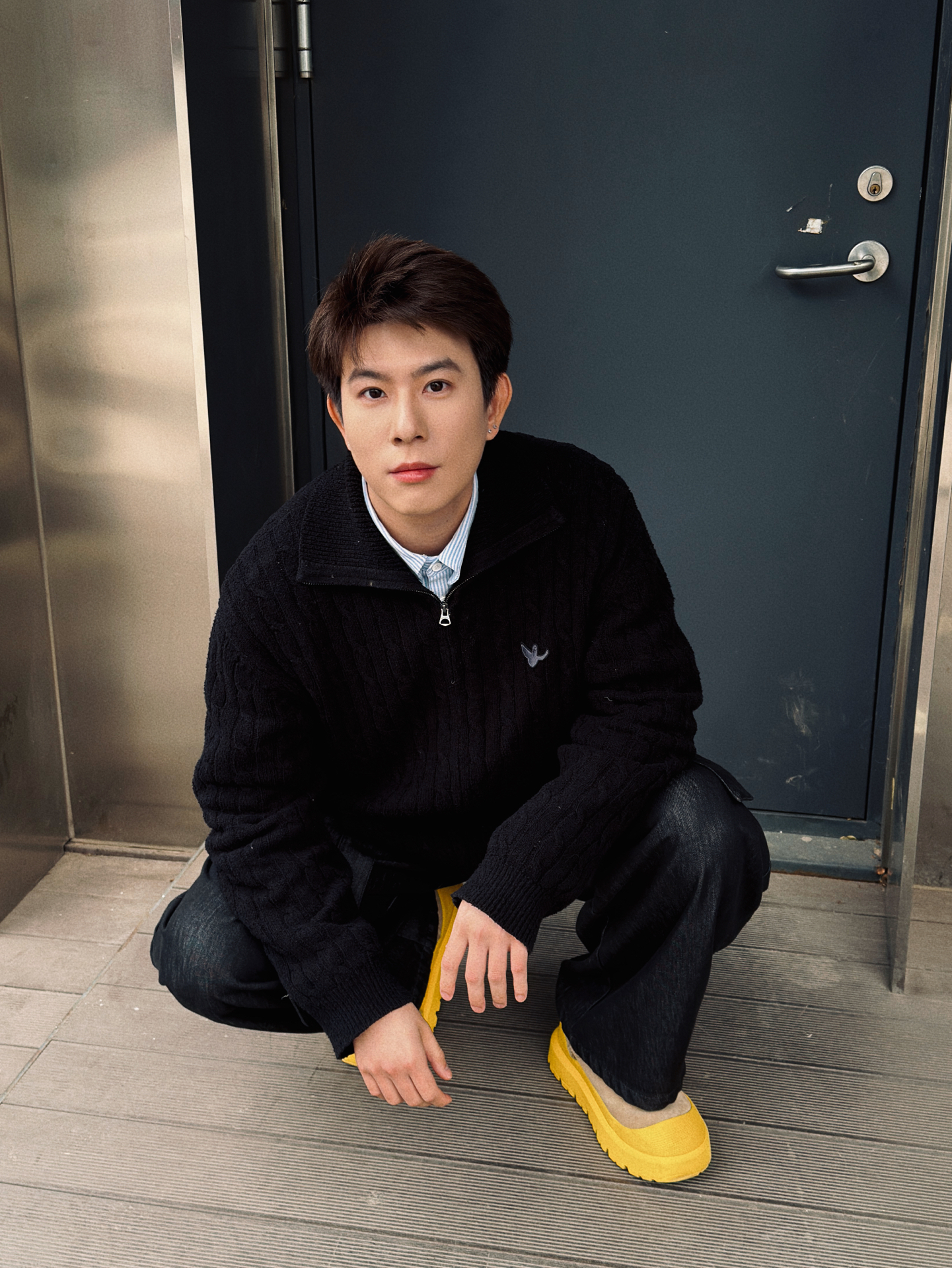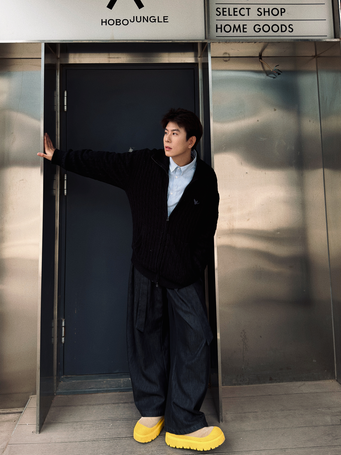 真的太爱这种不费力的松弛感了✨ 质感黑开衫+浅蓝衬衫的基础叠穿,干净又显少年感 下半身直接锁死膨胀潮牌这条阔腿裤 垂坠感直接拉满,把腿型修饰得又直又长 再踩一双亮黄色厚底鞋,瞬间提亮整套造型 日常通勤、出门逛街穿都完全不挑场合 男生春天这么穿,干净又显气质,谁穿谁是顶男