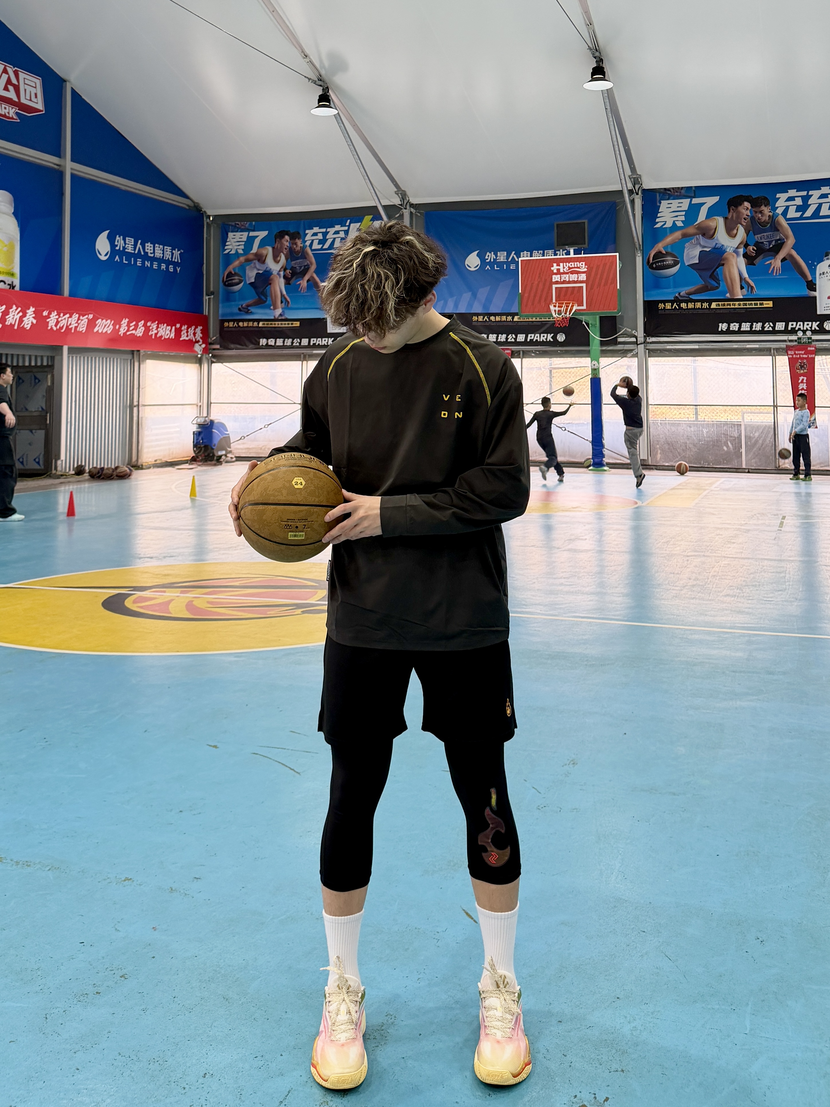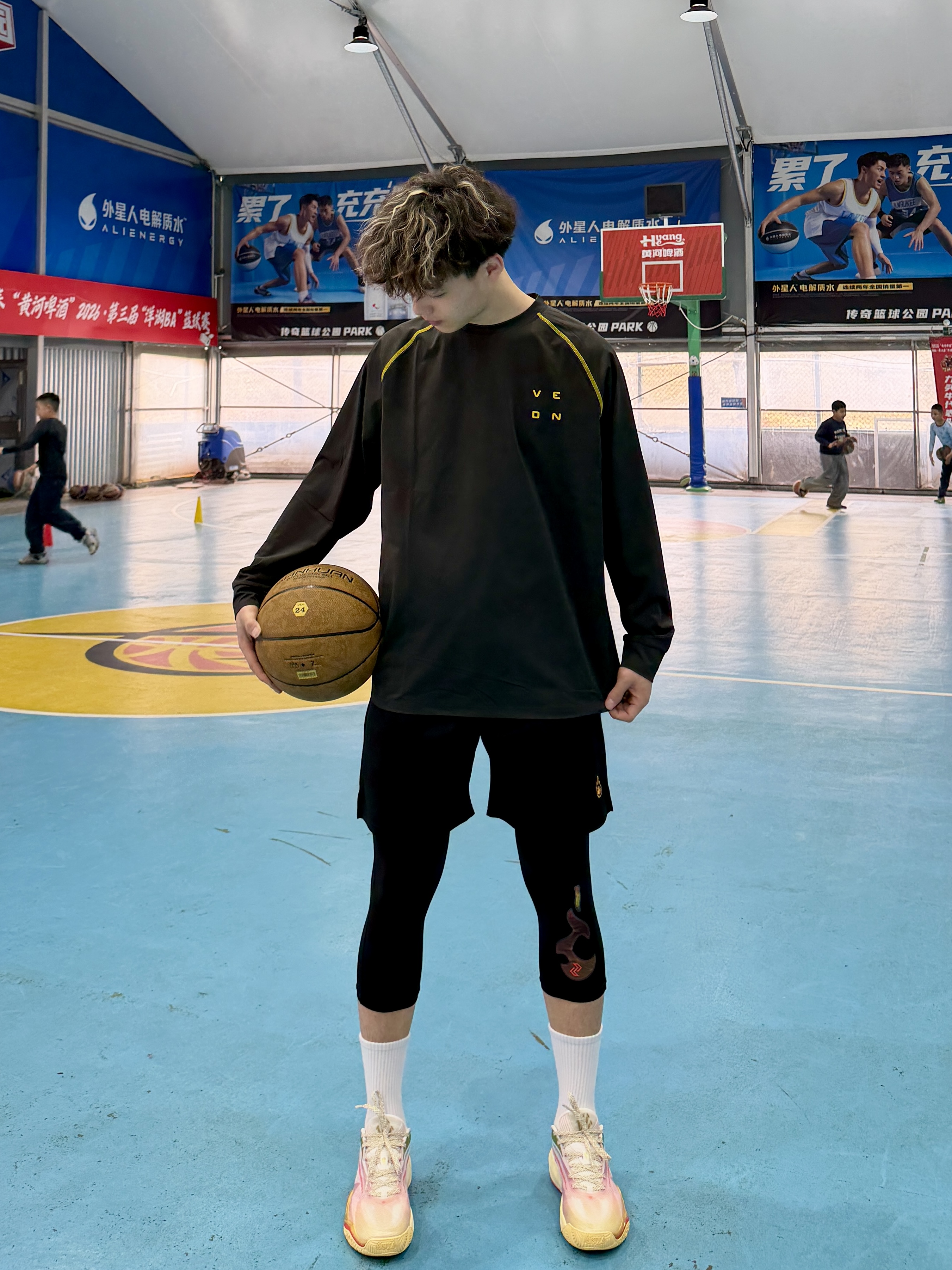 打球穿搭不用纠结的穿搭给大家来穿搭分享一波深灰机能长袖+亮眼战靴球场氛围感直接拉满自带气场运动与帅气同时在线今日份球场就这样穿kai3首发配色很吸睛上脚也非常的帅气