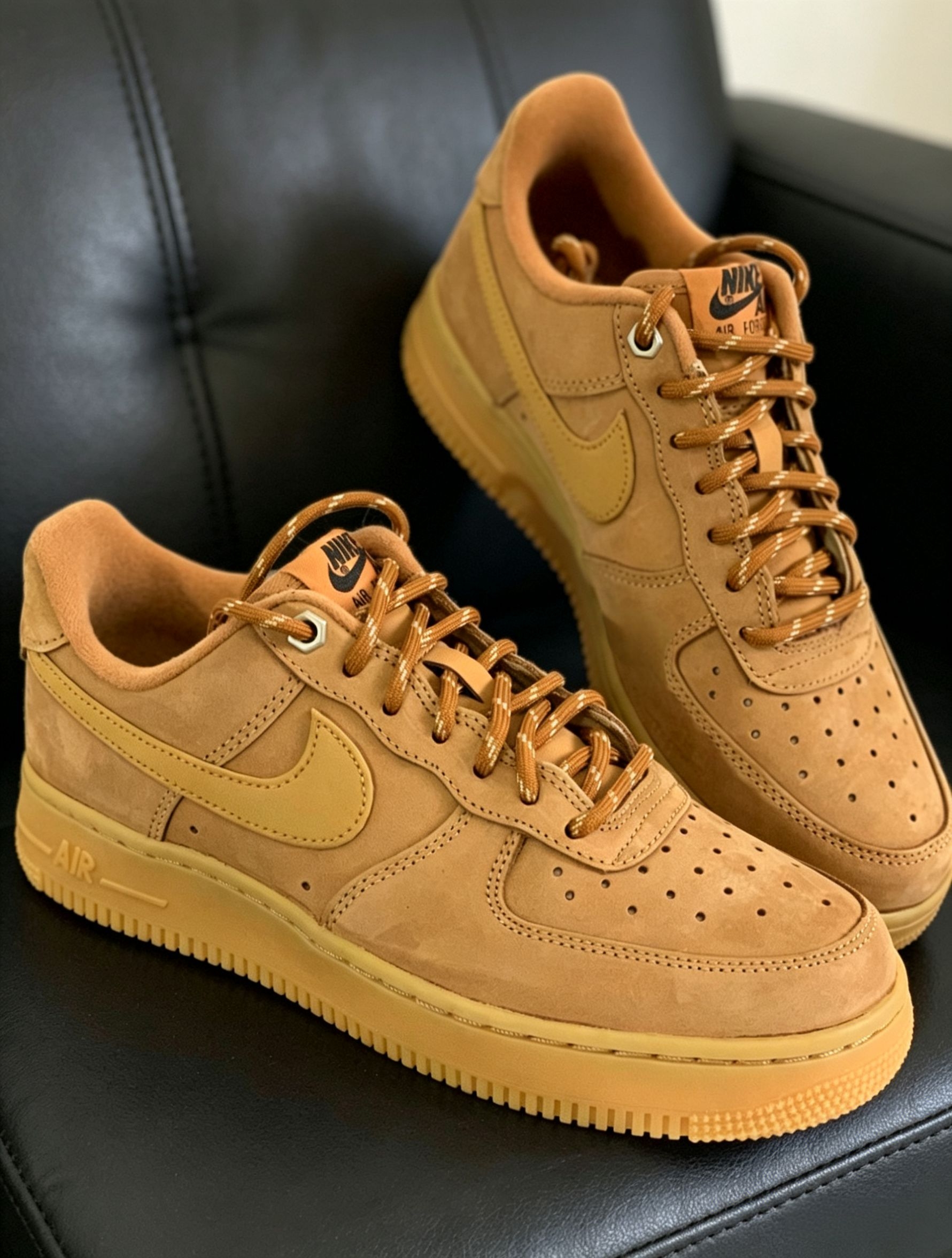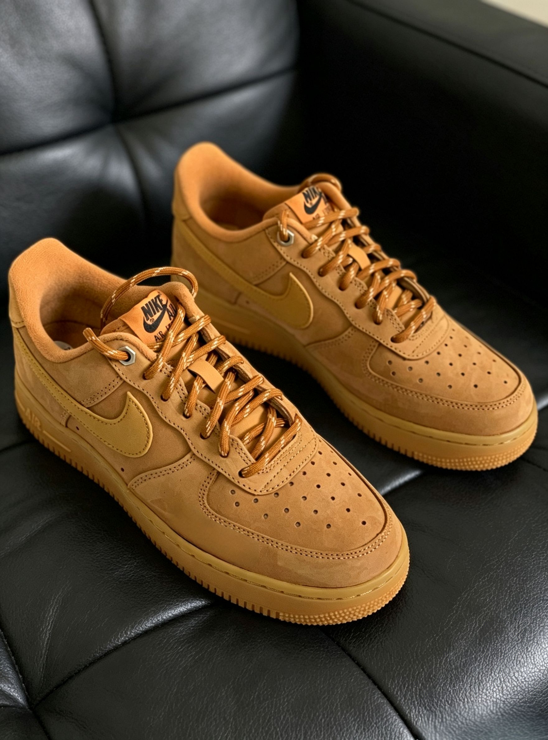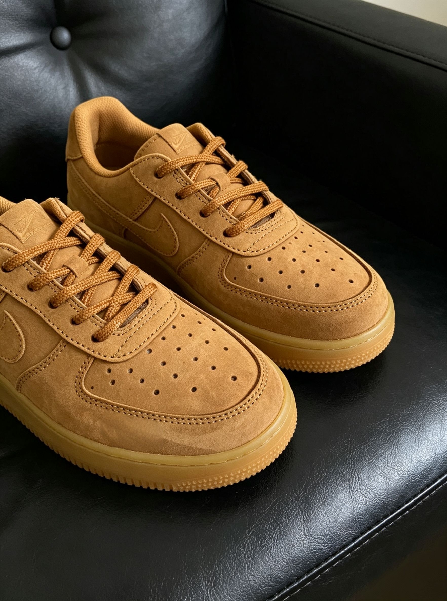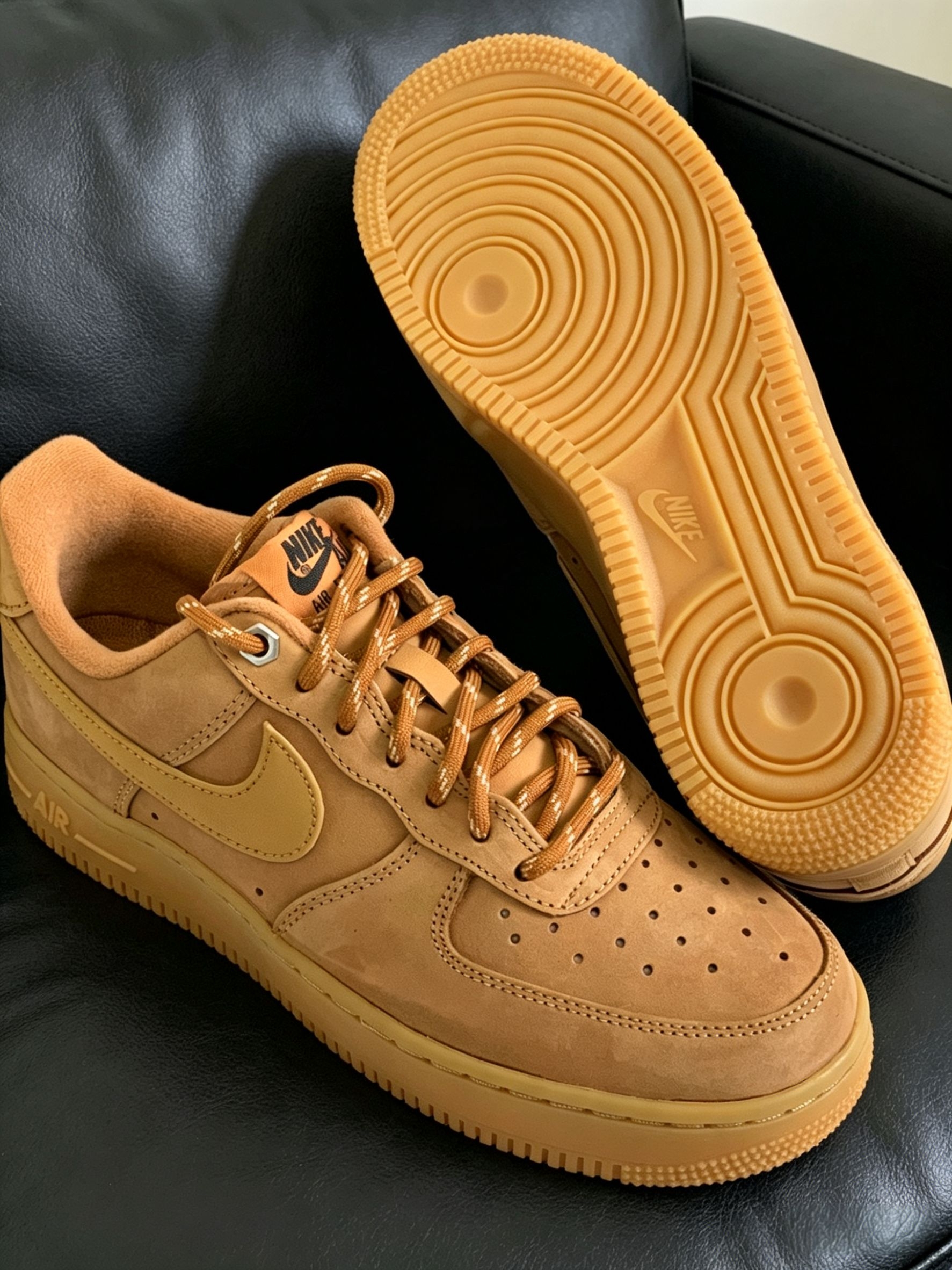 小麦色真的是空军一号里最耐看的配色,复古感拉满。麂皮材质越穿越有味道,质感绝了,上脚巨显高级。随便搭条牛仔裤、工装裤都好看,不挑穿搭不挑人。日常出门、通勤上学都能穿,舒服又百搭,鞋柜里的常青款。