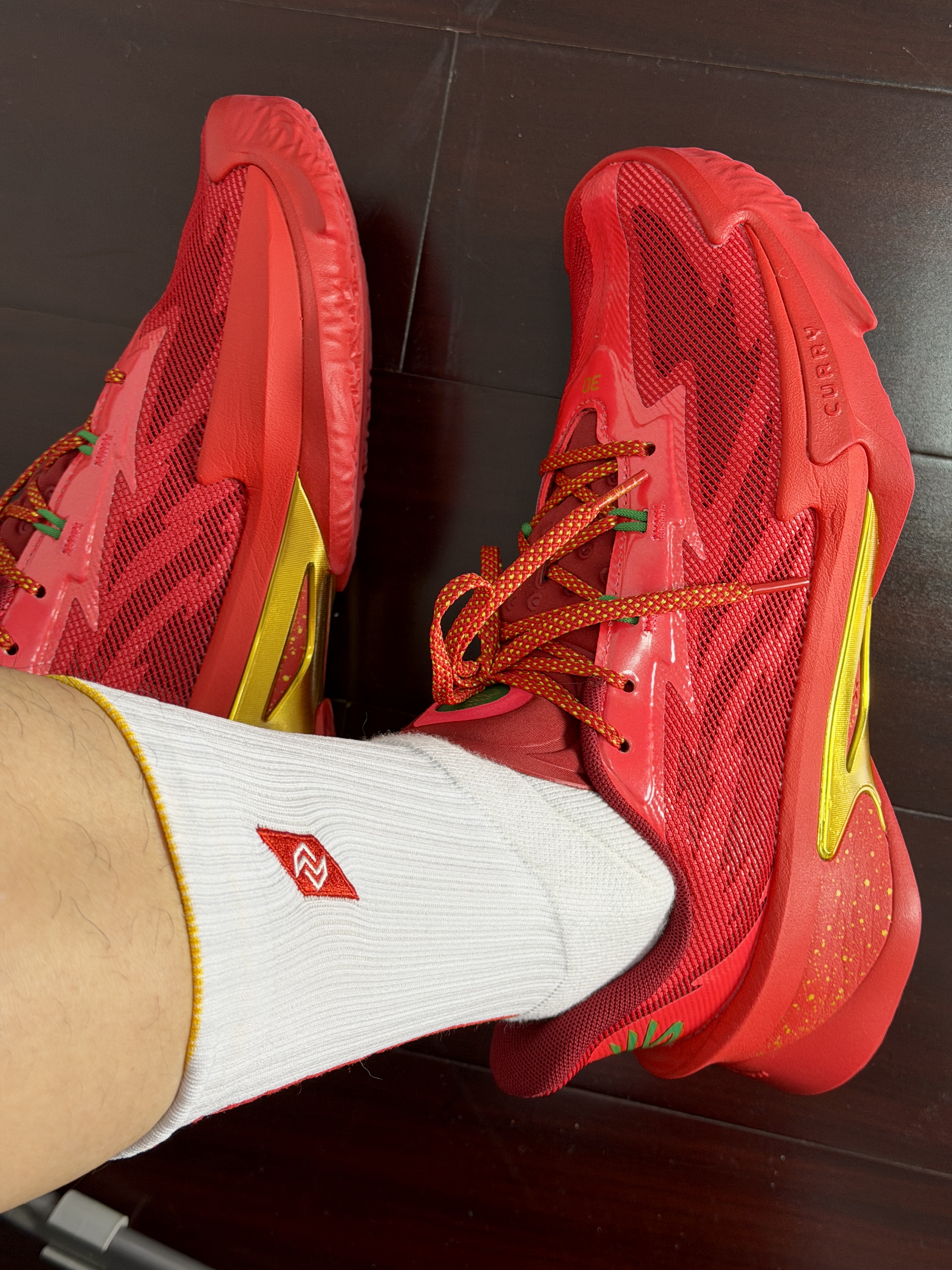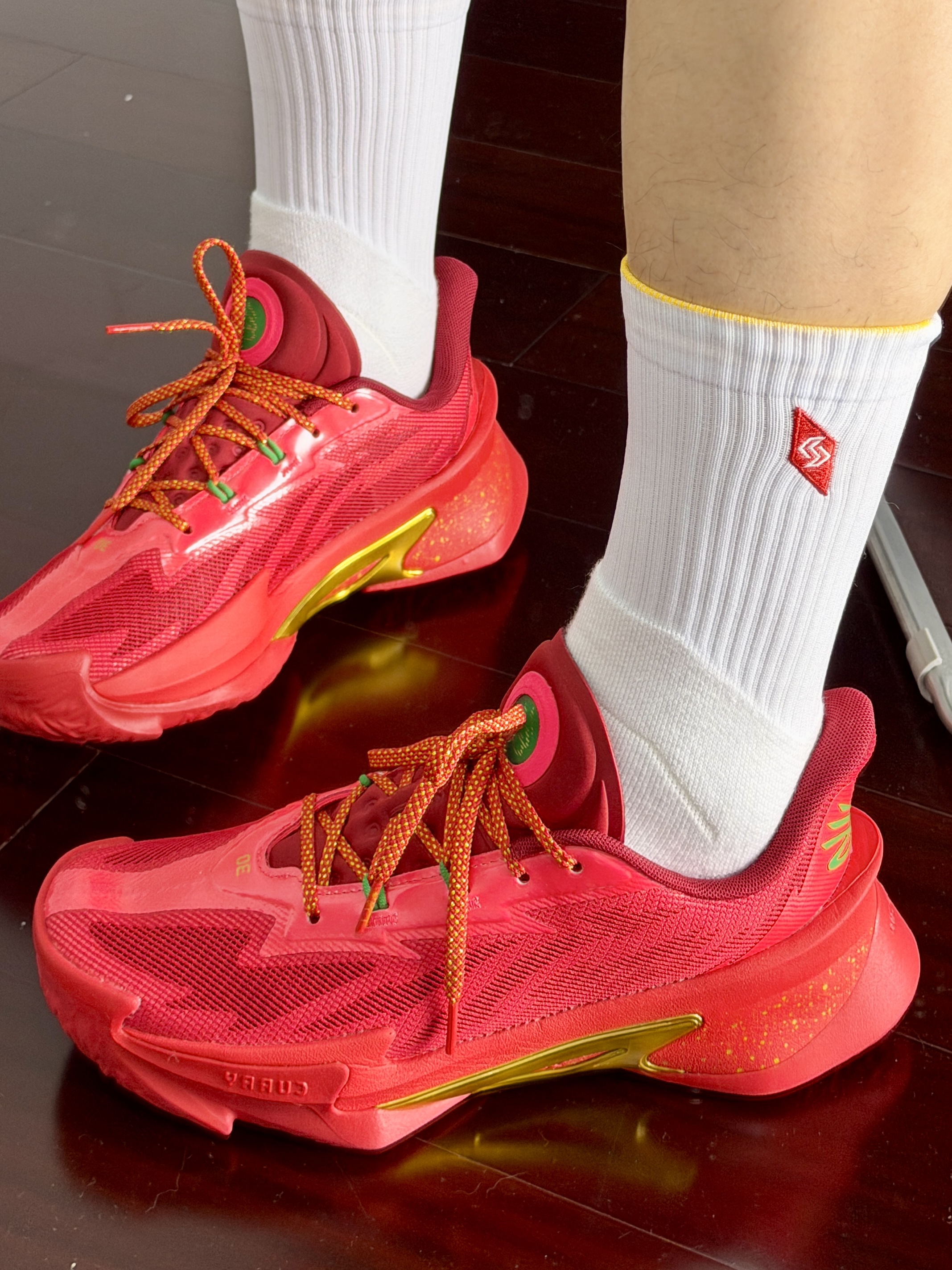 篮球人日常打球穿搭白T也是库里元素红白球裤+白袜 直接帅一脸一双亮眼的红鞋库里s7比正代上脚还要好直接让普通穿搭秒变球场主角