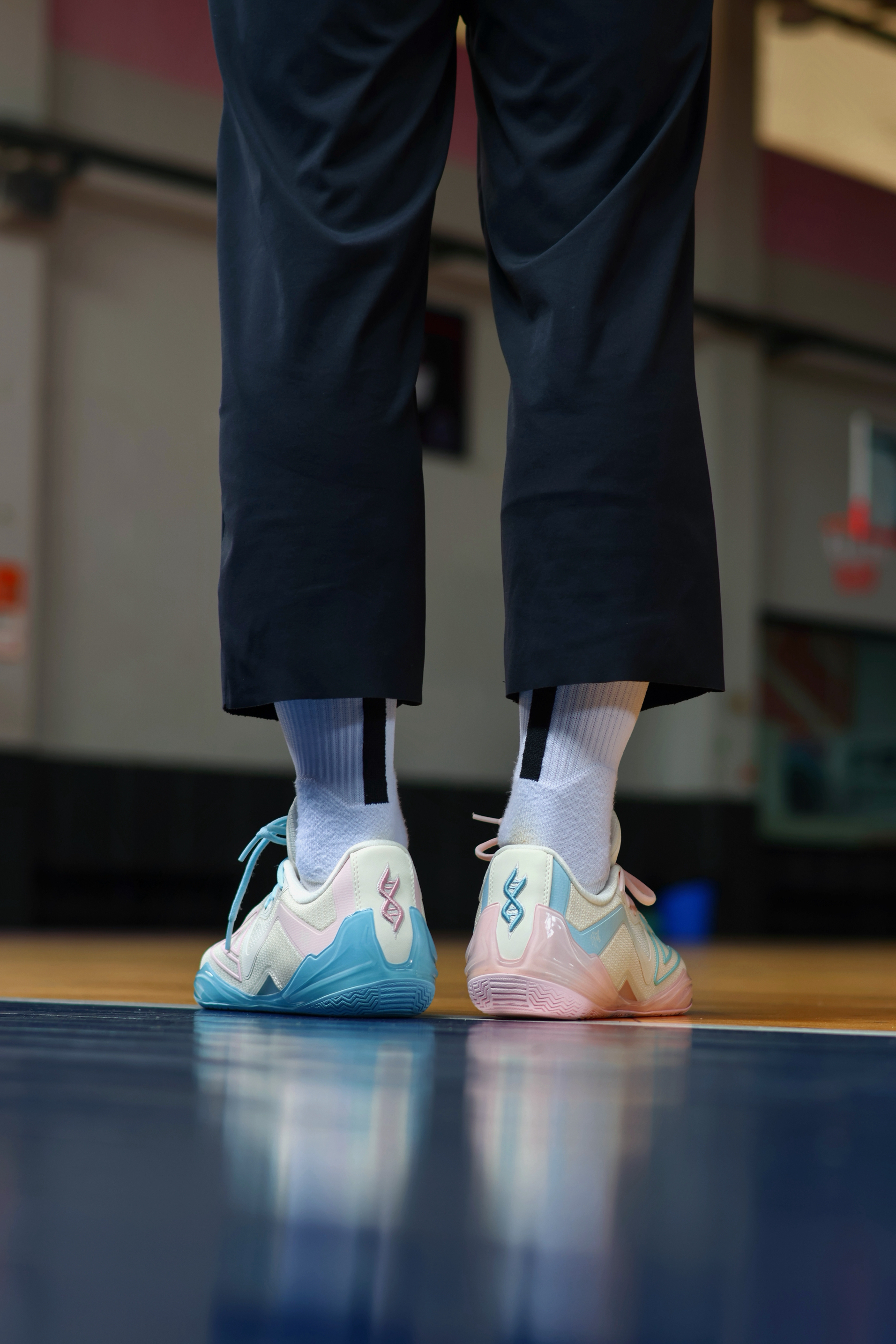 夏日球场简约穿搭公式简约白T+藏青运动短裤Q +高帮白袜再配上这双樱花粉篮球鞋干净又有少年感夏日穿搭这不就来了吗