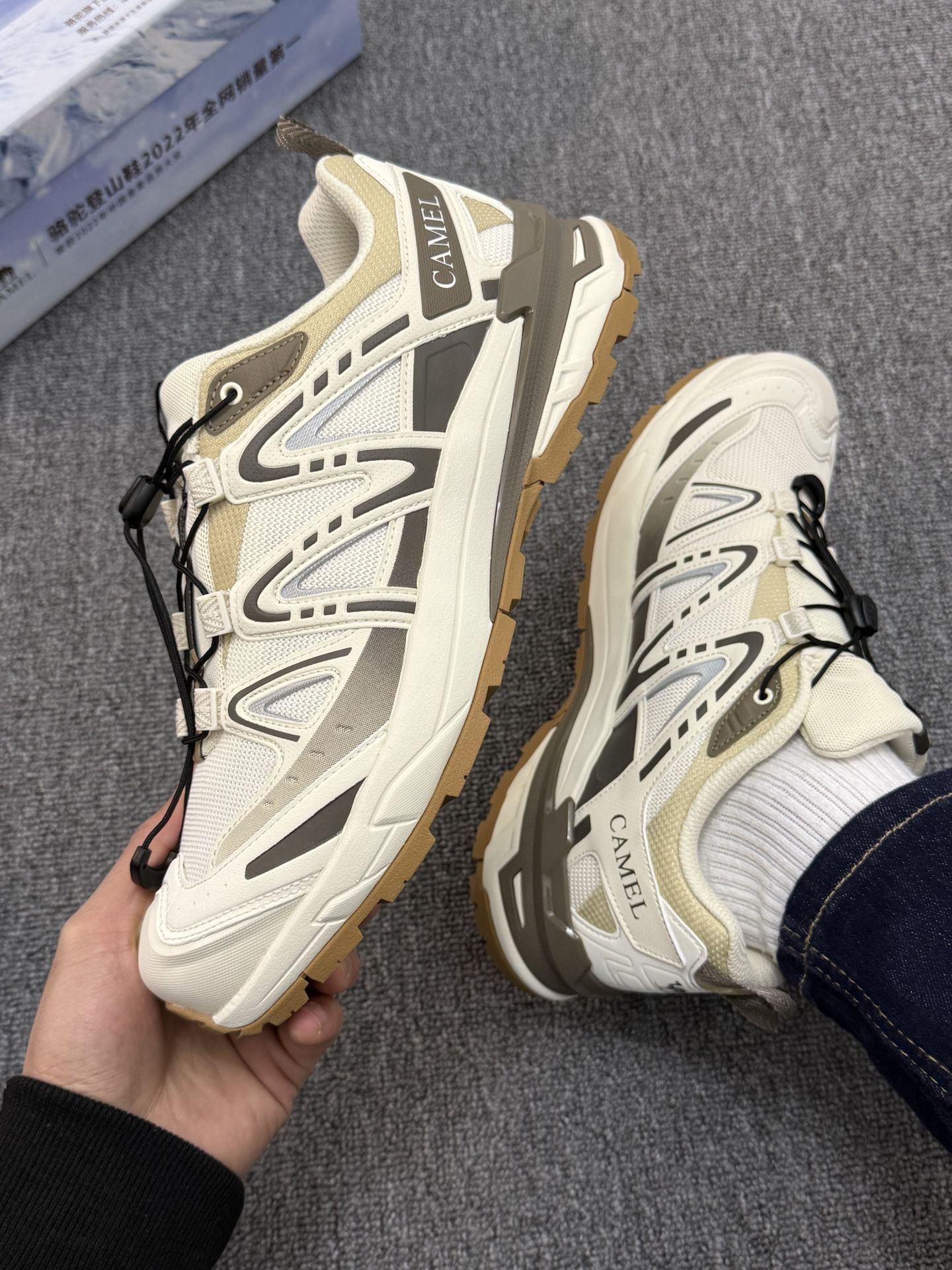 谁懂啊!骆驼户外登山鞋直接焊在脚上! 实物比图片高级太多,米白底色拼接卡其灰,山系氛围感直接拉满,2026年穿它绝对不撞款! 最惊喜的是脚感,透气网面春夏季穿完全不闷脚;鞋底软弹有支撑,防滑耐磨,通勤逛街暴走2万步脚都不疼,还能悄悄修饰腿型。 不管是搭牛仔裤、工装裤还是运动裤都适配,男女同款,情侣穿同框超吸睛,学生党、打工人闭眼冲都不亏!