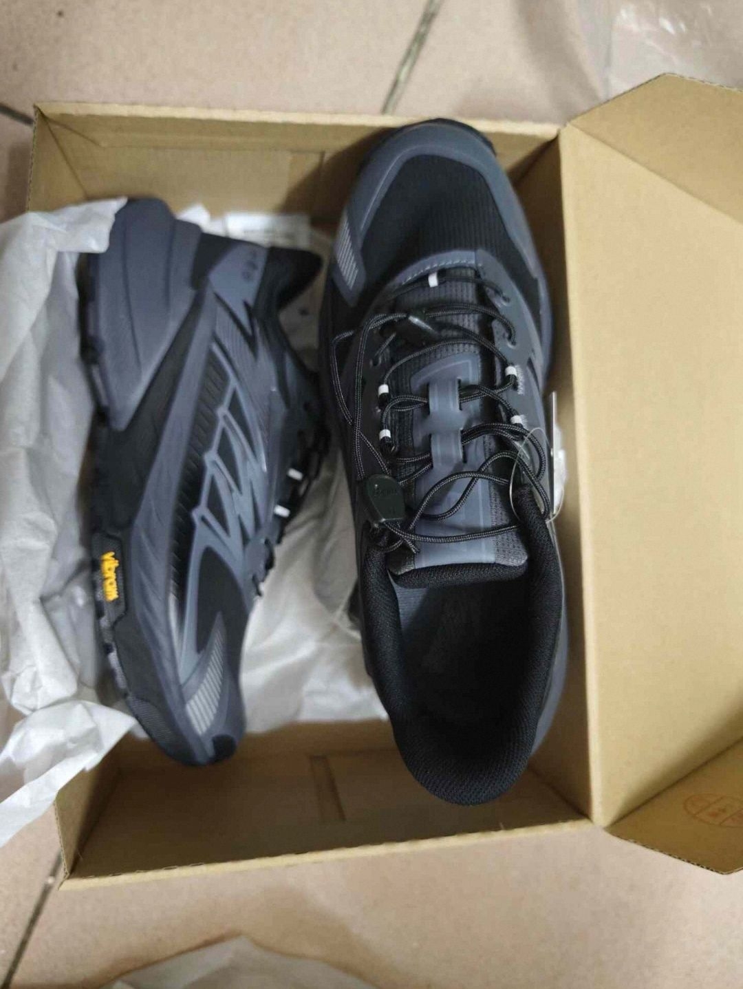 宝子们,今天找到了一双百搭的“黑武士”户外徒步鞋! 鞋子用料 鞋面采用了防泼水面料,鞋带用的是抽拉式鞋绳,中底用了安踏的虫洞科技材料!外大底采用了耐磨防滑的 VIBRAM 橡胶大底! 穿着体验 首先鞋子非常好穿脱,基本一脚蹬,因为鞋绳采用了抽拉式,还带了倒扣,所以鞋带的牵拉感很强,能很好的包裹紧脚! 穿着行走的感觉很舒适,并没有因为厚实的橡胶大底影响脚感,鞋子码子也很正,没有卡脚背和顶脚趾的问...