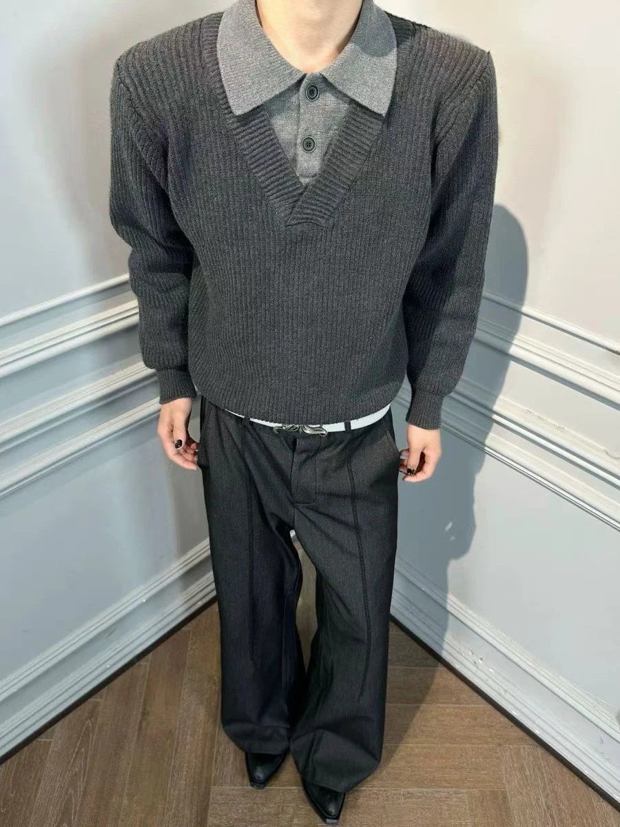 突出松弛感与少年气,适合分享日常穿搭瞬间。 1. 秋日氛围感拉满🍂。假两件叠穿是懂高级感的,深灰调自带清冷气质,随手一套就是慵懒松弛感。 2. 拒绝单调穿搭。内搭衬衫领+针织外搭,层次感拉满,温柔又不失利落,今天也是舒服的一天✨。