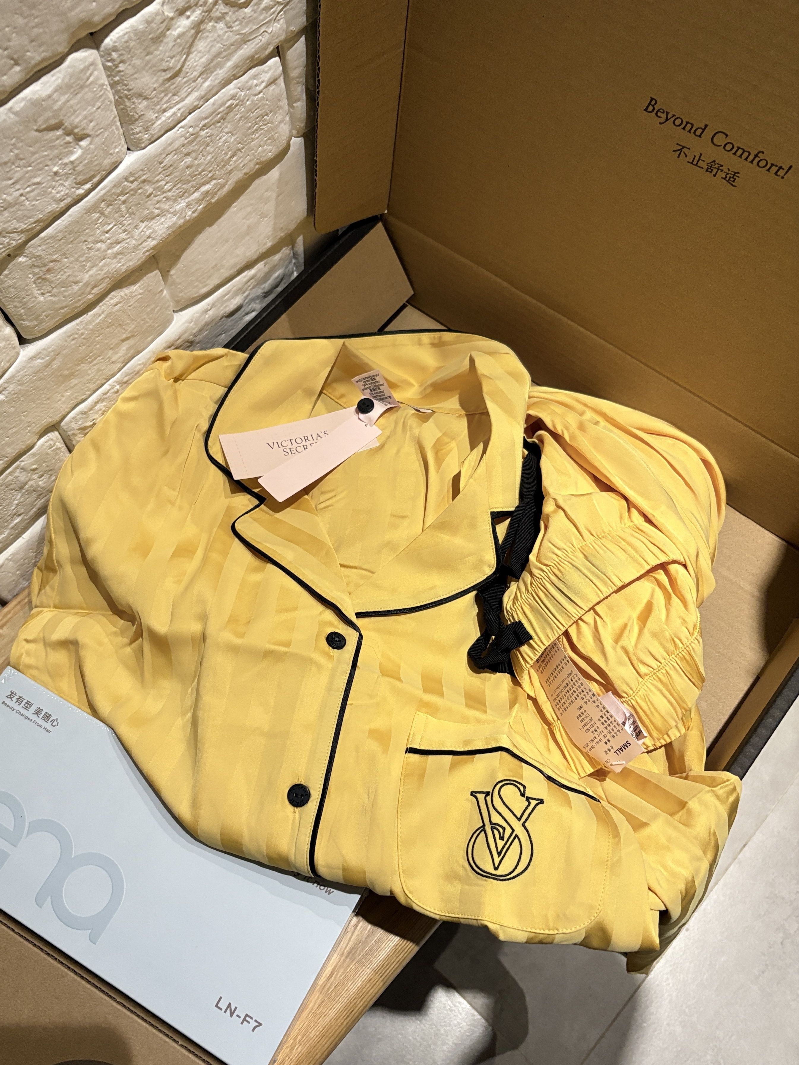 本篇笔记关联了【田曦薇同款】Victoria's Secret/维多利亚的秘密 Victoria's Secret Dream系列流光风心动之选甜蜜限定抗静电绸缎面水光绸月光绸长袖条纹提花丝滑凉感精致印花套装廓形版翻领可外穿睡衣 女装 11221503 落日黄/提花等商品,为用户提供真实的使用体验和购买参考。