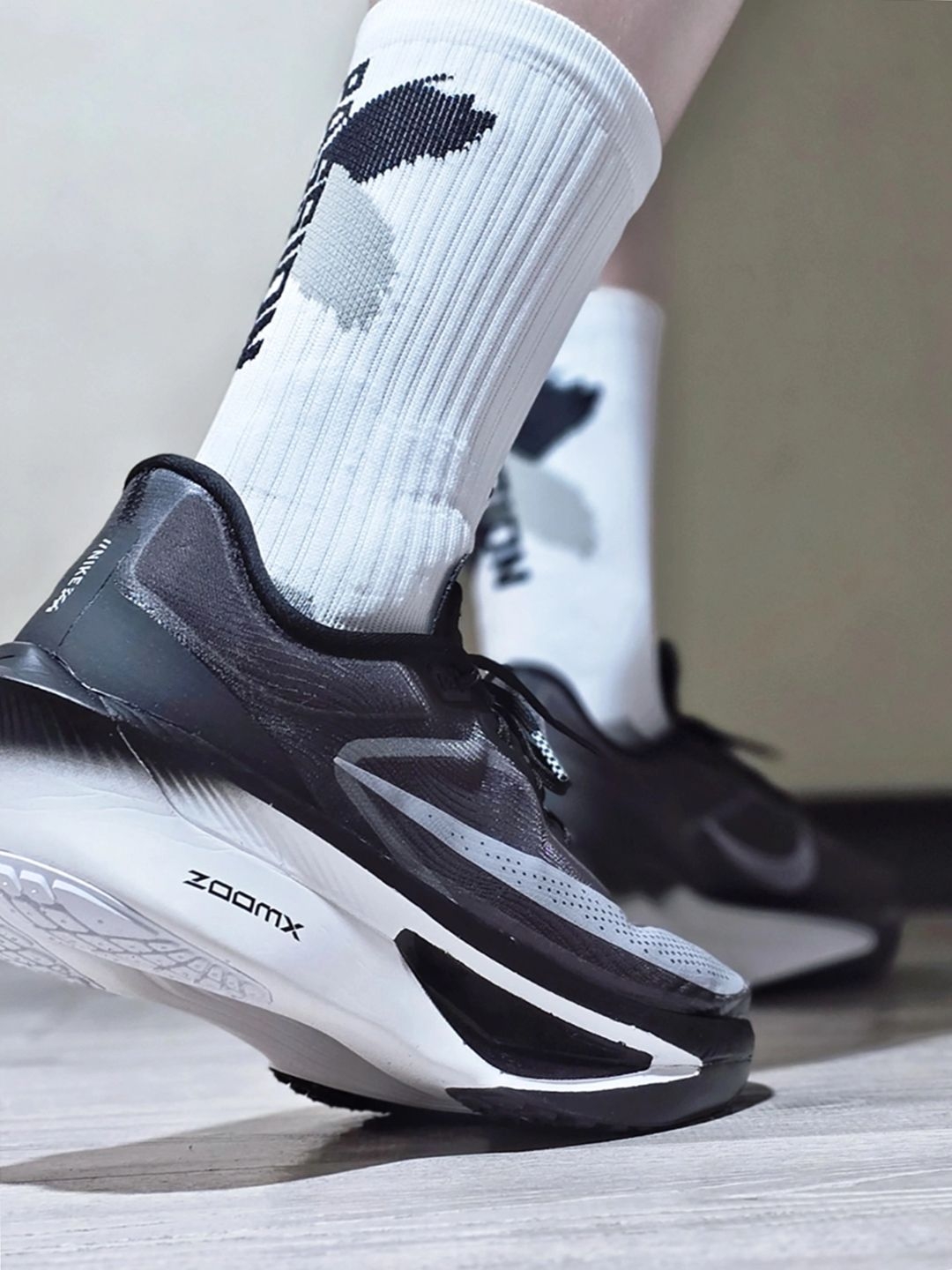 最近晨跑总爱这套搭配,真的太好穿啦😚!维动撒野系列高筒袜我选的粉橘配色,跟腱处的图案上脚超吸睛,脚感柔软,夏天跑完全不闷脚,防滑也在线~Nike Zoom Fly6是黑灰低帮款,跑起来支撑感很足,回弹也舒服。 小Tips:维动袜子我37码穿M刚好,不勒;Nike鞋正常脚型选正码就行,宽脚建议大半码哦!袜子手洗更耐穿,鞋子白边脏了用橡皮擦🧼擦超方便~