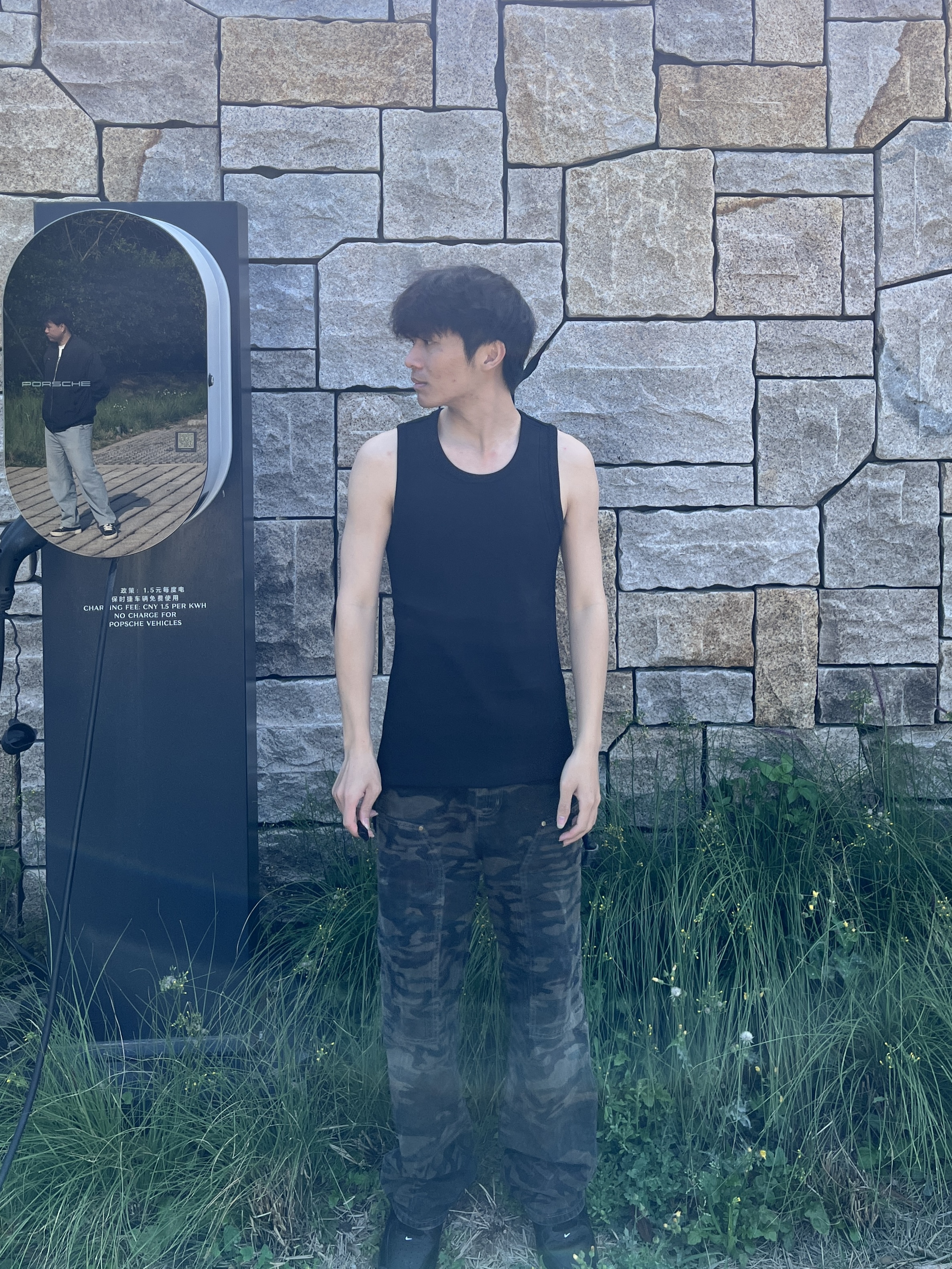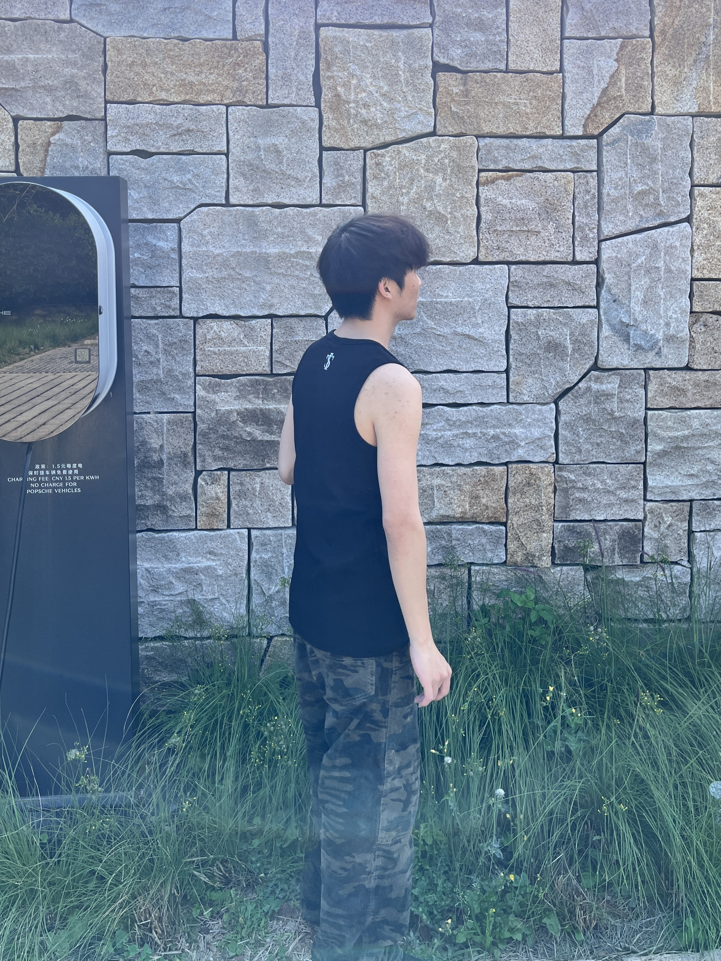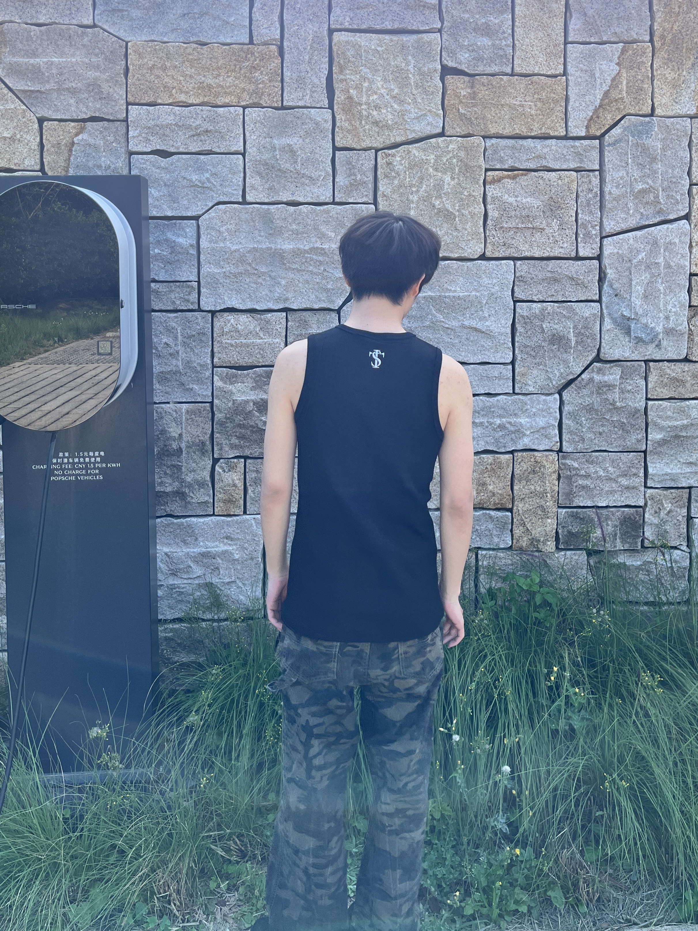 这个是我第一次穿背心 不得不说还挺不错的 这个背心是很显瘦的 简约又时尚背后的标志帅 穿着很凉快标志还是刺绣🪡的 被种草了!!!