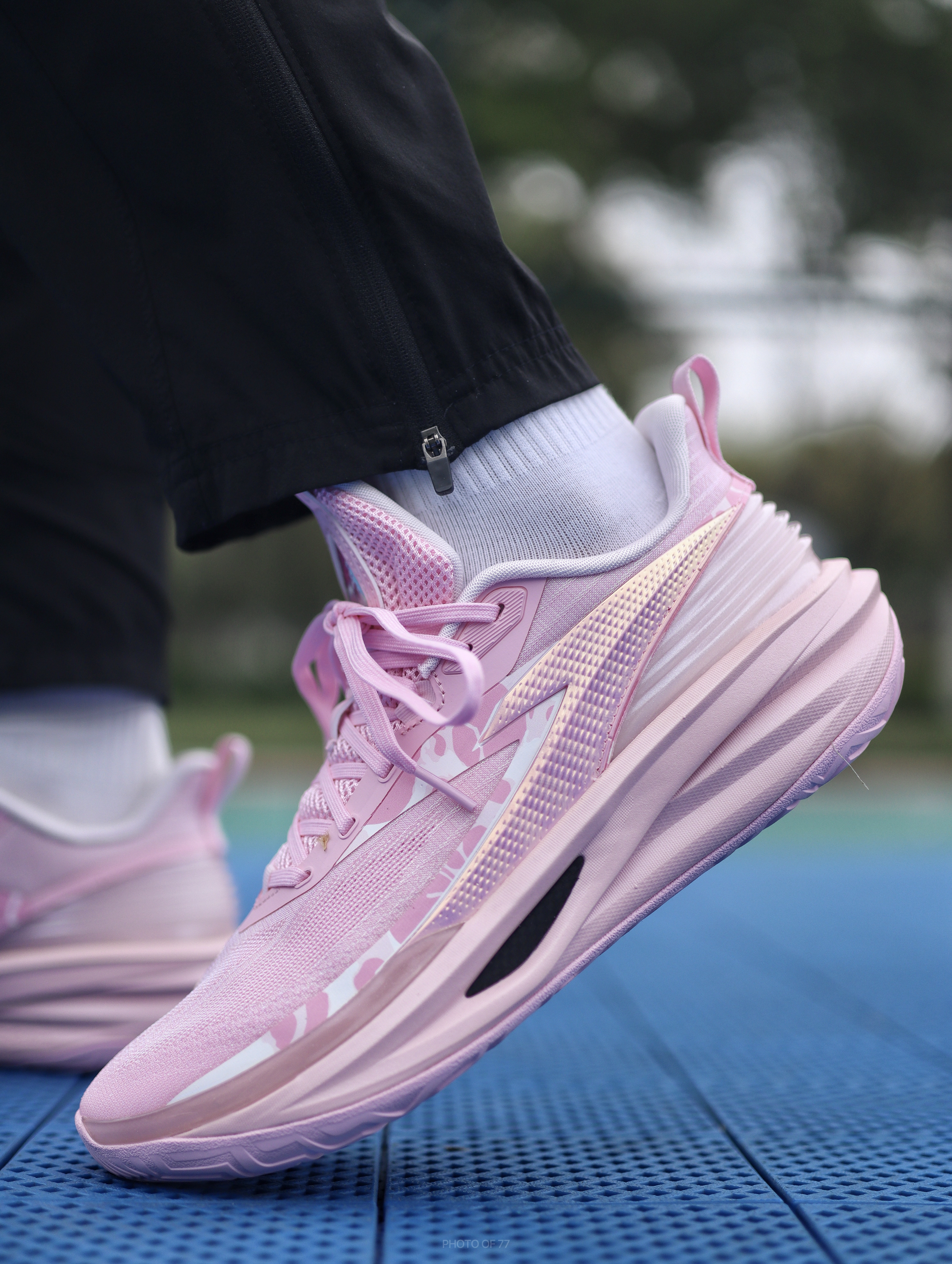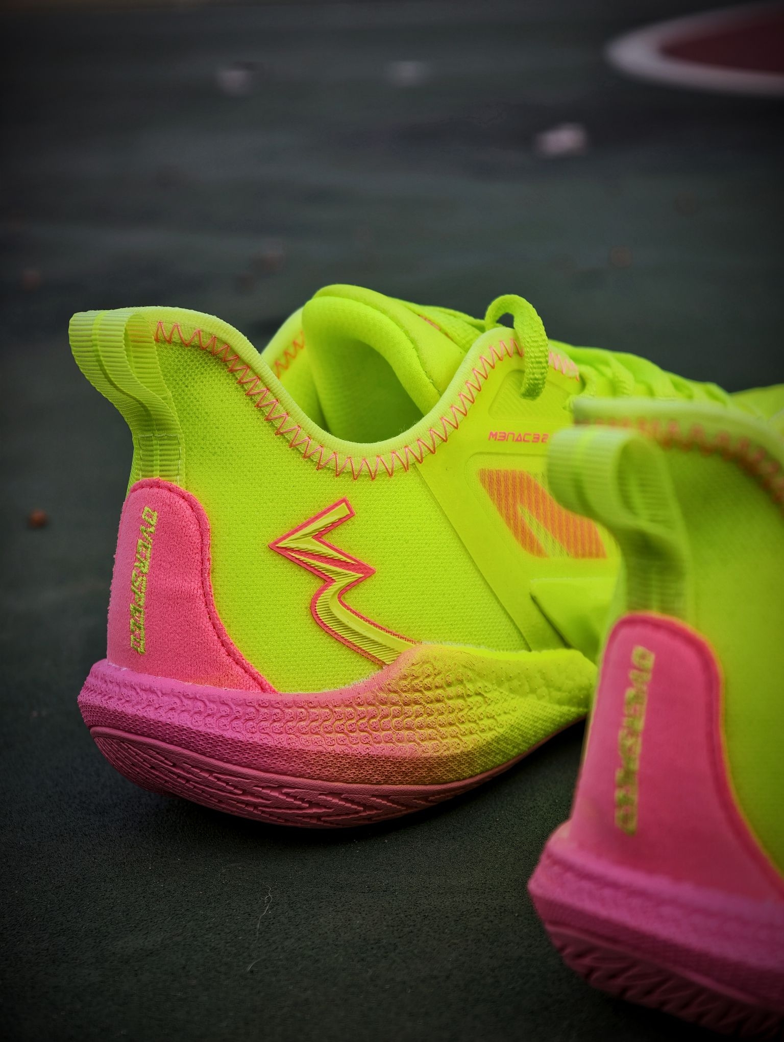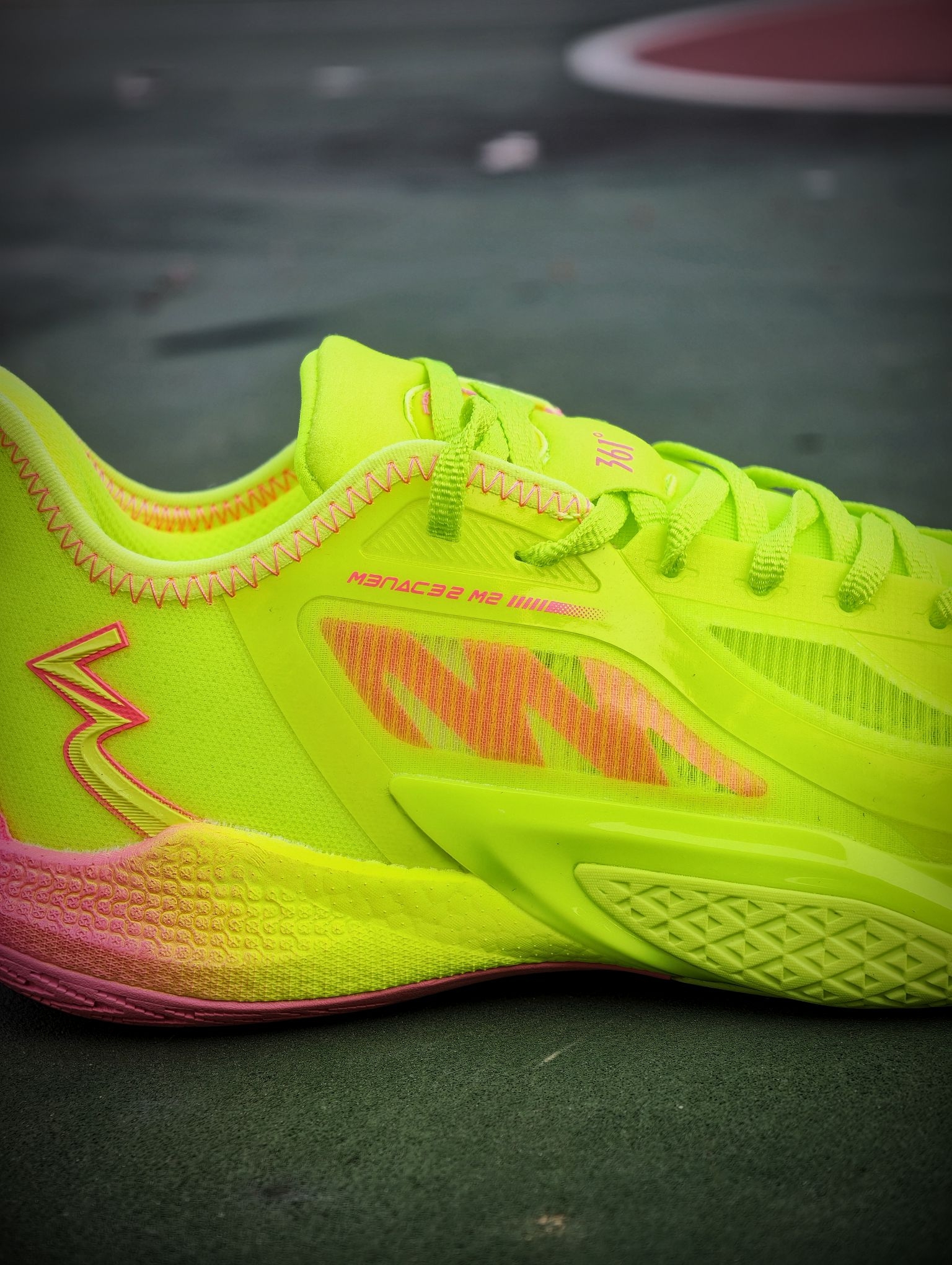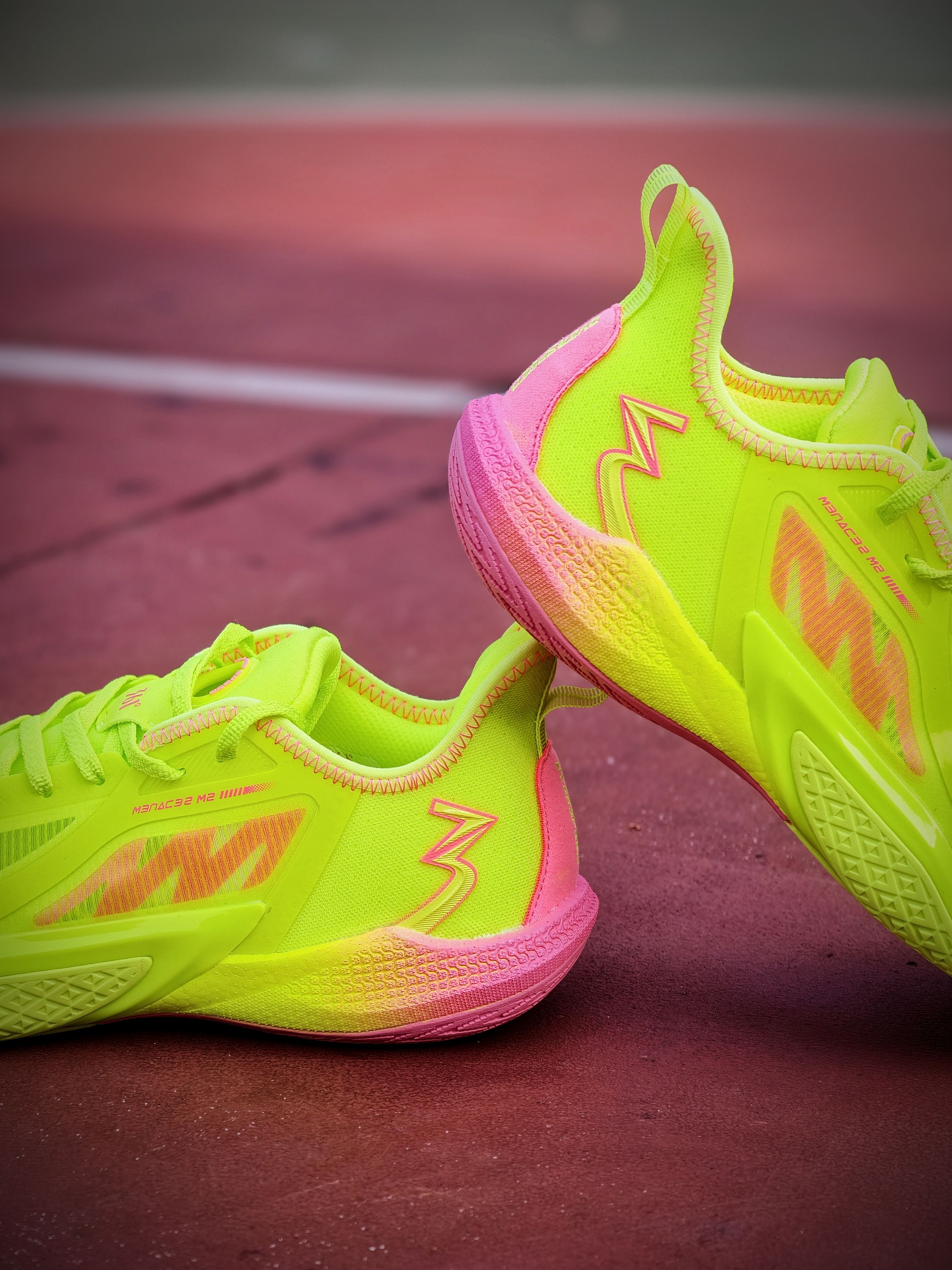 #361° 狂飙2实战篮球鞋,荧光配色超吸睛 荧光黄+粉色渐变设计,绝对是场上焦点 鞋面工程网布,透气又轻盈,脚感很舒适 中底搭载361度科技,缓震支撑力满分 外底多向纹路抓地力强,室内外都能轻松驾驭 整体轻量化,灵活度高,是一款后卫鞋 适合追求速度和敏捷的篮球爱好者