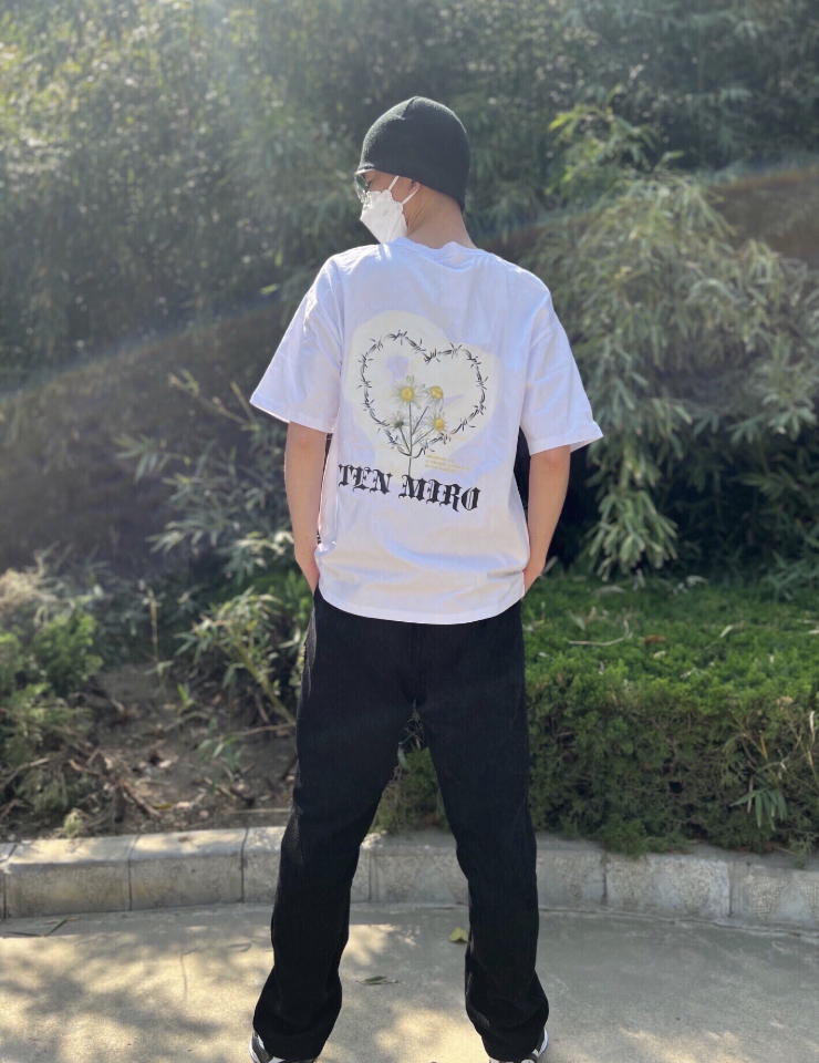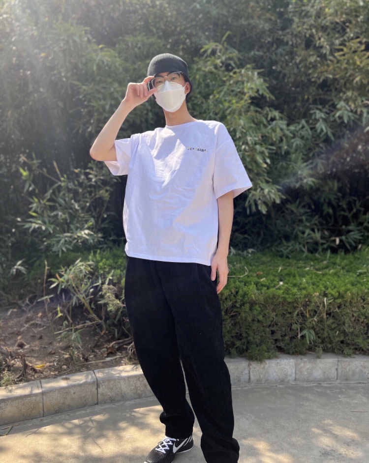 上衣:来自TEN MIRO的的白色短袖,所以选择这纯棉的材质,穿起来柔软舒适,版型也很合适,印花出做工很用心,质量不错的 裤子:同样选择了黑色的长裤 鞋子:黑白球鞋 身高:185cm 体重:70kg 尺码:xl