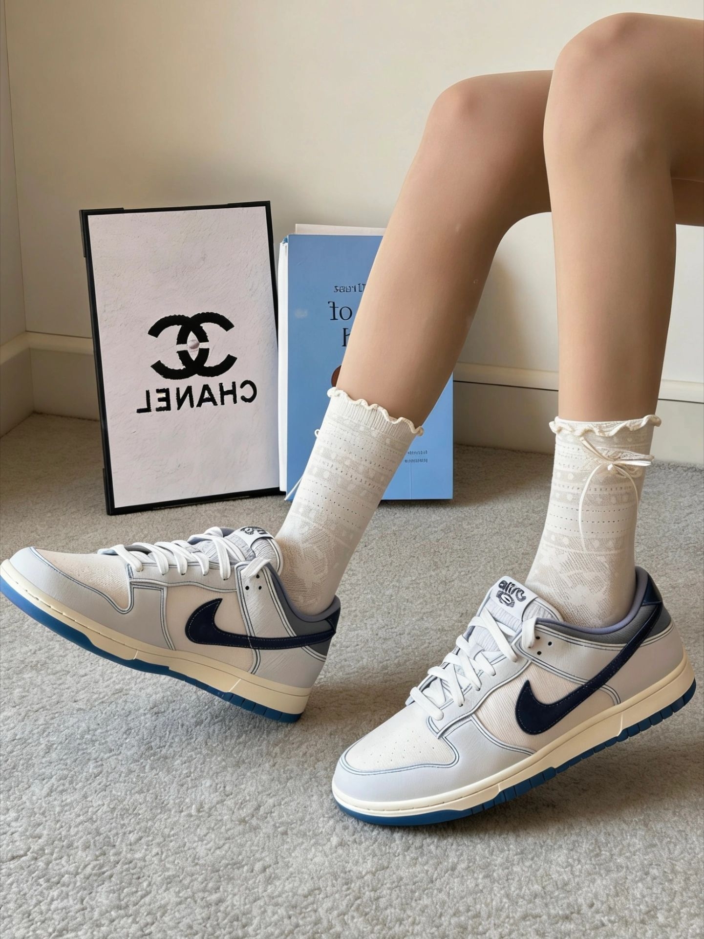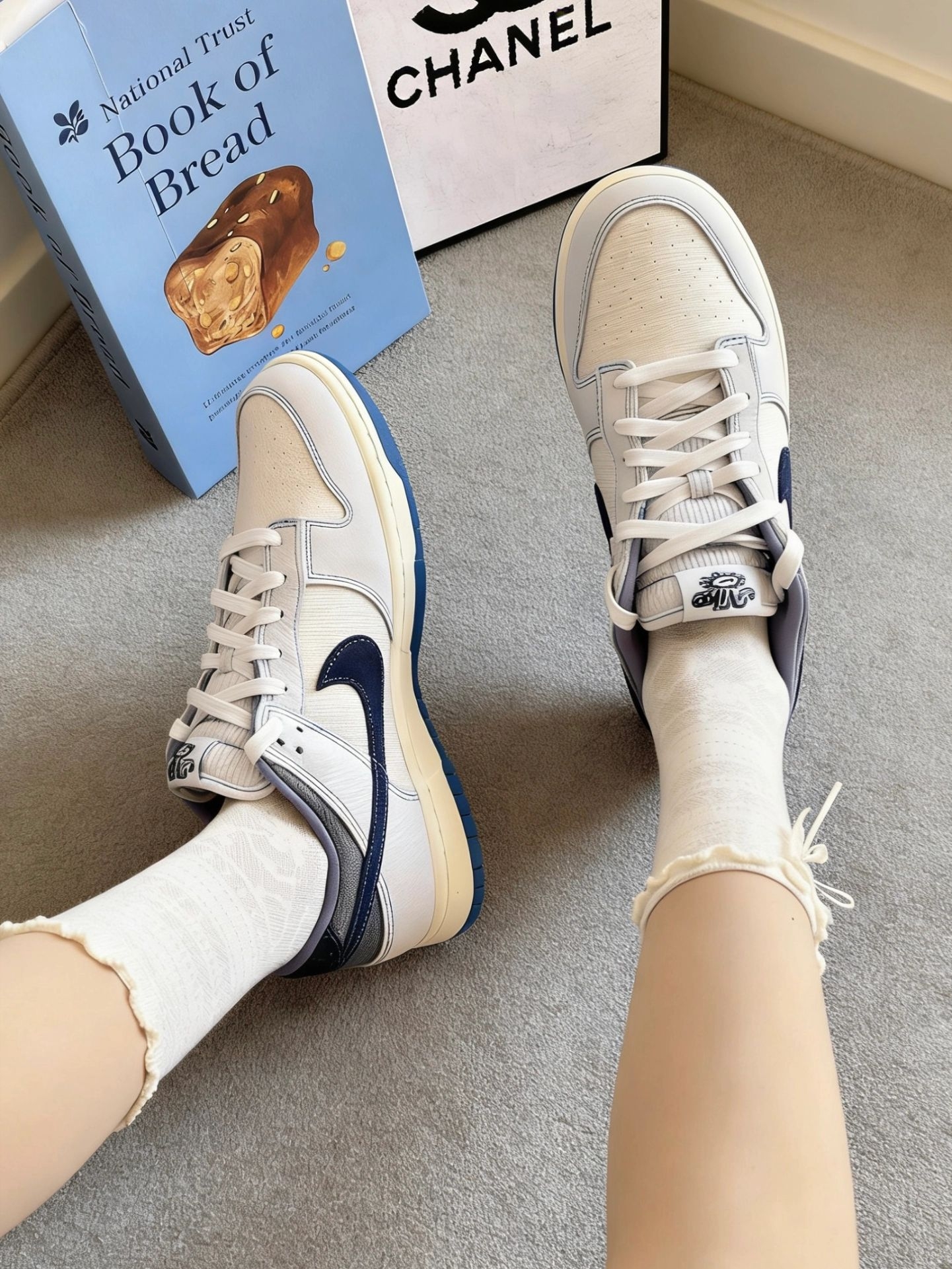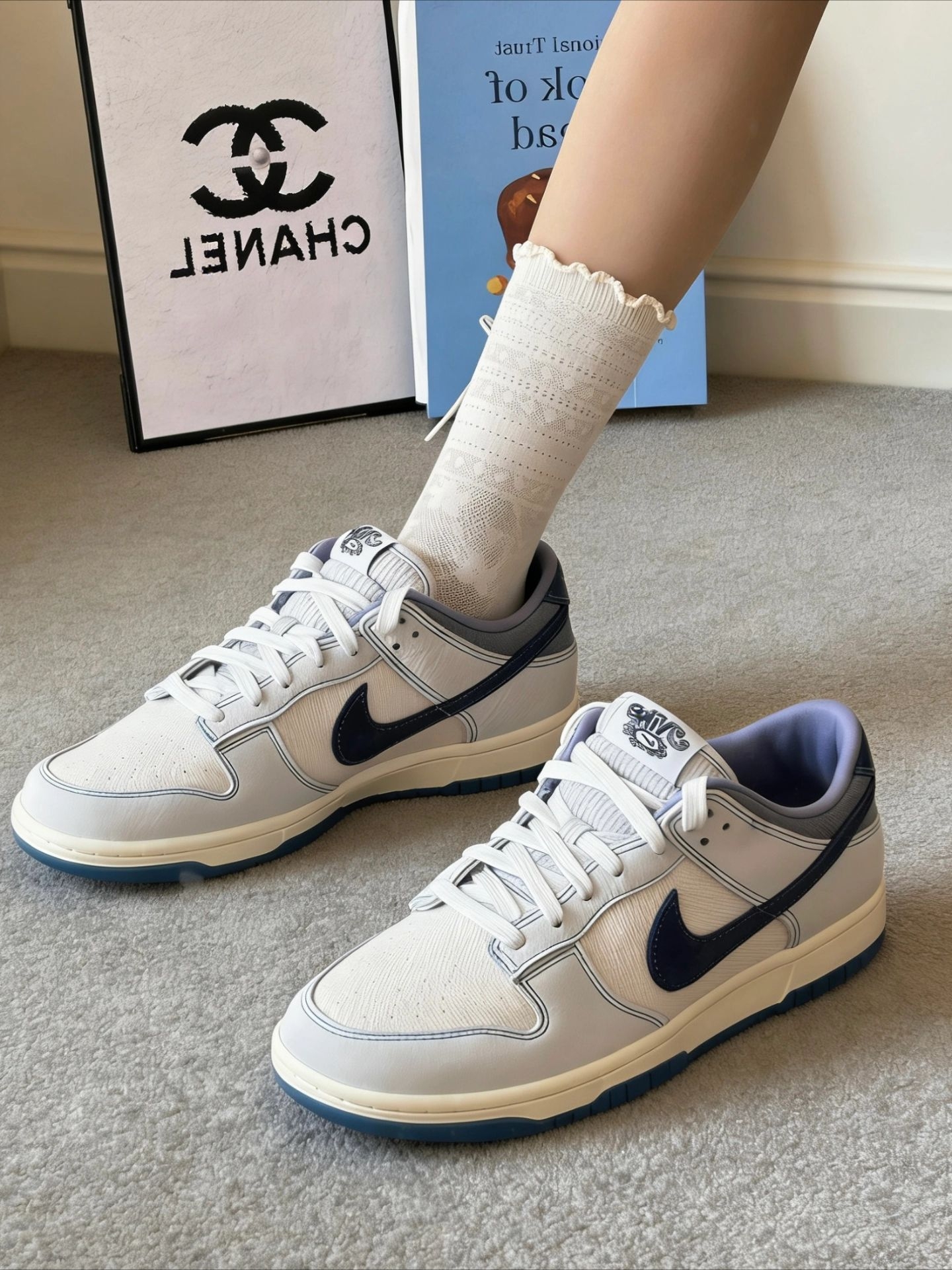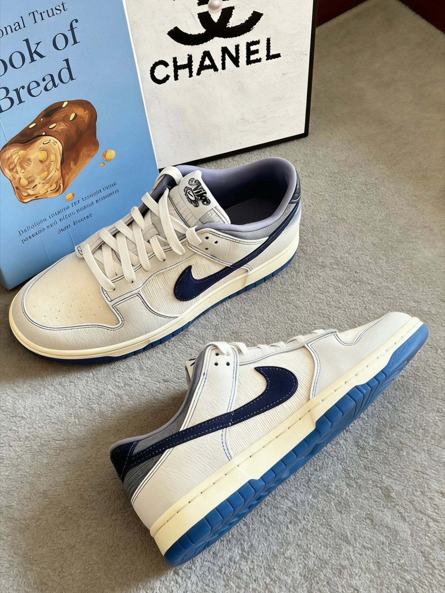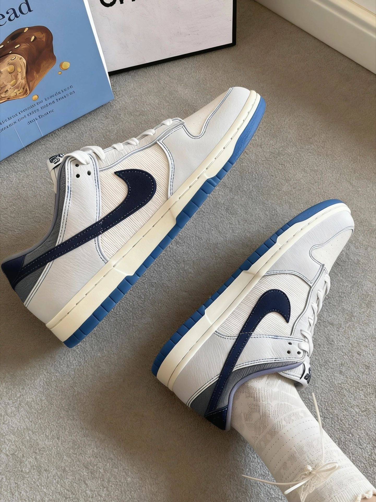轻便舒适,颜值在线的Nike|||这双Nike鞋真的绝绝子! 米白+藏青+冰蓝的配色,把复古感拉满,鞋身还拼了不同材质,细节感很到位。 鞋面是那种有纹理的材质,透气性不错。 日常配牛仔裤、休闲裤、小裙子都好看,日常穿完全不挑风格。 关键是 cleaning 很方便,脏了擦一擦就干净了。真心推荐给喜欢简约风格的朋友! #氛围感满满的复古休闲鞋 #dunk米蓝 #Nikedunk白蓝 #宝藏复...