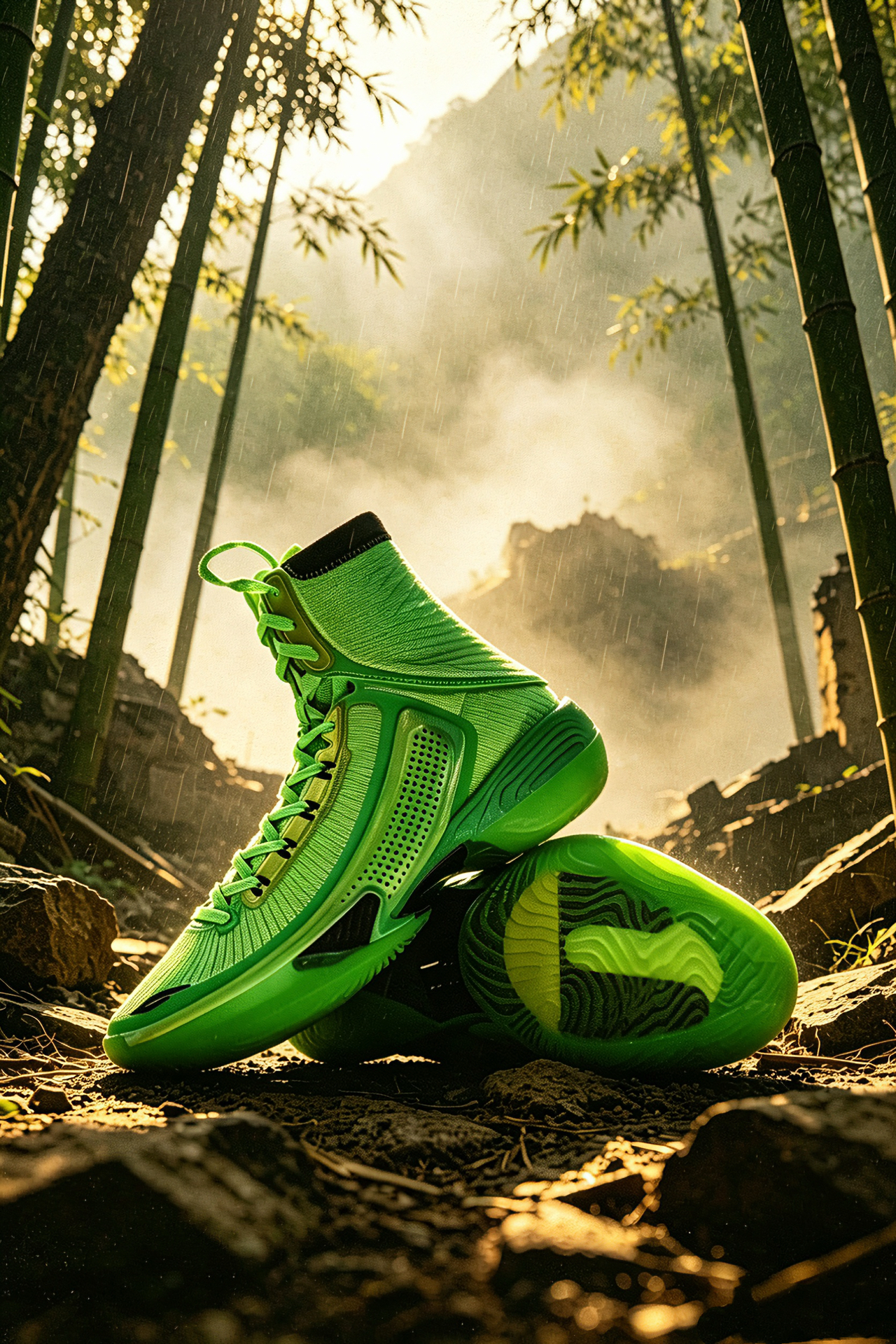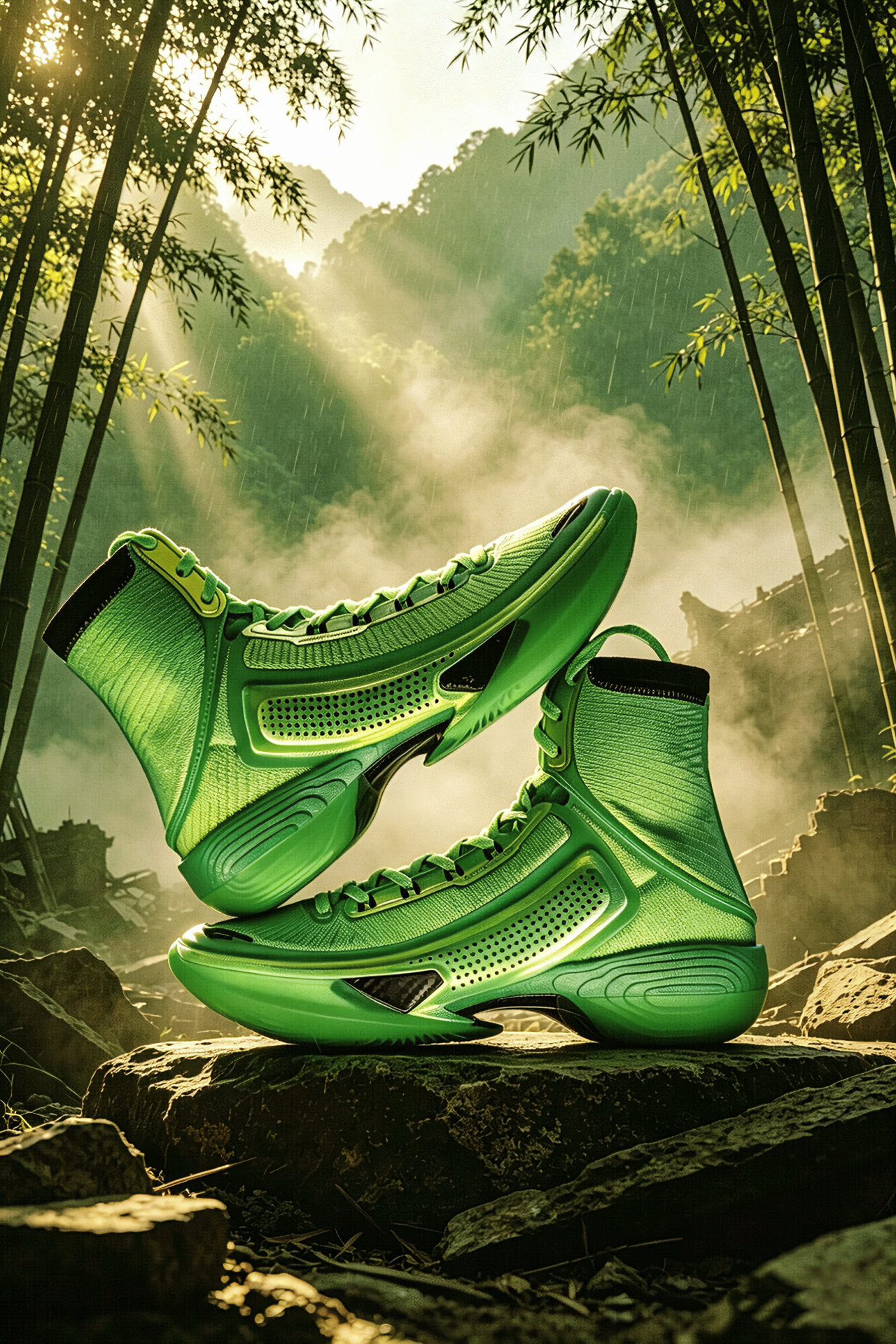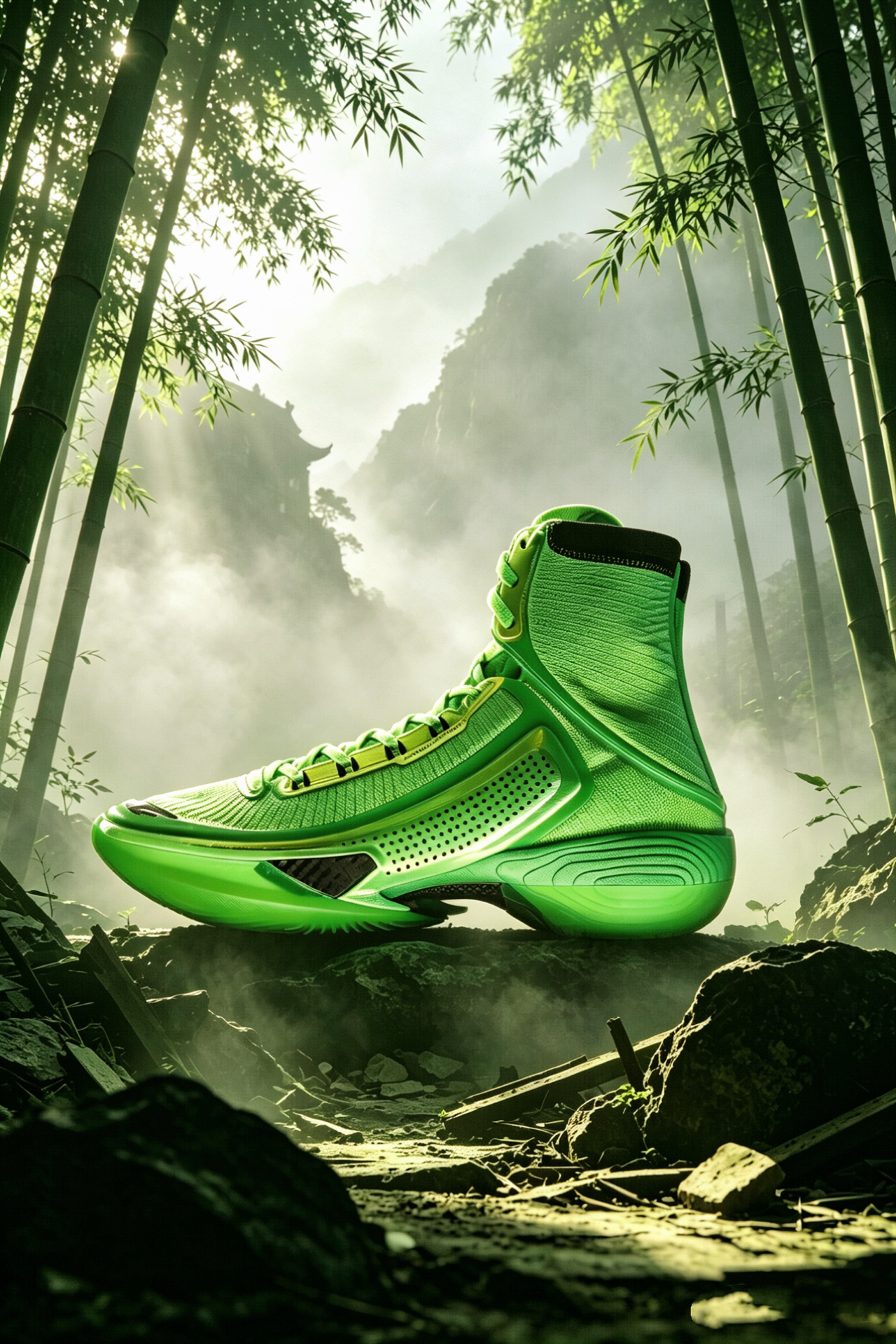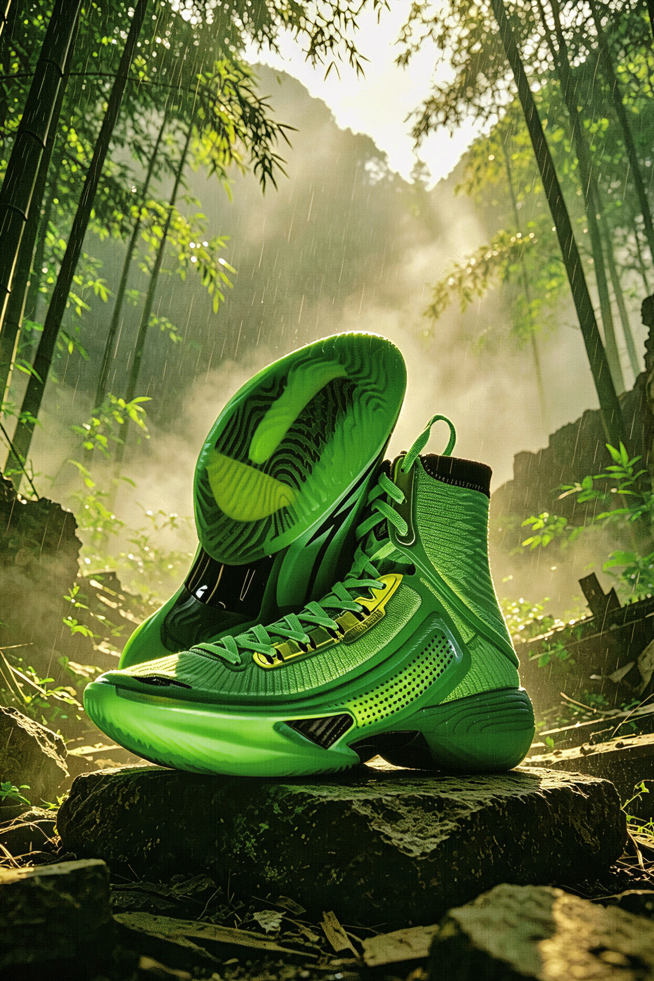 兄弟们,安踏TYPE1竹叶青配色太绝了!灵感源自竹叶青,深邃绿调自带清冷高级感,蛇灵反光logo细节拉满,鞋头竹叶标识更是点睛之笔。 专为弹跳爱好者设计,虽重心偏高对脚踝力量有要求,但弹跃反馈超直接,适配球场实战。多巴胺配色超吸睛,暴力跳跳男上脚就是球场焦点,颜值与实力双在线!