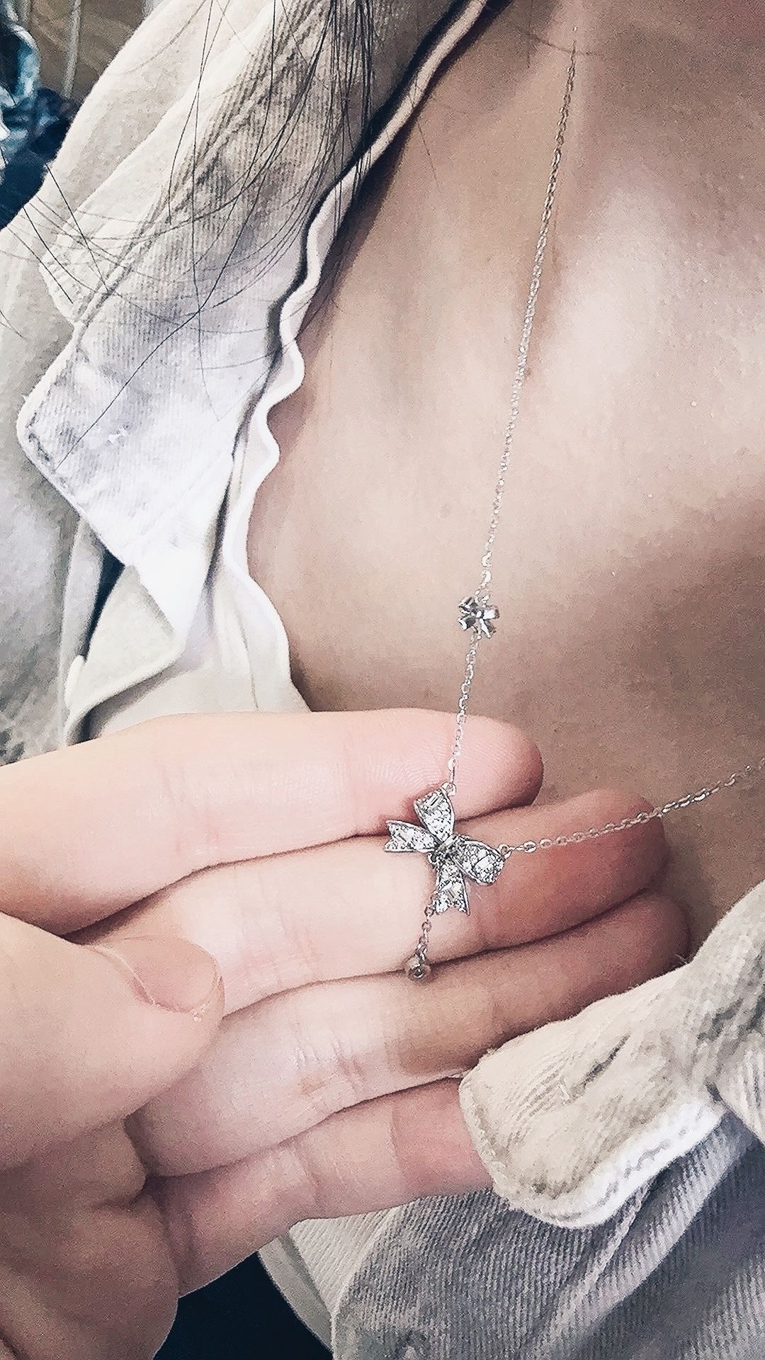 谁还没拥有这条蝴蝶结项链我都会伤心的 OK? 满钻蝴蝶结+灵动流苏,闪到发光,柔又高级 戴上秒变氛围感美女,显脖子长、显脸小,百搭不挑人 日常通勤、约会、聚会戴都超合适,小众不撞款 不管是自留还是送礼,都是闭眼入的款!