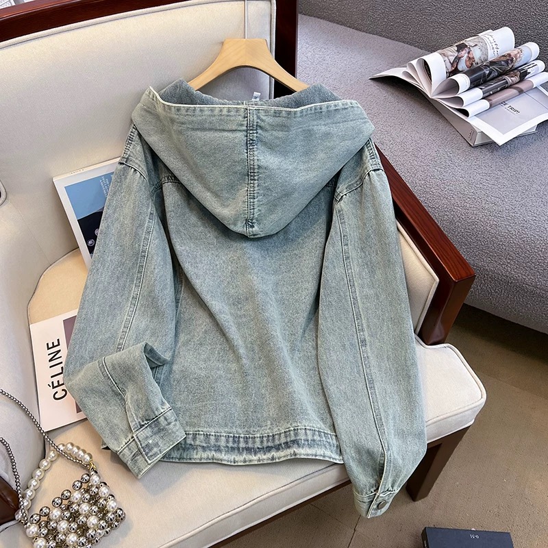 复古做旧浅蓝真的太绝了✨ 连帽设计直接把休闲感拉满 宽松版型不挑身材,小个子也能轻松驾驭 春秋单穿、冬天叠穿都超合适 日常通勤、约会、出街全场景适配