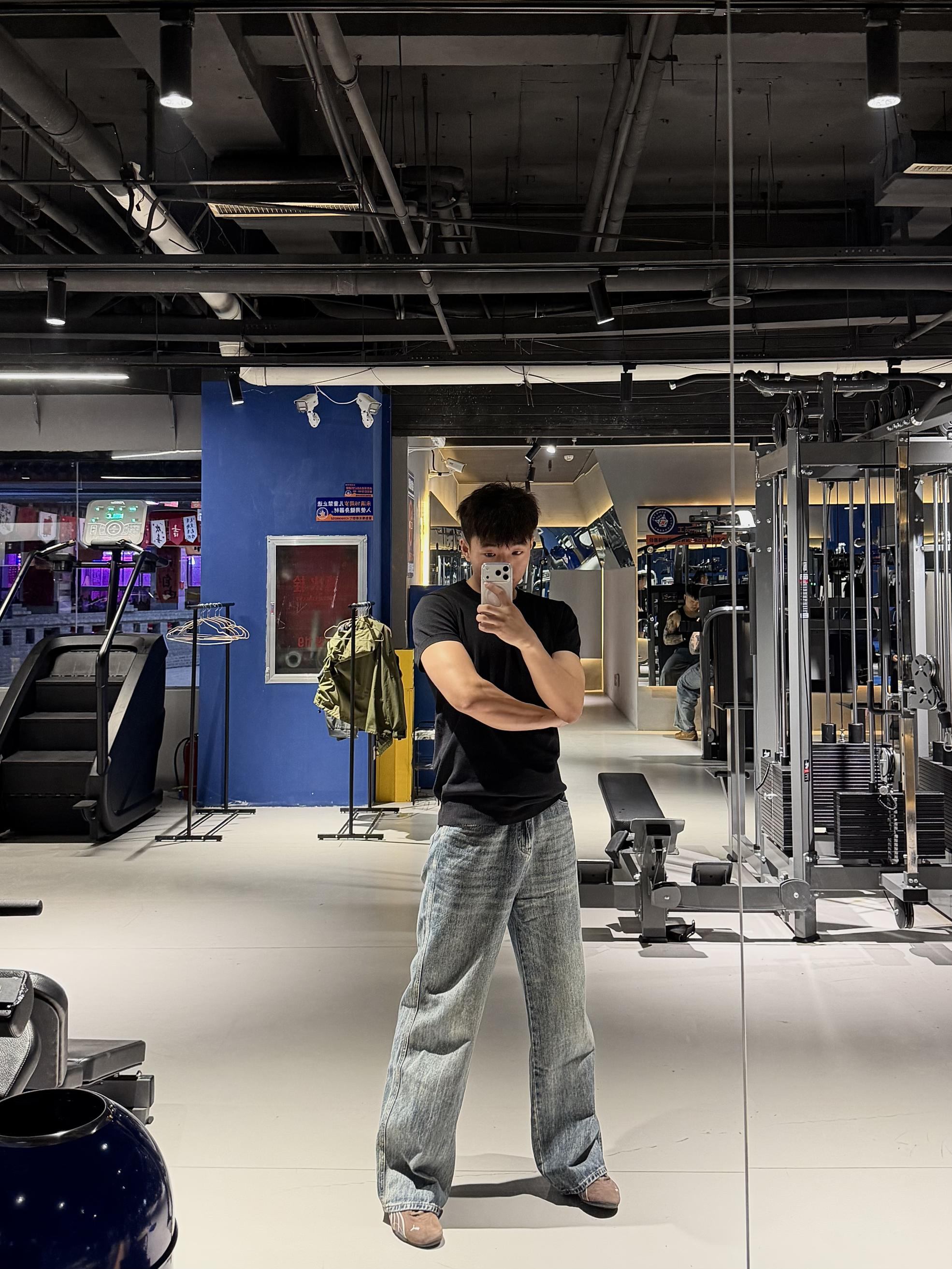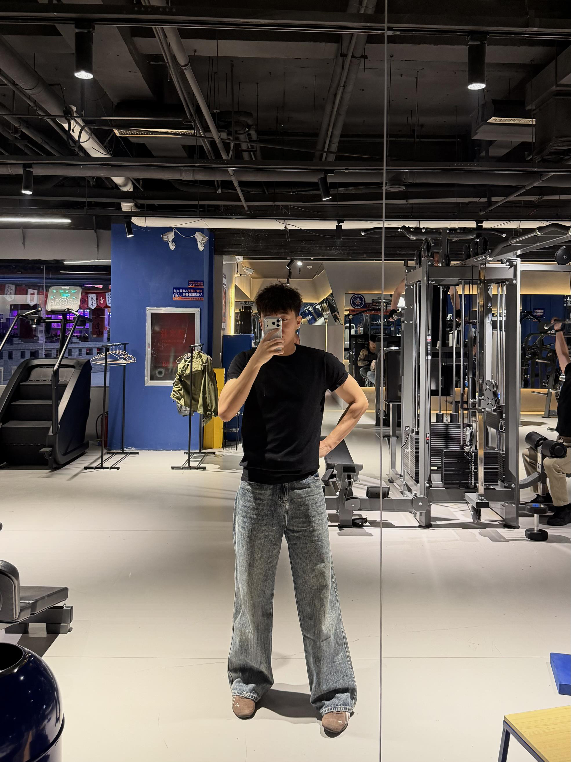 直筒牛仔裤简单又很好看 版型相对宽松适合大部分人的身材 穿上很有街头氛围感 出门穿很实用