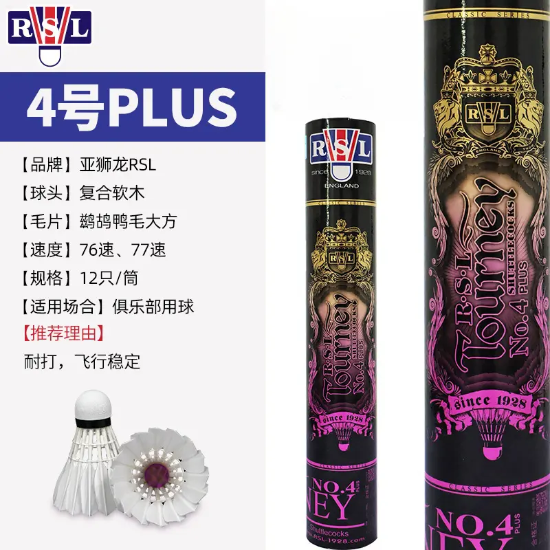 本篇笔记关联了RSL/亚狮龙 NO4. PLUS 耐打 飞行稳定 鸭毛 羽毛球 白色等商品,为用户提供真实的使用体验和购买参考。