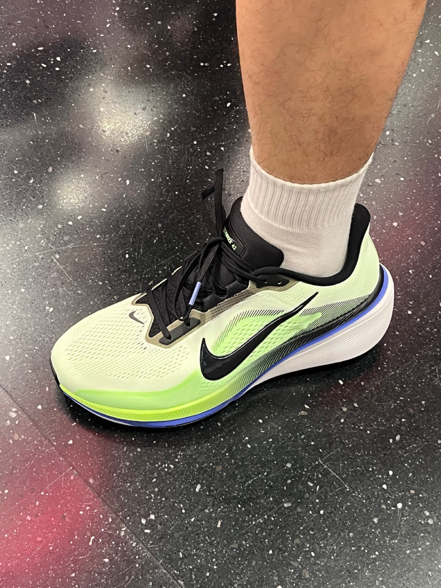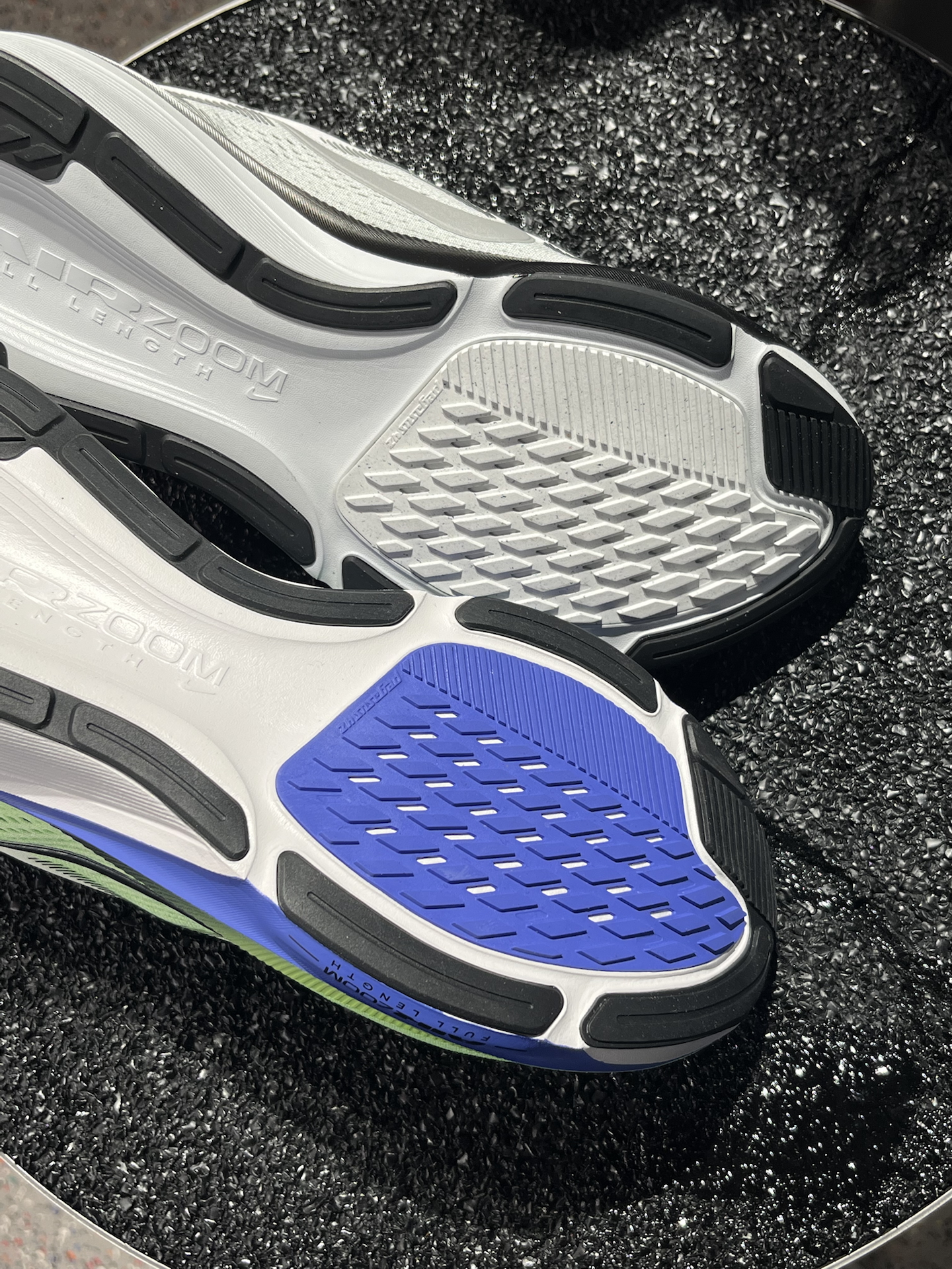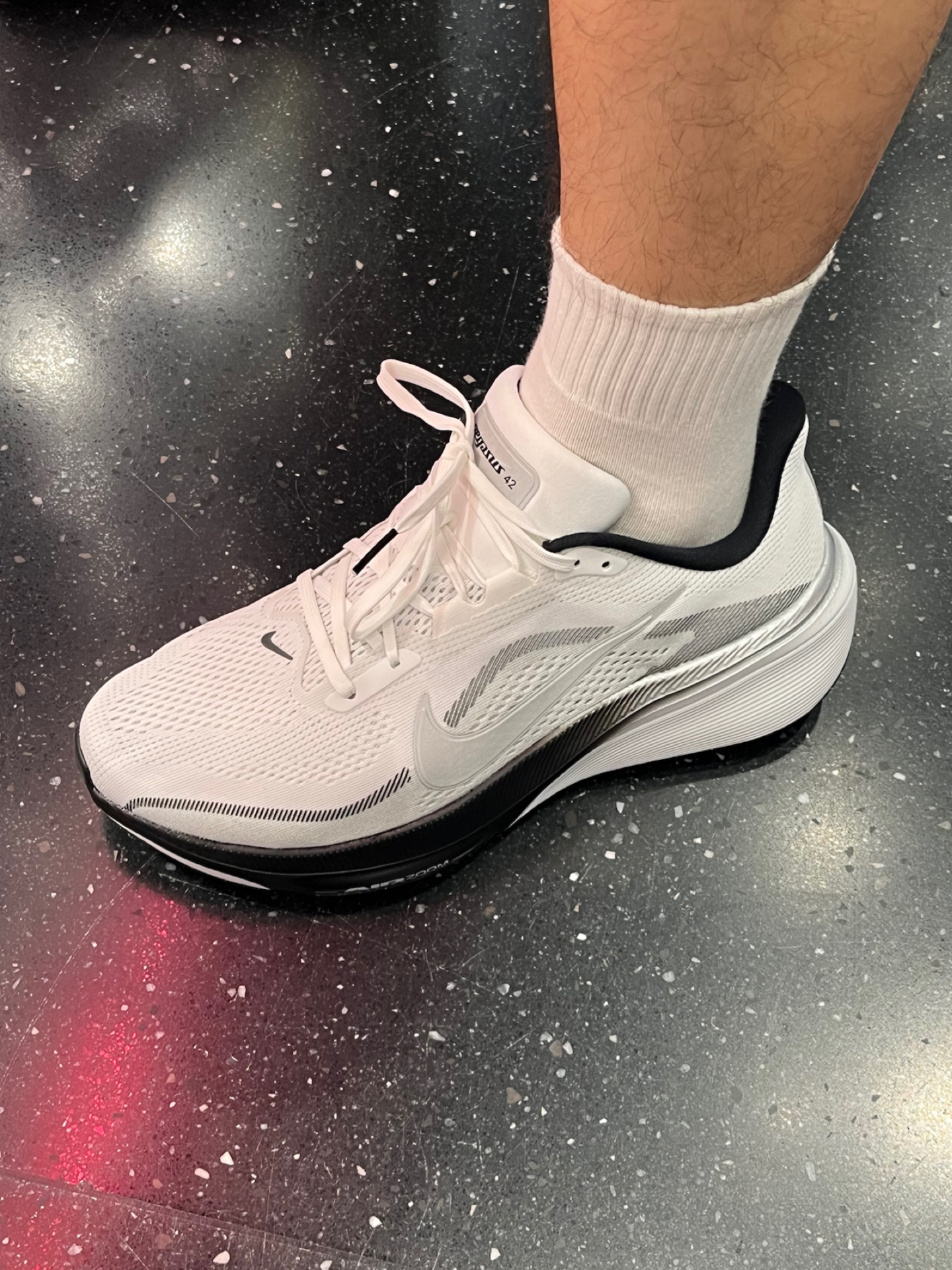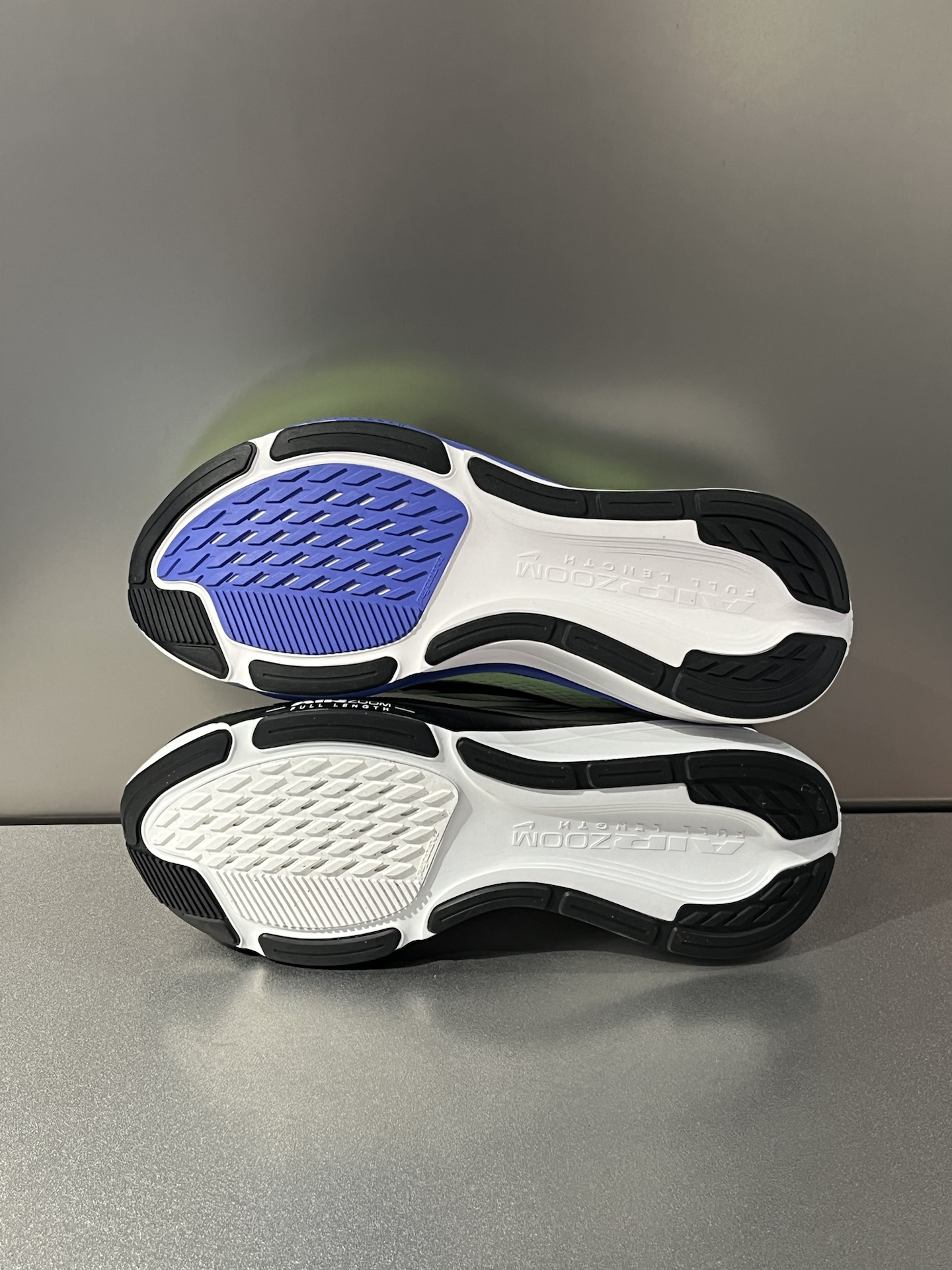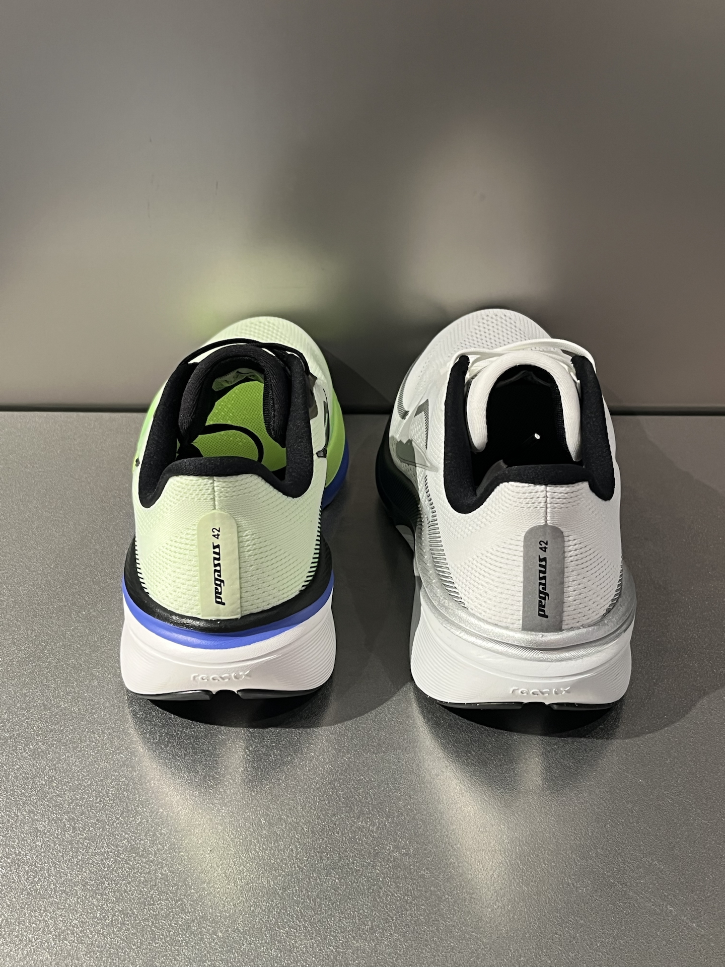 刚上脚这双飞马42,整体很均衡,我觉得依旧是“万金油跑鞋”,适合学生党在学校穿一整天,以及入门慢跑/日常通勤 相比上一代,前后气垫换成全掌曲线气垫,而且鞋头更翘,跑起来滚动感很顺,不会软塌,不同尺码气压也有调整,脚感更贴合 分区鞋面,弯折也很自然,我上脚很明显感受到鞋楦改变,前掌不挤脚、不压脚背,穿着舒适度不错 耐磨的橡胶鞋底,带弯折沟槽,对于平时走路、跑步切换很顺畅