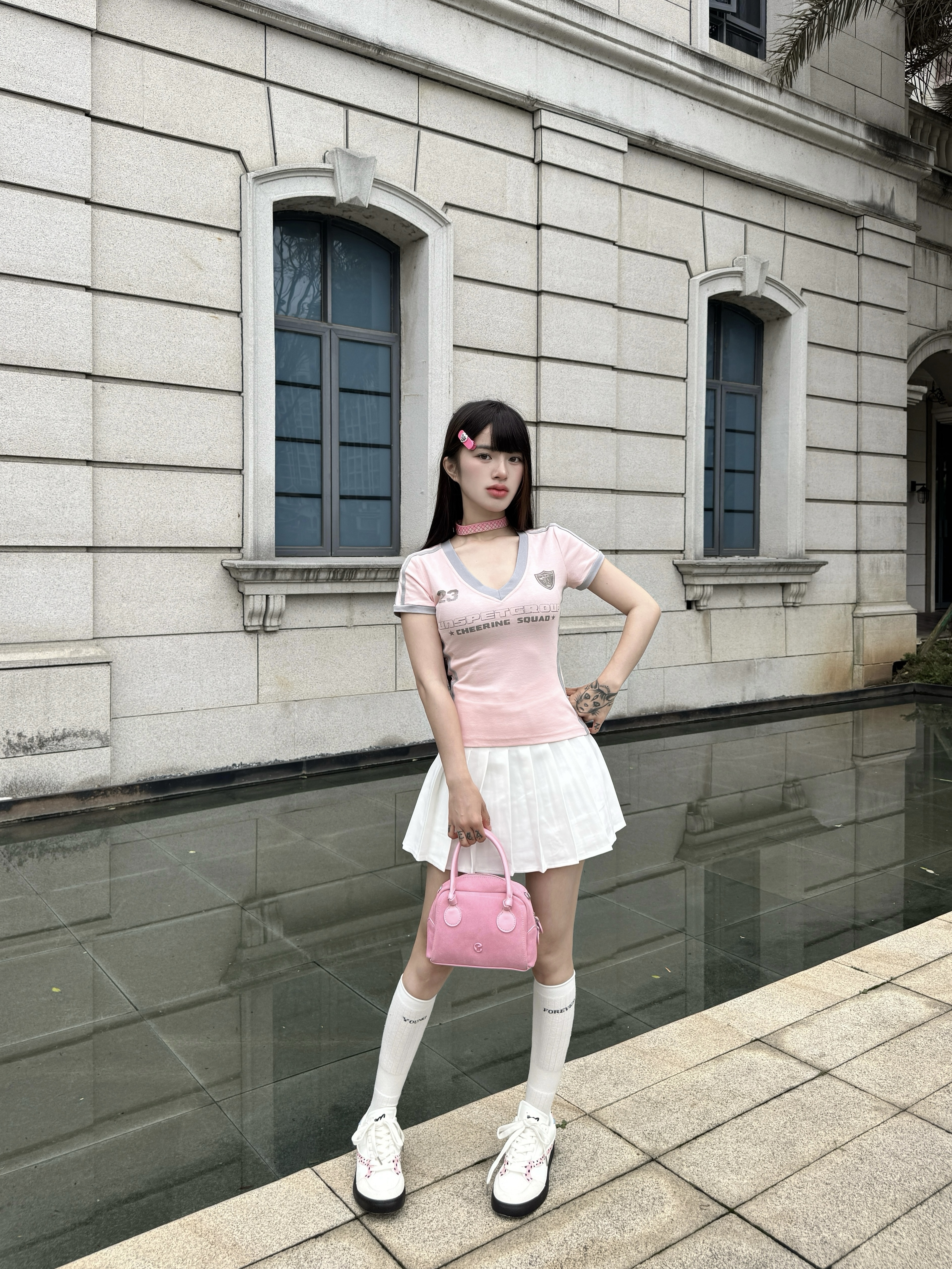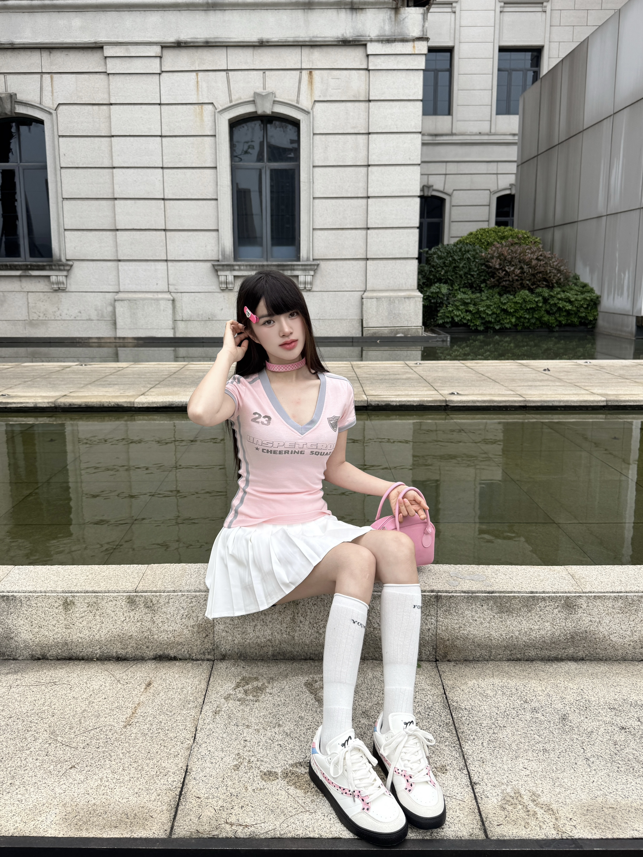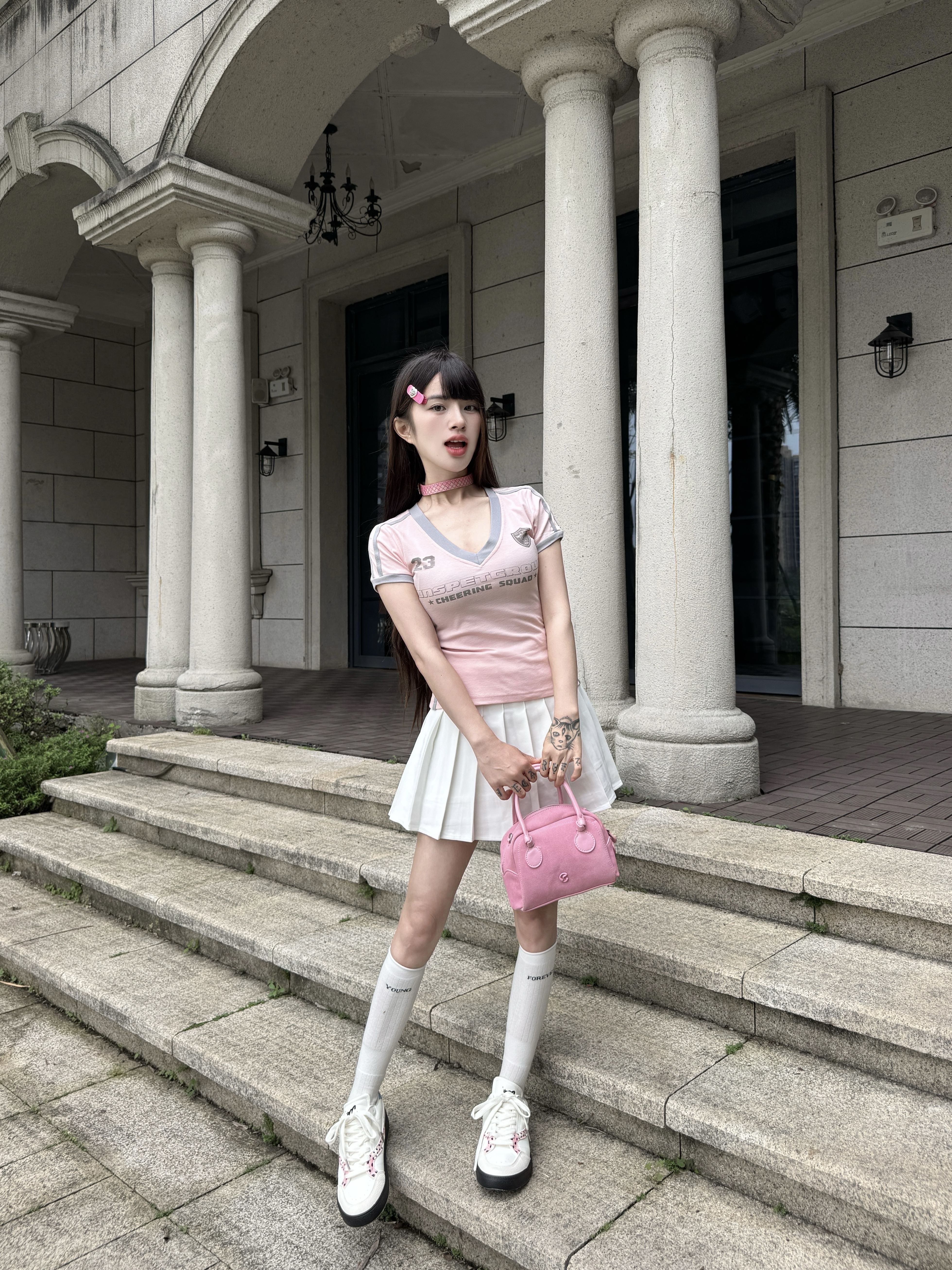 🏫日常出门就爱这种舒服又上镜的穿搭 粉灰V领T搭百褶裙,甜辣感直接拉满✨ 👉小白鞋的粉黑爱心细节超戳我,上脚软乎乎的 暴走一天都不磨脚,完全是懒人福音~ 日常出门的舒适感,这一套直接拿捏住🤏