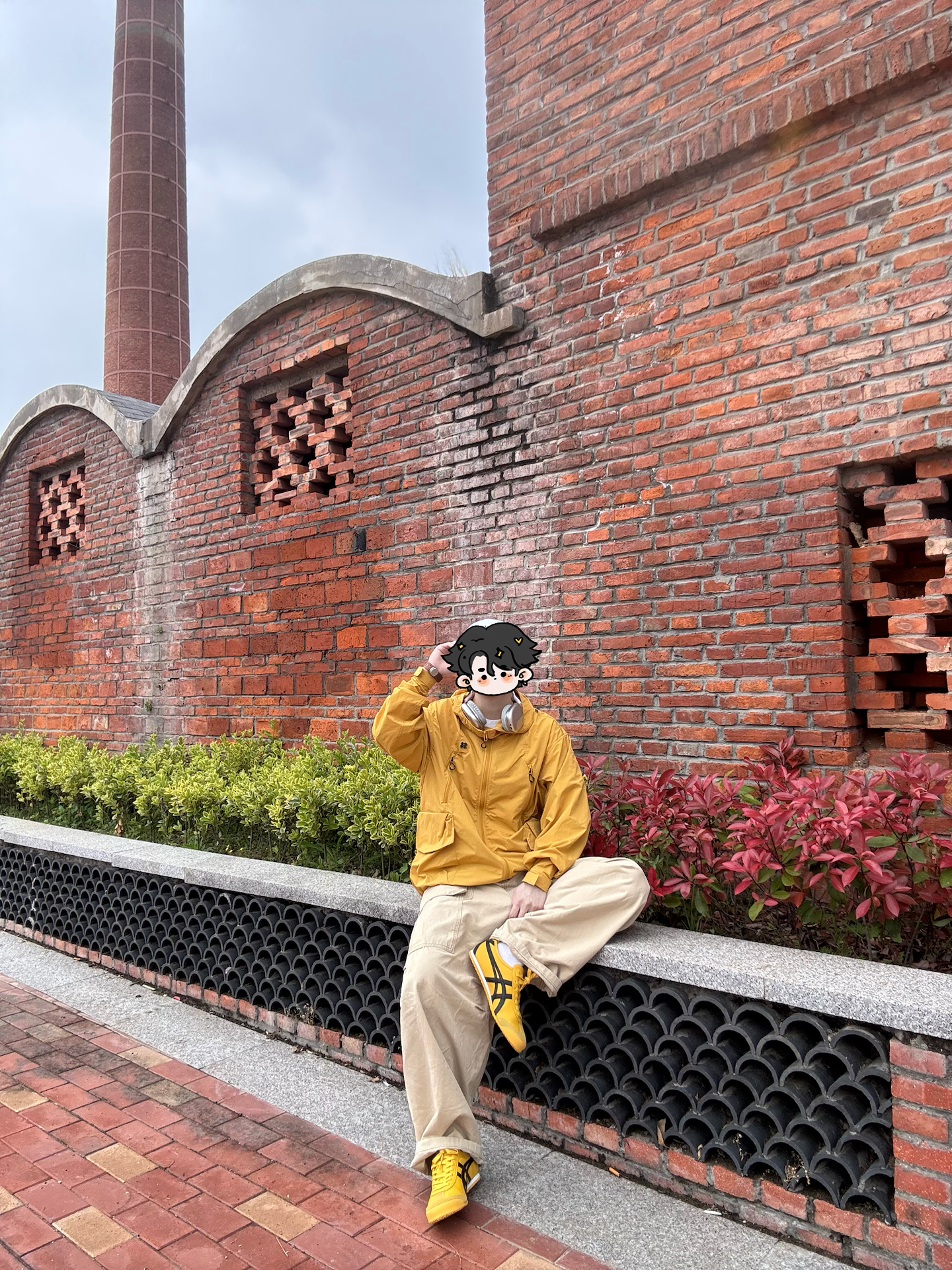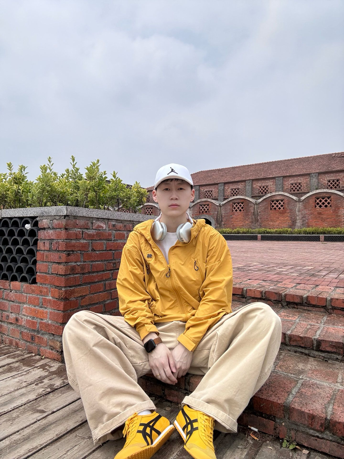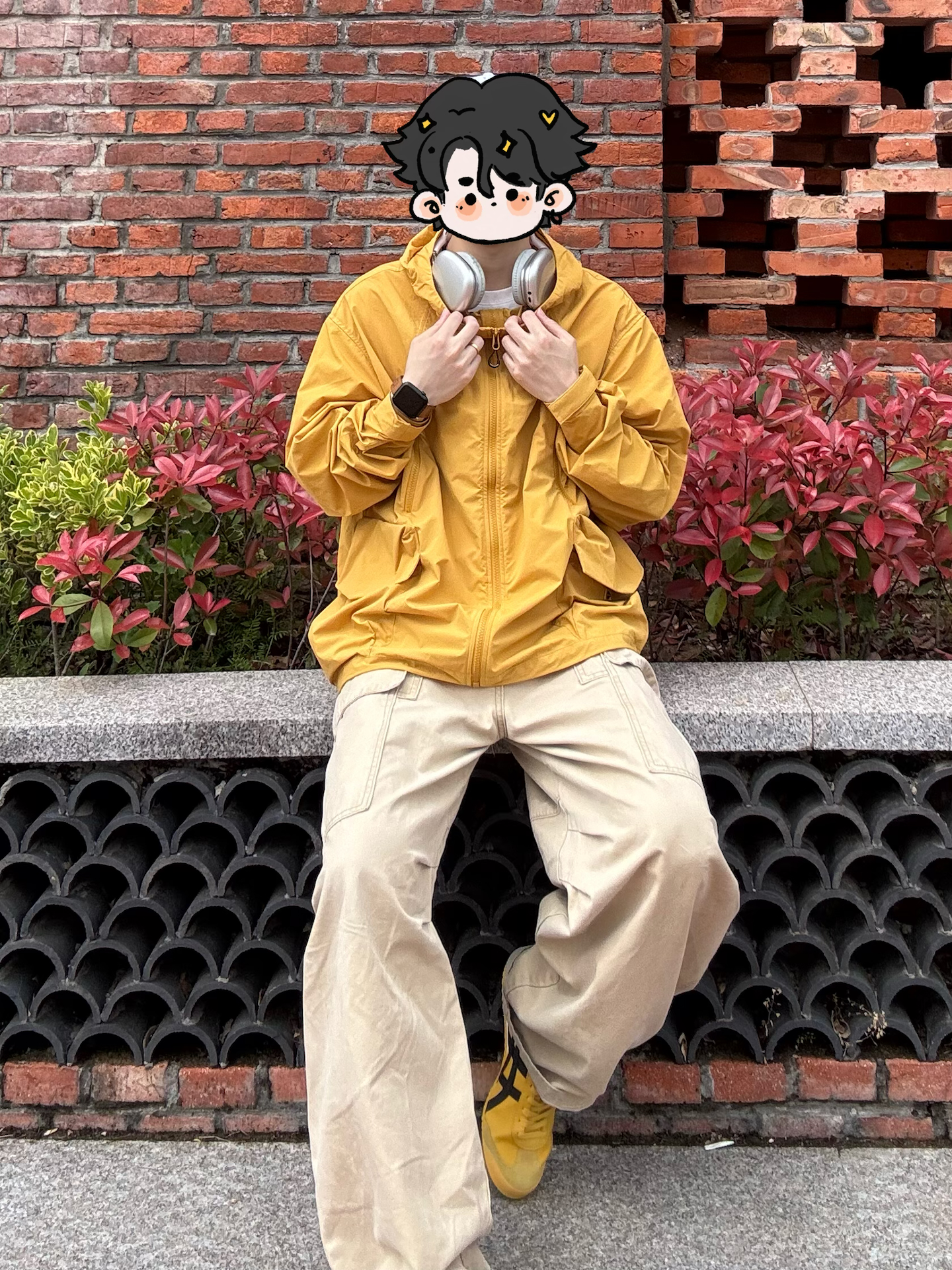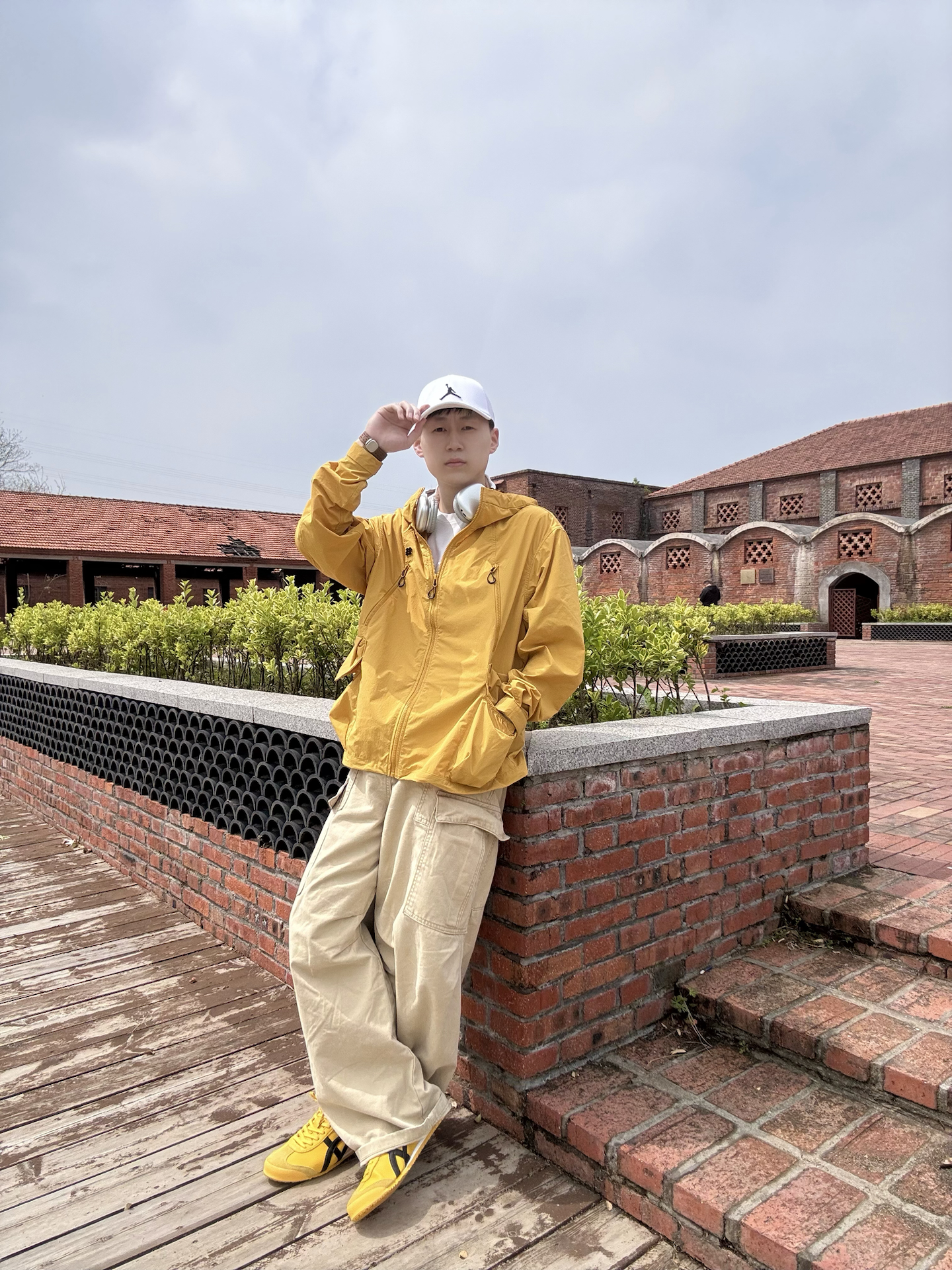 姜黄色冲锋衣+同色系阿甘鞋,低饱和卡其裤做过渡, 整套同色系穿搭自带松弛滤镜。 白色鸭舌帽+银耳机🎧点缀细节,复古红砖背景衬得少年感拉满,慵懒又随性,日常出街氛围感直接焊死! 你们平时会用同色系打造松弛感吗? 🧥: SPORT 👟: Tiger