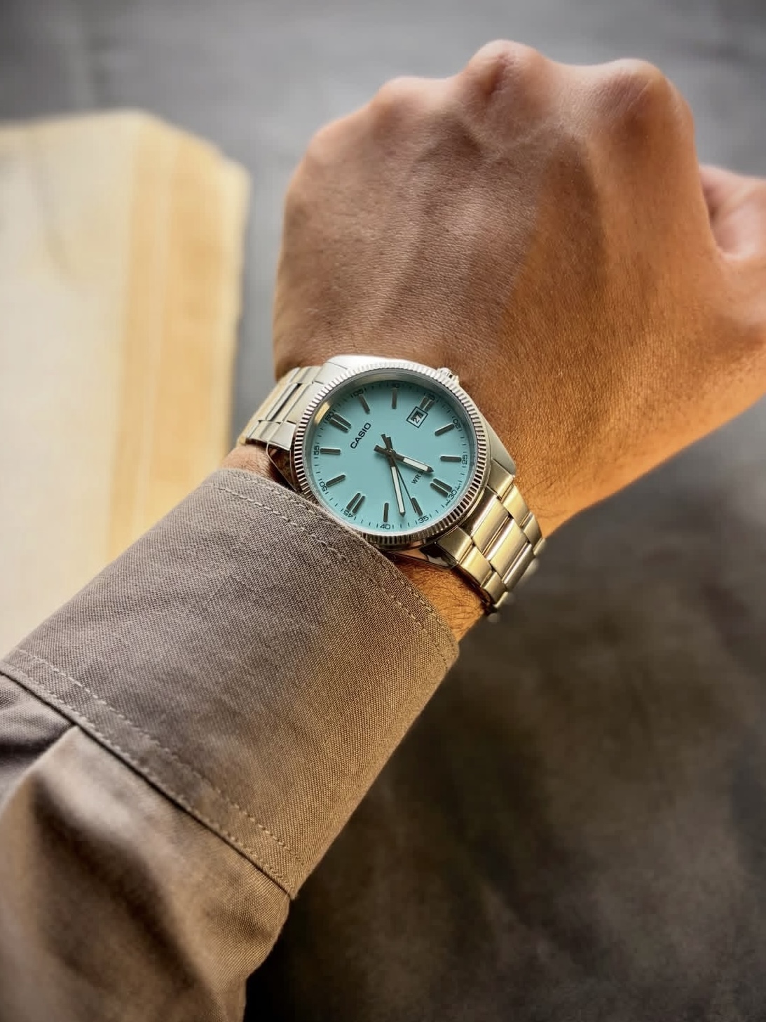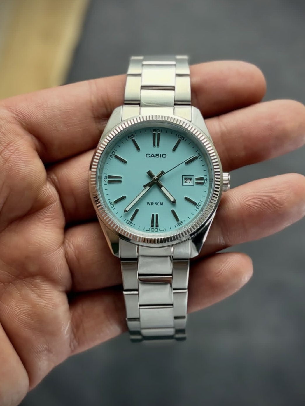 谁懂啊!在得物入的这只卡西欧冰蓝盘石英表,直接焊死在手腕上!昨天戴去便利店买水,柜员小姐姐盯着表盘追着问了三次链接,连男生戴都巨显手细,清冷感直接拉满✨ 银色钢带质感拉满,夏天戴不闷汗,50米防水洗手、下雨随便造,石英机芯走时超准。早上赶时间套个T恤就出门,配工装裤酷飒,配连衣裙温柔,男女同款直接凑情侣款! 得物验货保真,到手干干净净,学生党、打工人闭眼冲,出门回头率直接拉满! #卡西欧 #得物好...
