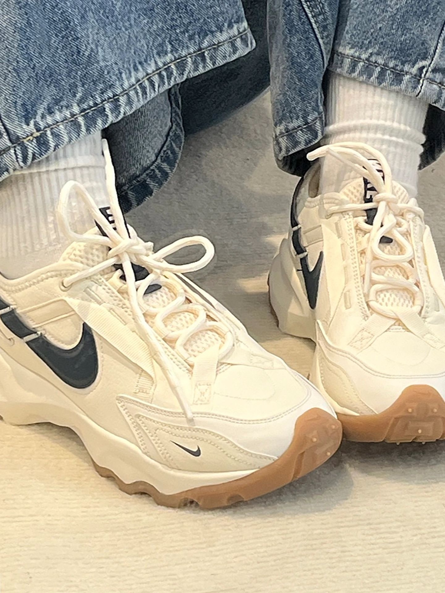 Nike TC7900奶茶色老爹鞋太香了‼️|||今天穿新入的Nike TC7900奶茶色老爹鞋出门,上衣浅杏卫衣+藏蓝直筒牛仔裤,配这鞋刚好✨!去奶茶店买喝的时,店员小姐姐说“你这鞋颜色好温柔,版型也不显笨重”,心里美滋滋🥰~ 这鞋是米黑配色(奶茶感拉满),低帮设计,鞋面软乎乎不磨脚,我37码穿正合适,宽脚姐妹也能入(鞋头空间够)~ 搭配建议:浅色系衣服随便搭,卫衣短裙牛仔裤都可😎!保养tip:...