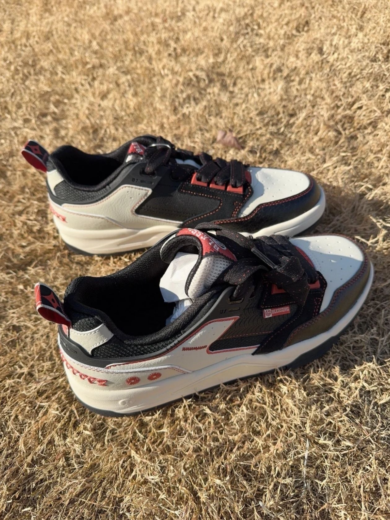 今天新入手了一双炫酷板鞋 我超级喜欢这个配色,穿在脚上很舒适,但脚底有点偏硬的感觉,透气性不错吆 鞋码也很标准,我感觉性价比超级高 搭配休闲牛仔裤都是超级哇塞的 通勤户外旅游都是可以吆