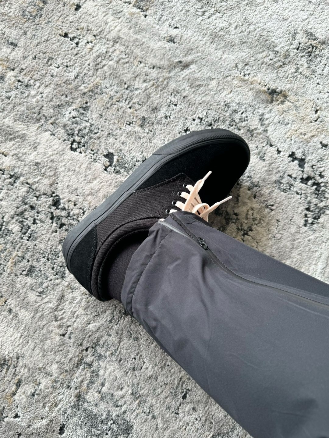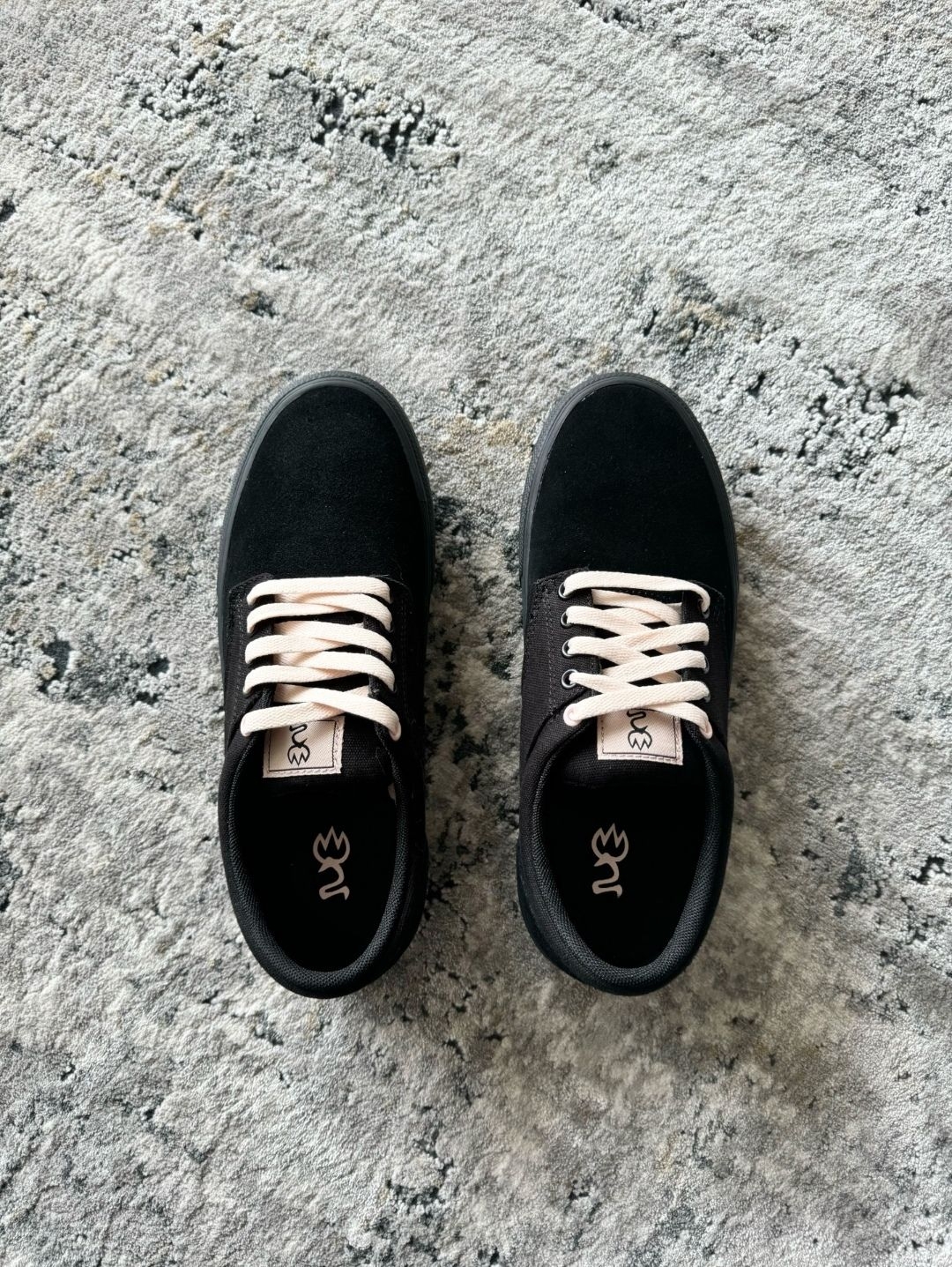看图片以为是平平无奇的板鞋😅 实际到手却发现鞋子的质感还是相当不错的😎 集中不同的黑色材料拼接🤩 穿在脚上非常的彰显精致感😂 配上附赠的粉色鞋带🥳 完全是不属于这个价位的颜值🫡