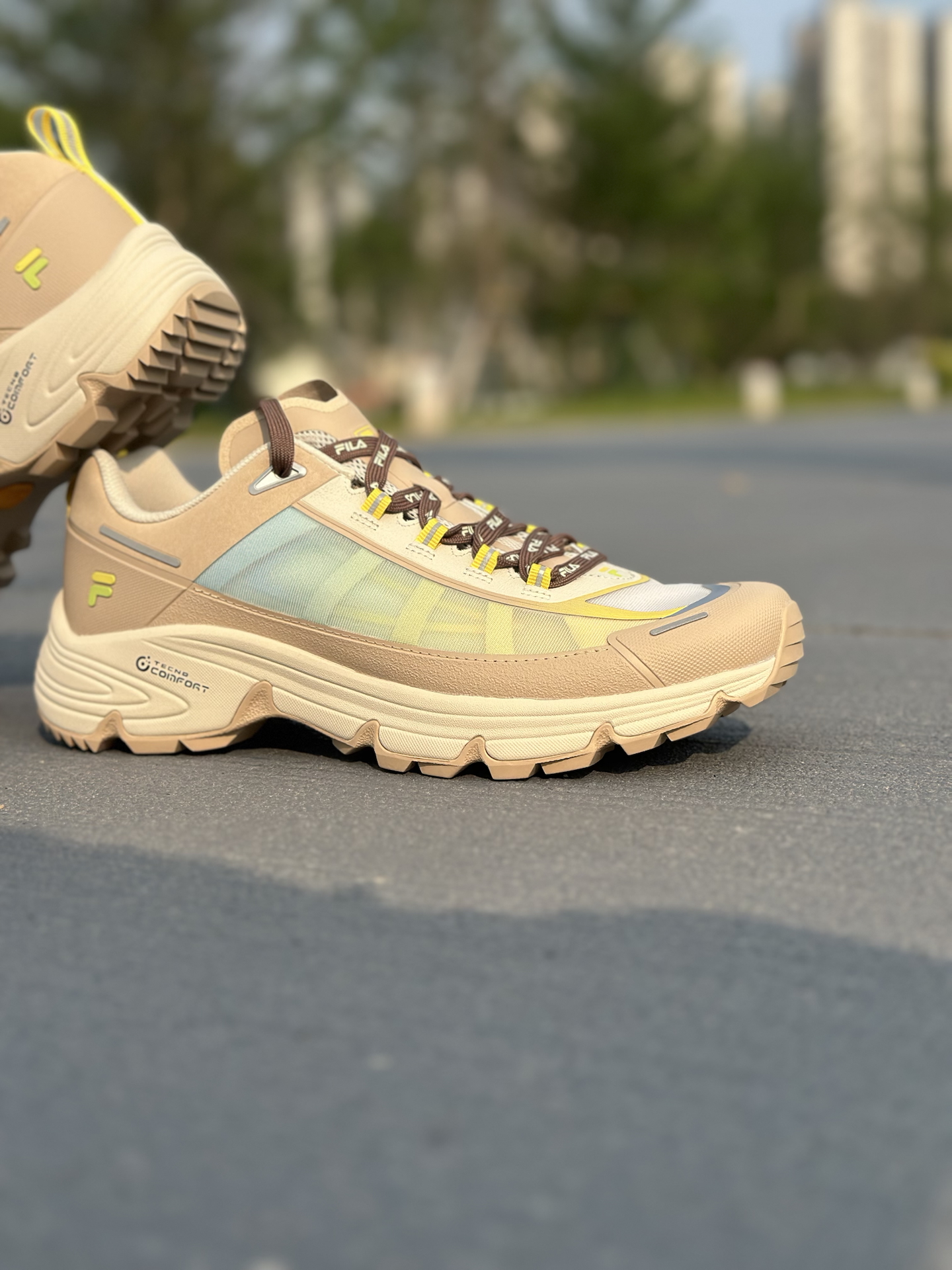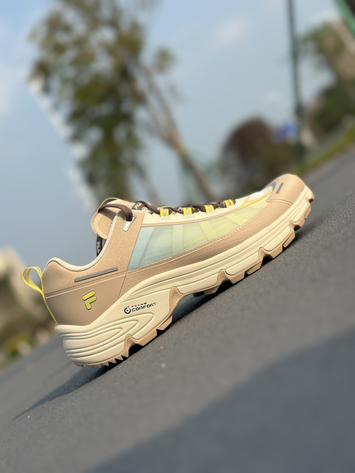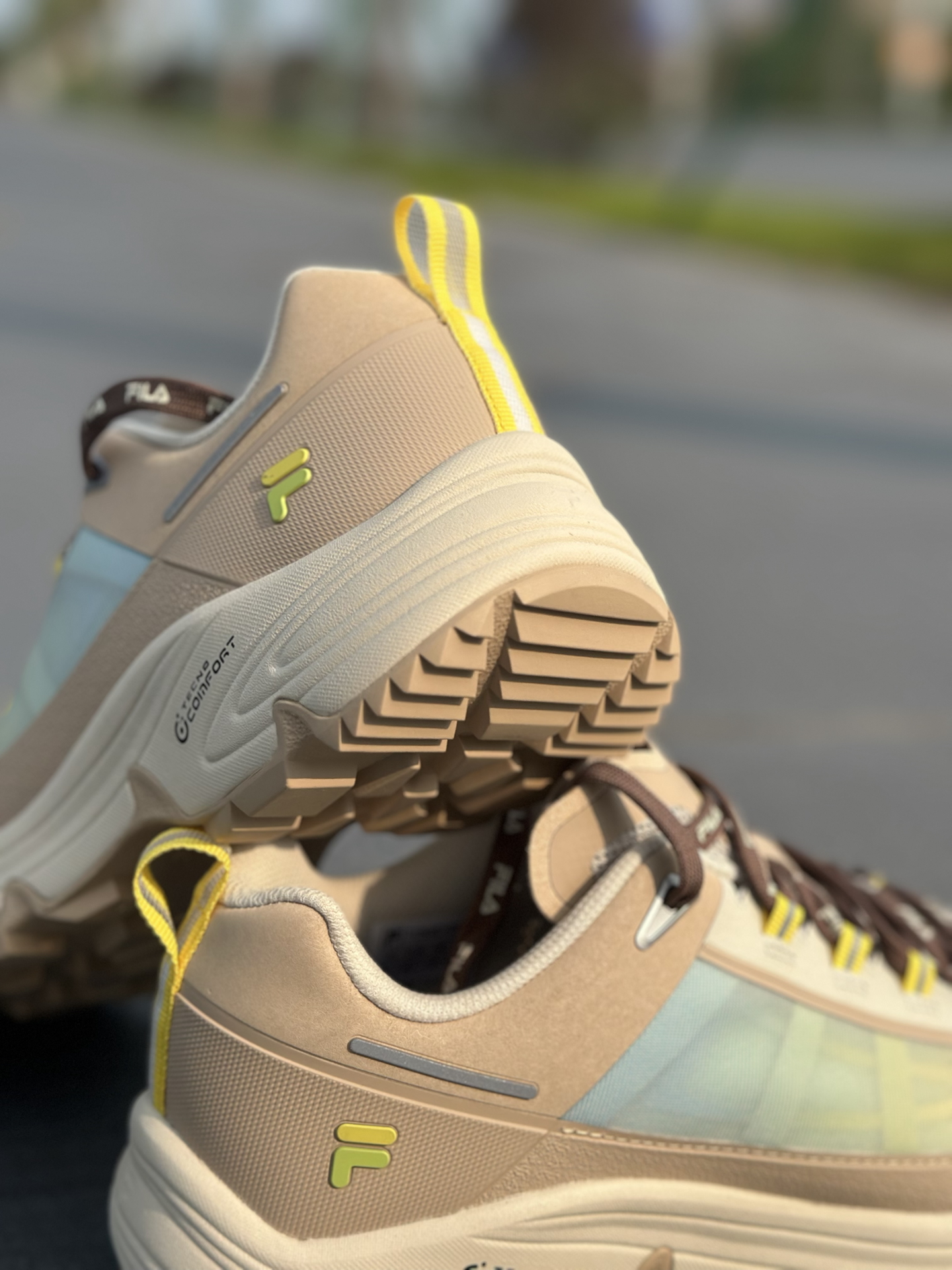 FILAFUSION COMO X 这次真的把都市轻户外玩明白了✨! 鞋面采用多材质拼接+渐变撞色设计,燕麦棕基底搭配浅青渐变与荧光黄点缀,机能感拉满,还不挑穿搭🤩! 发泡中底软弹缓震直接拉满,久走完全不累脚💪;Vibram黄金大底,湿地防滑、耐磨抗造,通勤、轻徒步双场景通吃✅! 而且宽楦设计对宽脚、高脚背极度友好,厚底造型还能悄悄增高📈! 尺码不偏,想入手的正常拍就可以。