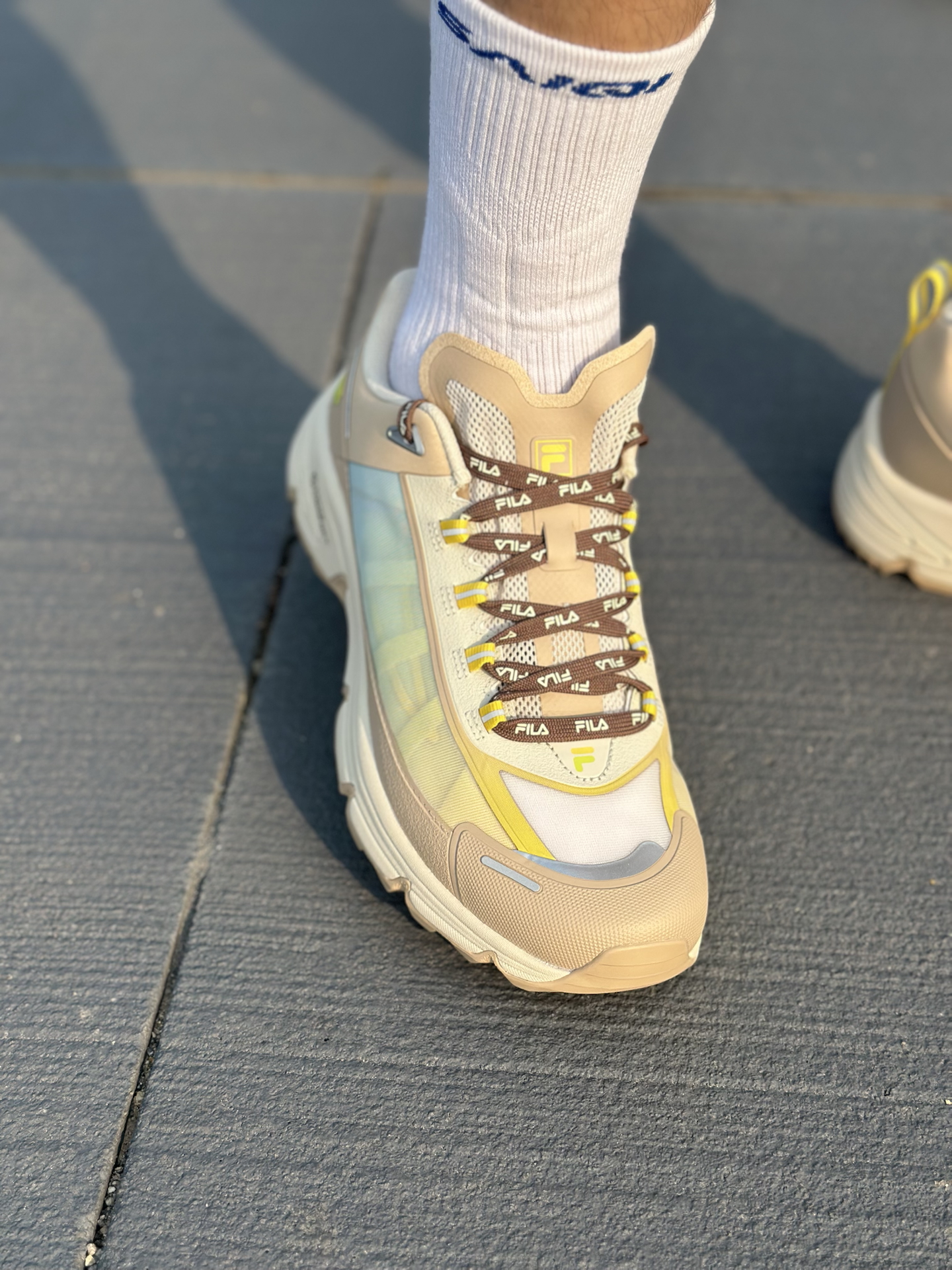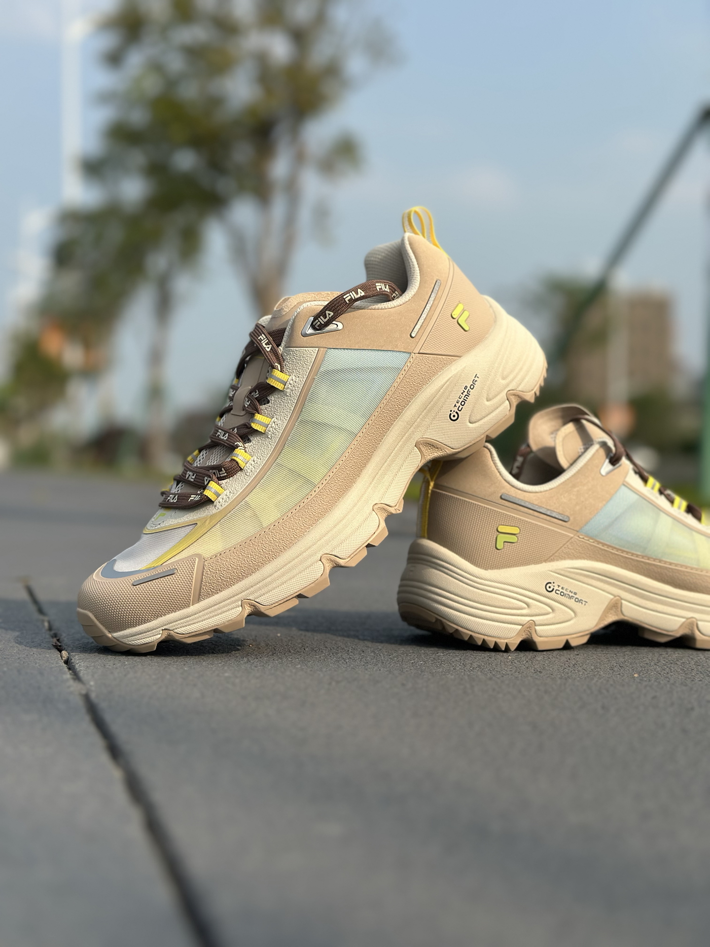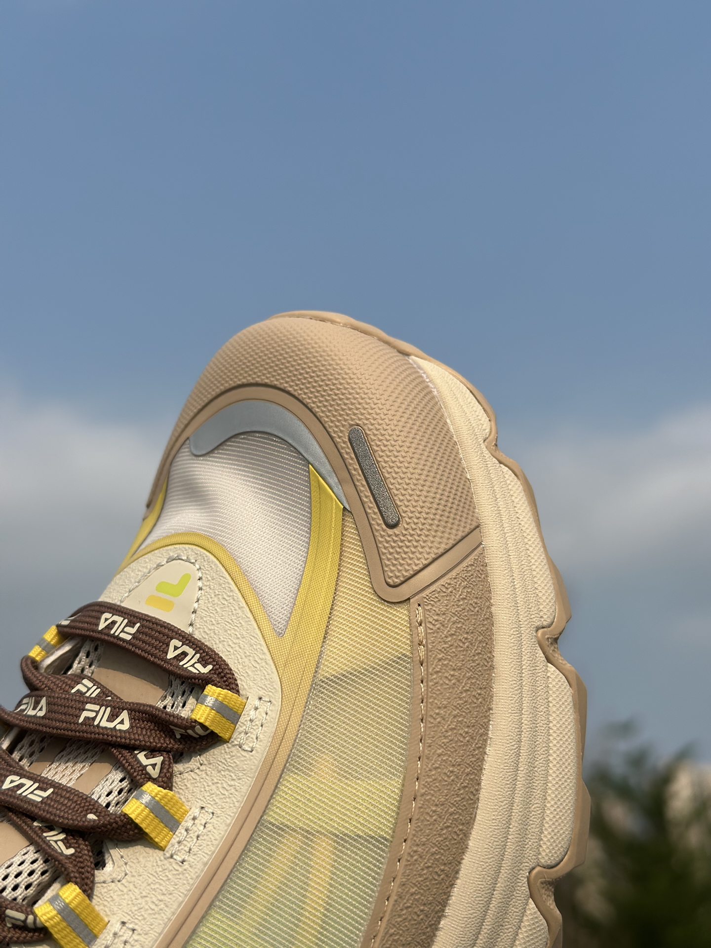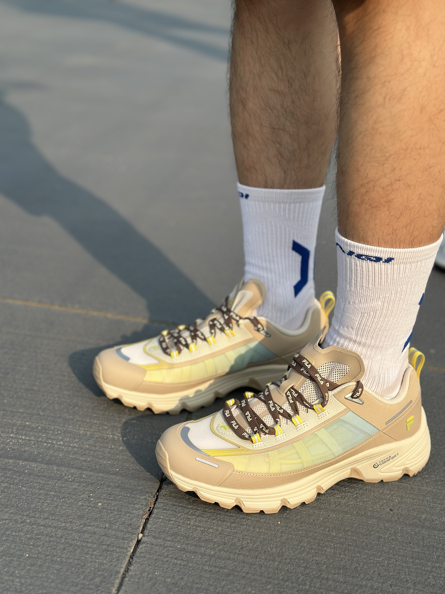 FILAFUSION COMO X 这次真的把都市轻户外玩明白了✨! 鞋面采用多材质拼接+渐变撞色设计,燕麦棕基底搭配浅青渐变与荧光黄点缀,机能感拉满,还不挑穿搭🤩! 发泡中底软弹缓震直接拉满,久走完全不累脚💪;Vibram黄金大底,湿地防滑、耐磨抗造,通勤、轻徒步双场景通吃✅! 而且宽楦设计对宽脚、高脚背极度友好,厚底造型还能悄悄增高📈! 尺码不偏,想入手的正常拍就可以。