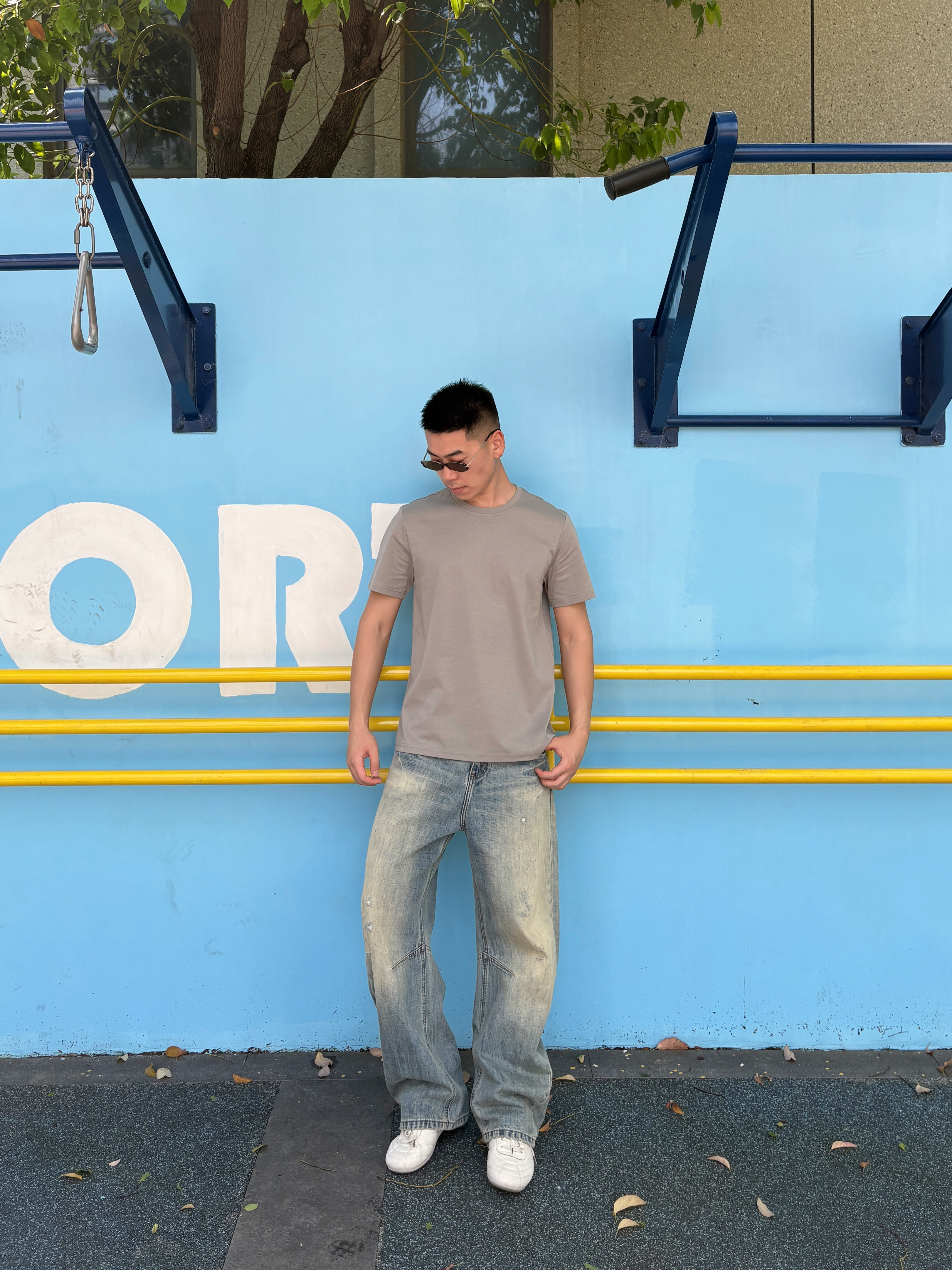 👦181cm 75kg 👕➡️XL 宽松效果~ 最近杭州好热,短袖安排起来了 🩶英爵伦ENJEOLON 家这款纯色T,穿一次就直接拿捏我了! 🤨我最爱的就是它们家这款T恤的面料! 😍丝光棉的材质,第一次尝试,真的很丝滑高温穿很舒服,出汗也不会粘身子,很清爽~🌴 款式都是大方,纯色的,更好搭配衣服,搭配牛仔裤➕板鞋,大大方方的~