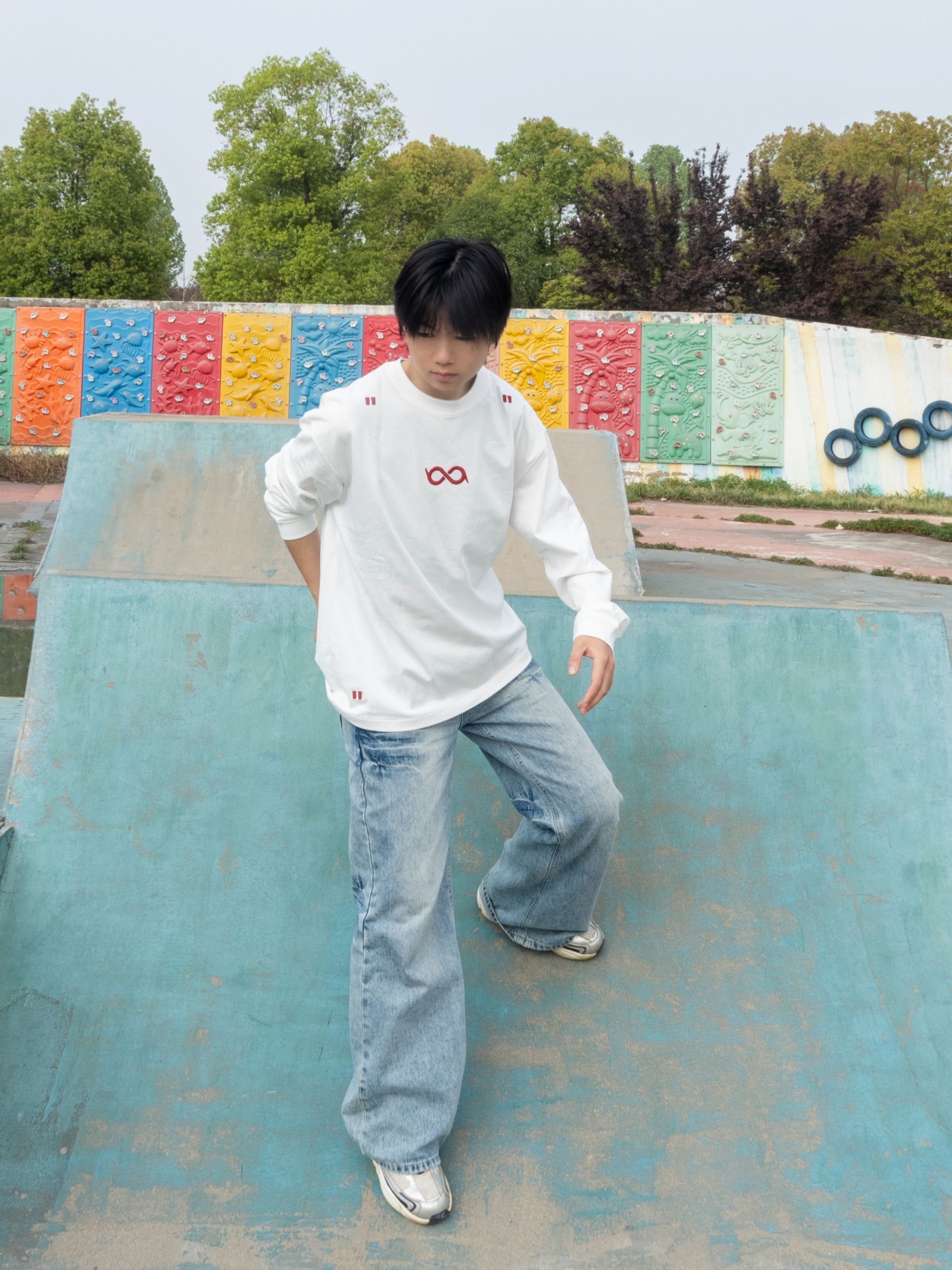 今天我穿的是无限♾️环白T 真的是越简单,越高级🤨 一身基础款, 穿出最舒服的松弛感🧐 滑板场、日常、上学都能穿 干净清爽才是真的帅😎
