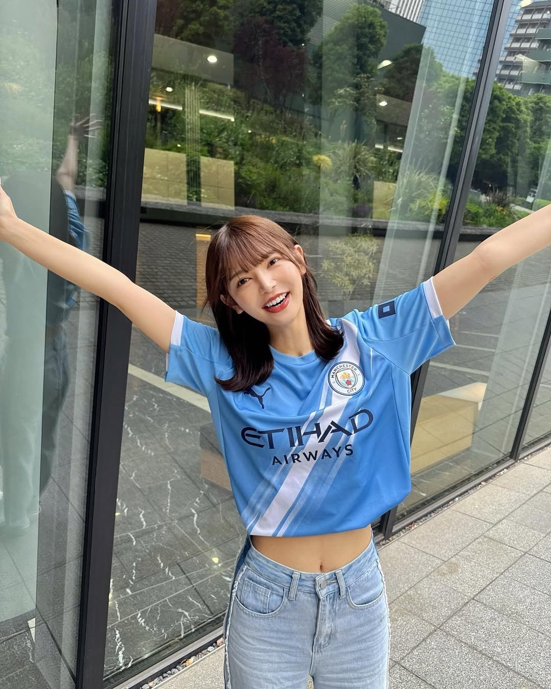 💡💡💡菜嘉小姐姐这次上身的是曼城最新的本赛季的主场球衣,这件球衣相较于曼城以往的主场球衣,最大的设计亮点就在于贯穿球衣整体的白色色带设计,在纯洁优雅的天蓝底色上又增添了温柔感🤩🤩 天蓝色的球衣,对于女孩子来说,无论是黑色短裙还是牛仔裤都可搭配~