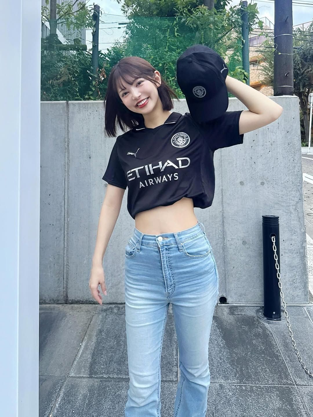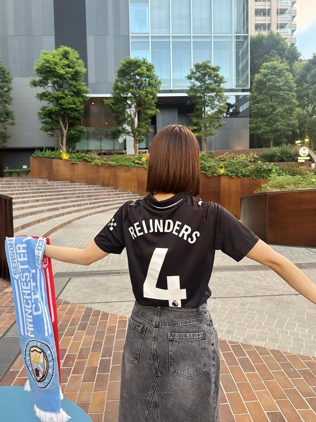 💡💡💡蔡嘉小姐姐真的是蓝月亮曼城俱乐部的铁杆球迷,几乎入手了曼城的每一件球衣,曼城的这件黑色客场球衣也非常受女球迷的欢迎,可以当做一件具有足球元素的黑色T恤来进行日常搭配,小姐姐选择的是曼城黑色棒球帽和浅蓝色牛仔裤进行搭配,不过这件球衣也给出了另一种穿搭思路,就是后两张图片的搭配黑色牛仔裙,相较于牛仔裤的青春感,牛仔裙更具有温柔感~