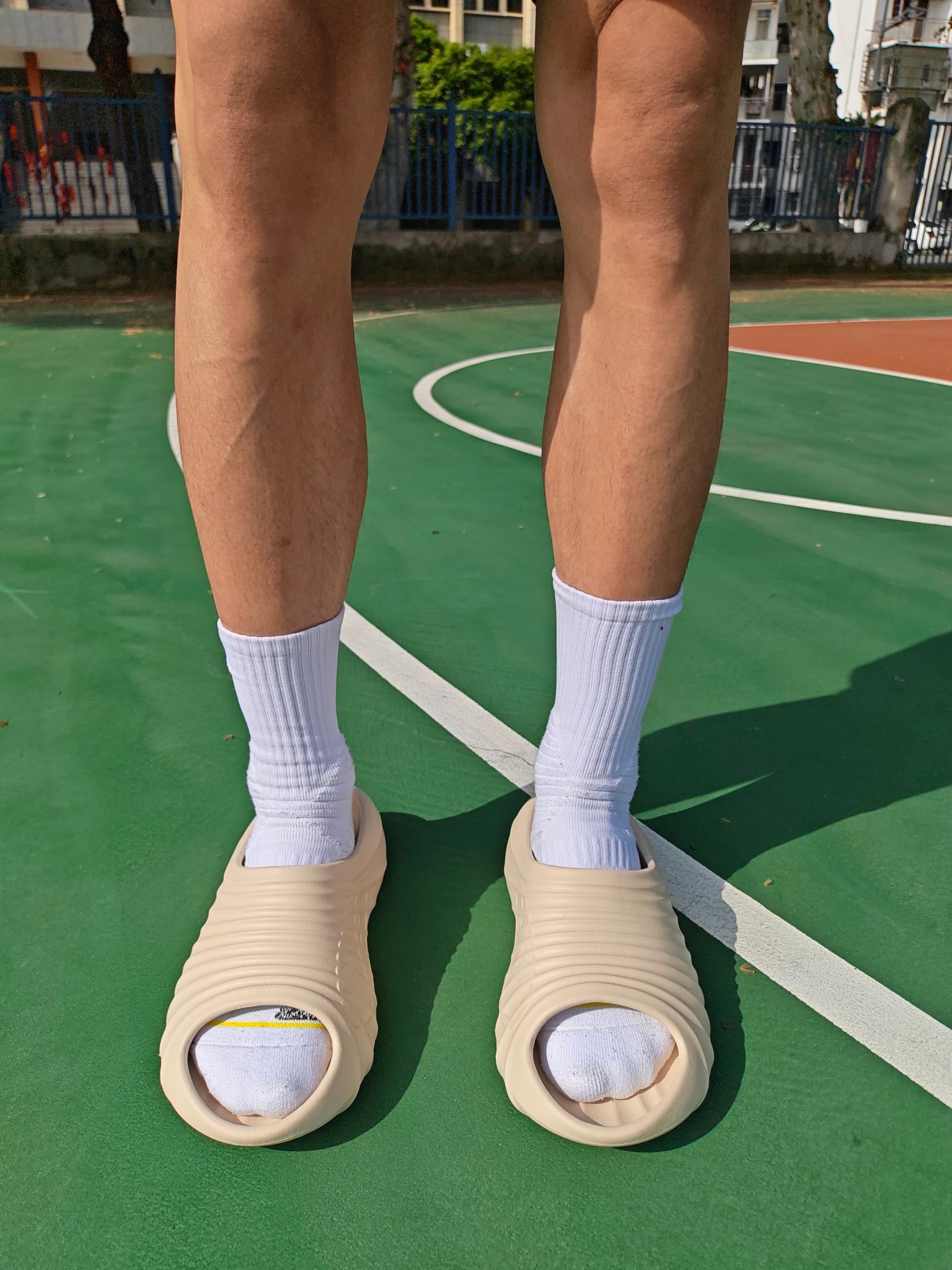 今日分享: 又到了穿拖鞋的季节了!朋友们!这里是上进, VEIDOORN 贝壳拖鞋,这个上脚真的帅气!搭配白袜清爽啊!拖鞋中底EVA发泡材料,上脚脚感舒适,走路久了不会累脚!拖鞋防滑挺不错,不容易打滑!目前,拖鞋价格也挺合适,值得咱们学生党入手啊! VEIDOORN