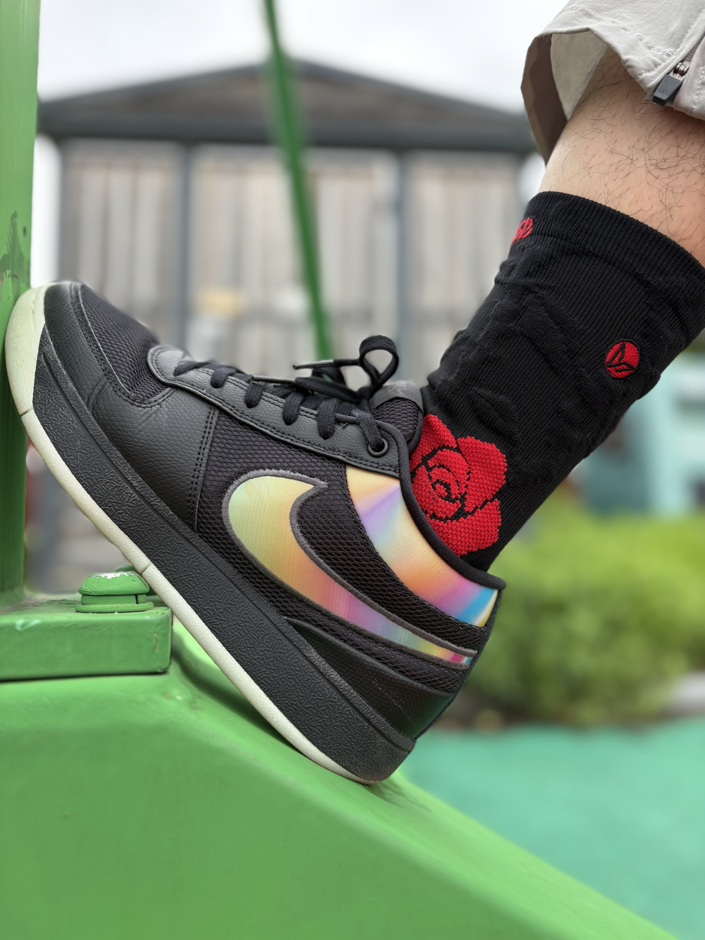 今日球袜分享: @维动VEIDOORN 星街站ROSE限定玫瑰篮球袜 也是穿过之后再次购买了 这款球袜确实让我很是喜欢 无缝袜头这一设计点就很赞 穿在球鞋里没有任何卡脚感 实战感受方面表现出色 搭配上霸气大玫瑰太帅了!