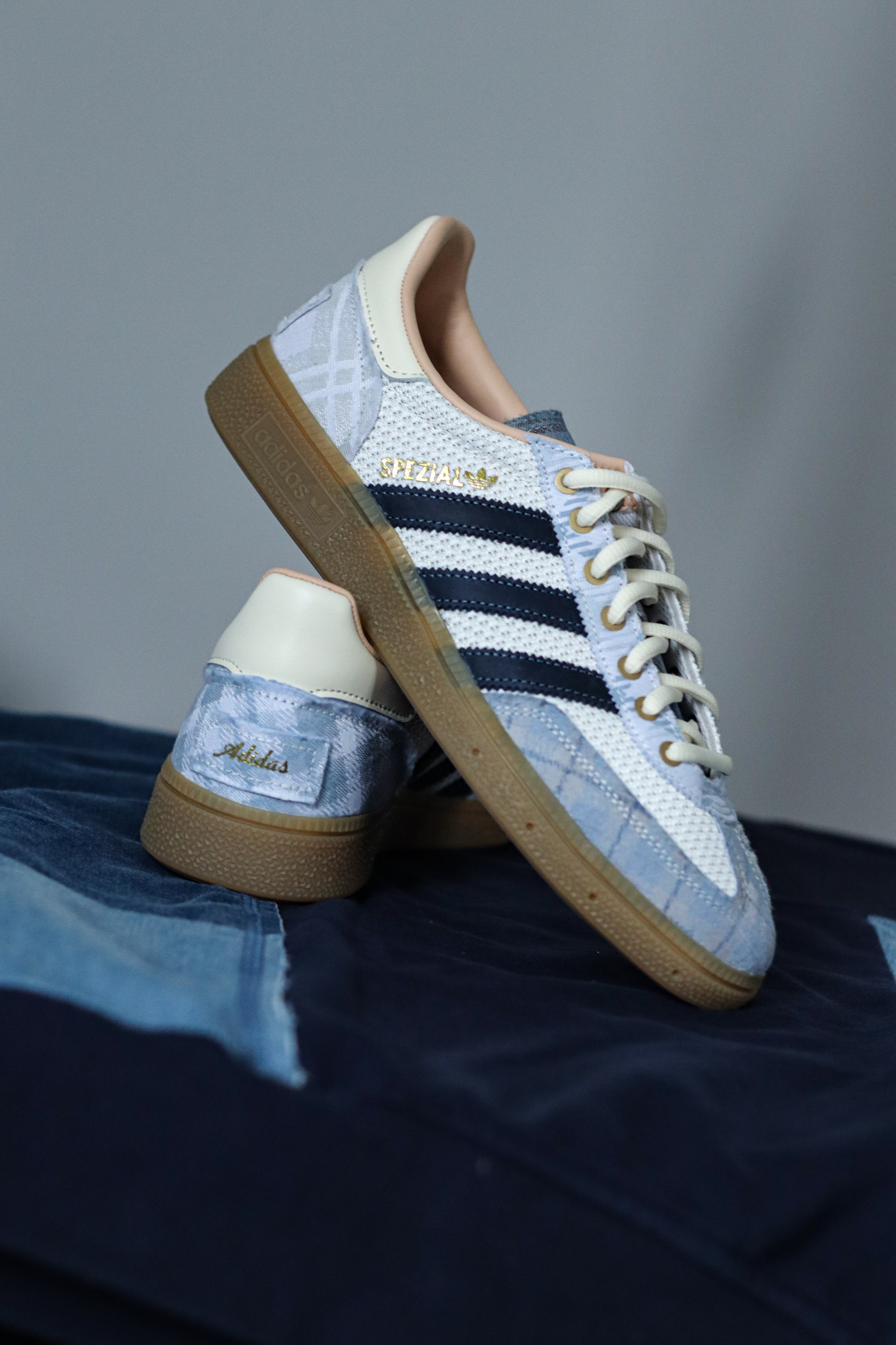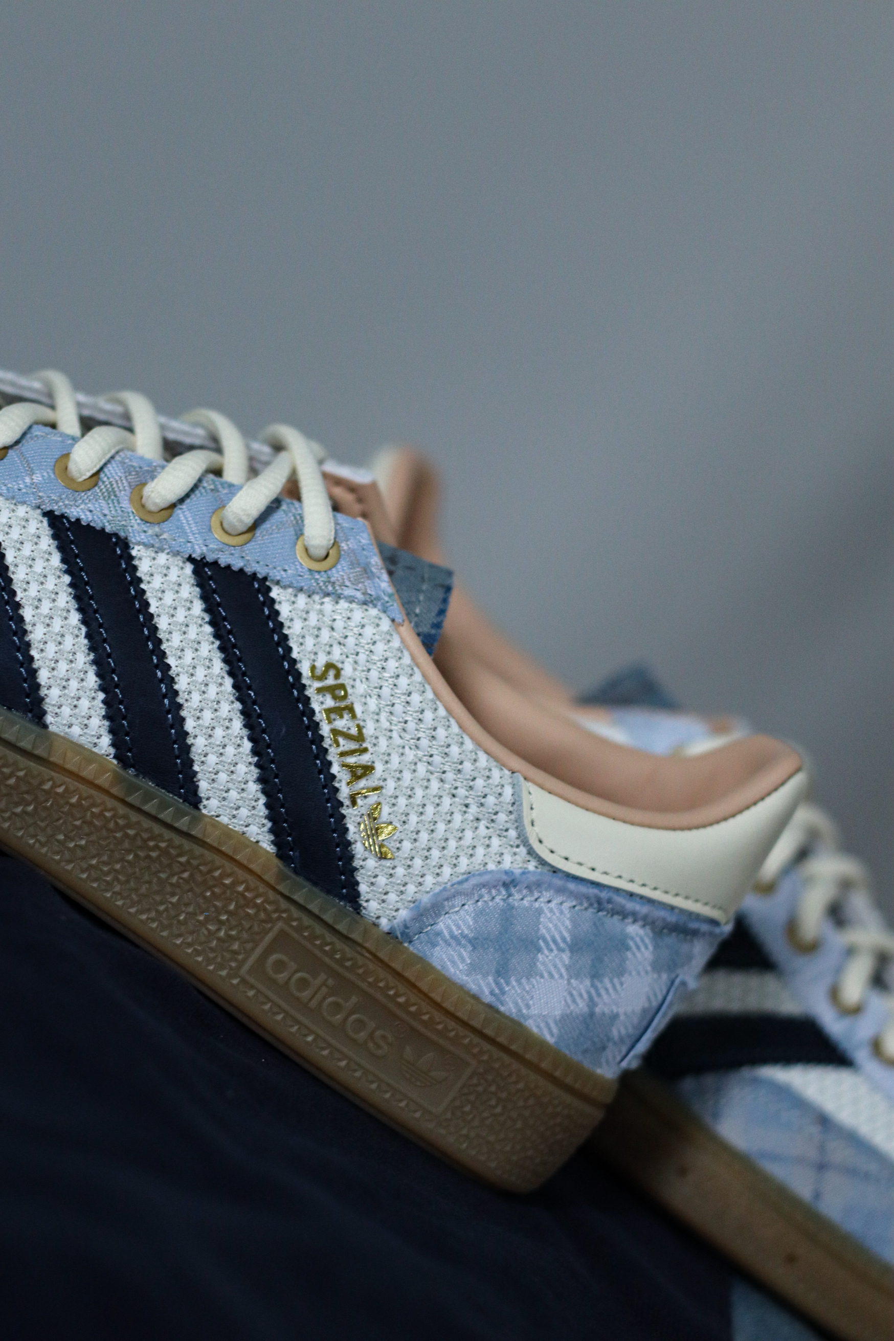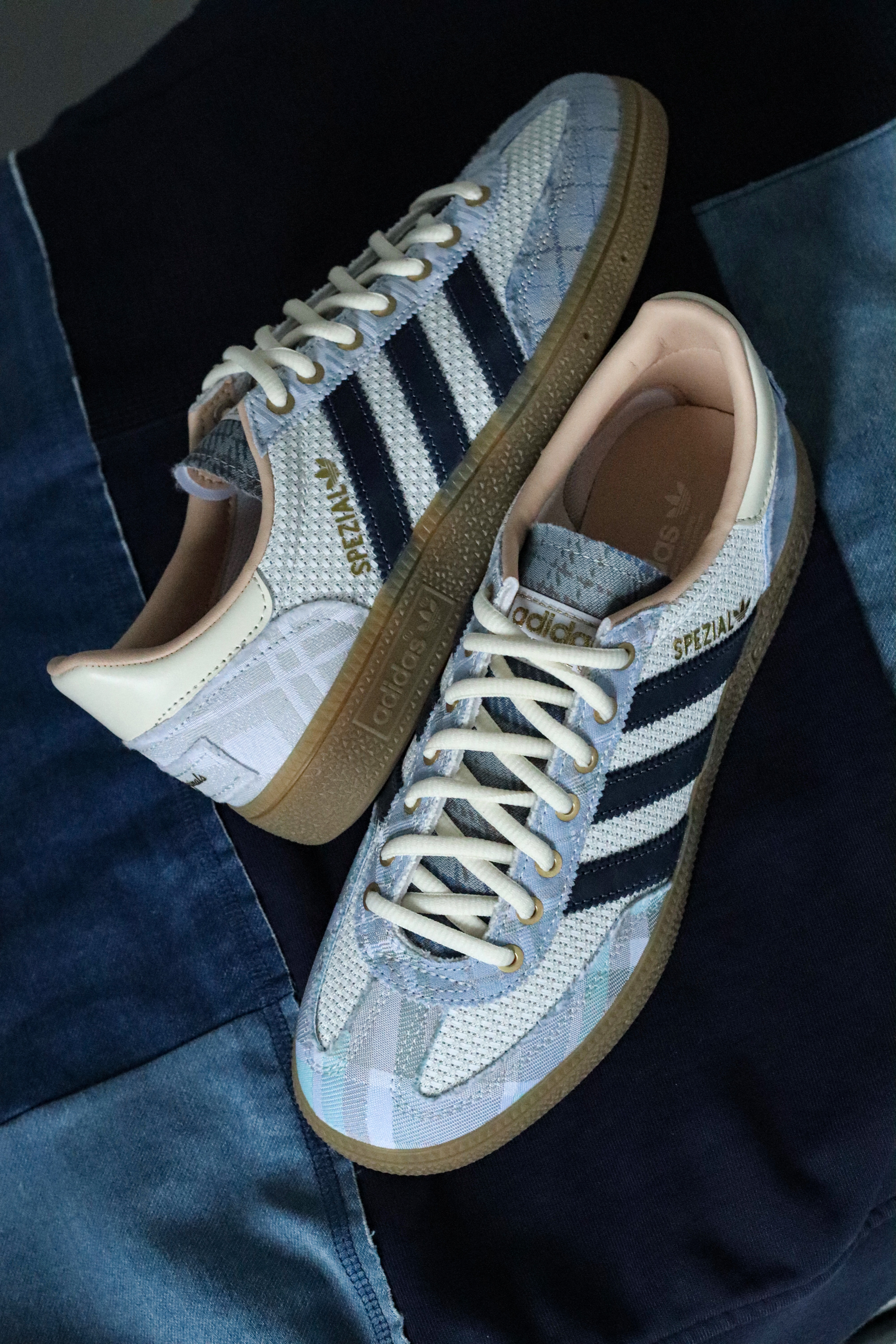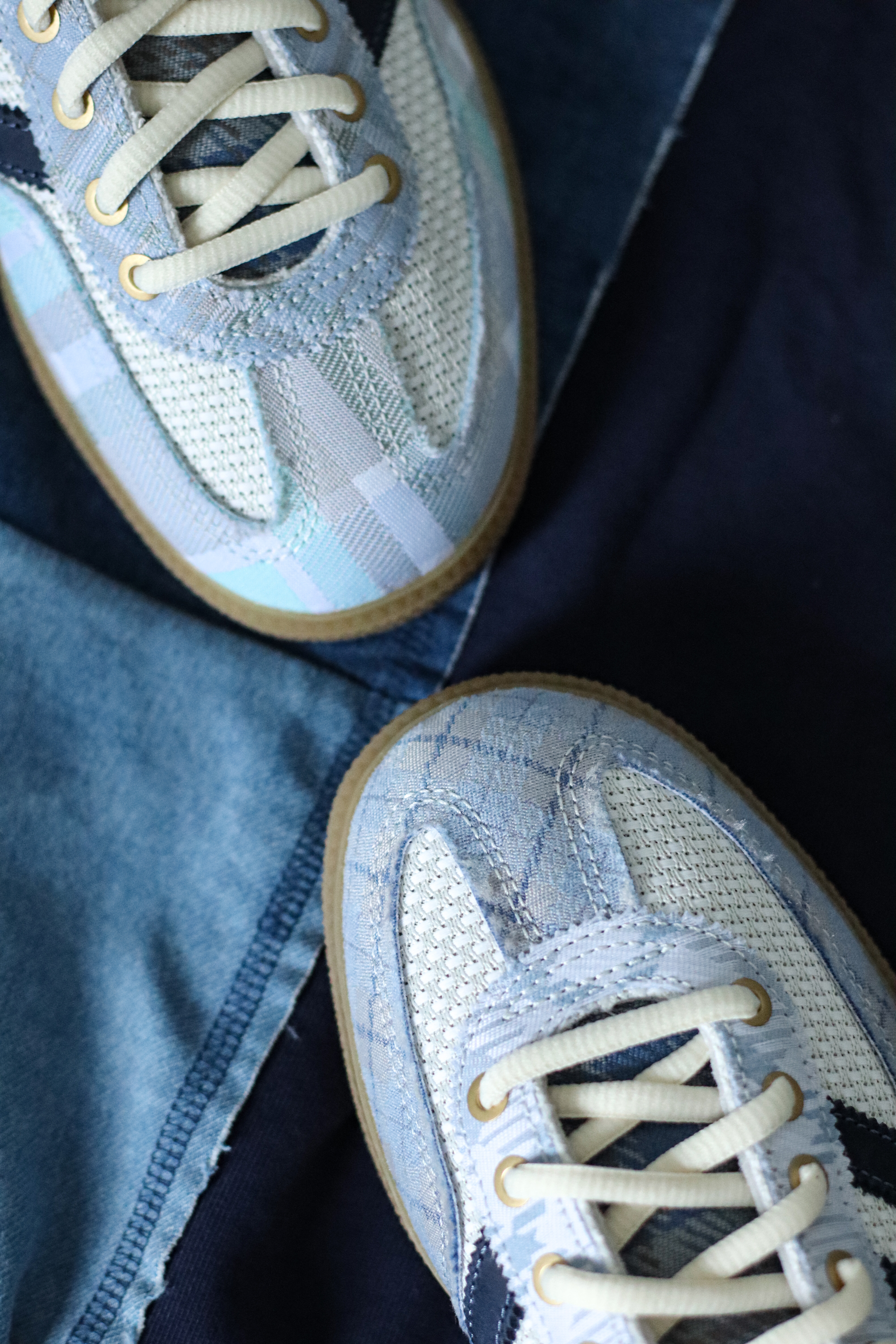 德训鞋除了Samba,我觉得HANDBALL SPEZIAL这个鞋型也很复古好看~ 整体也是经典的T头搭配修长的薄底鞋型,上脚很优雅秀气~ 这双的配色和材质也挺特别的,深浅不一的蓝色格纹牛仔布,拼接白色网眼,颜值高,质感也不错~ 金色的鞋眼孔,以及鞋侧和后跟的金色小标,有点复古小高级~ 日常通勤和出街搭配穿都很不错~不知道大家鞋柜里的宝藏德训鞋是什么呢?