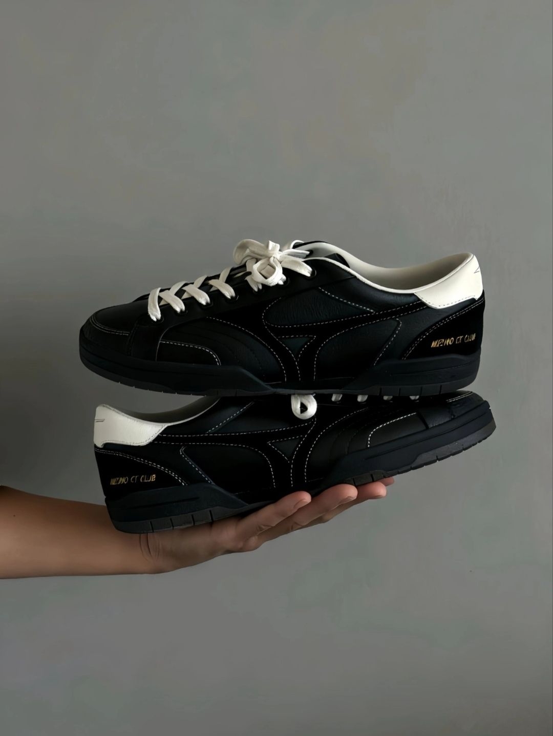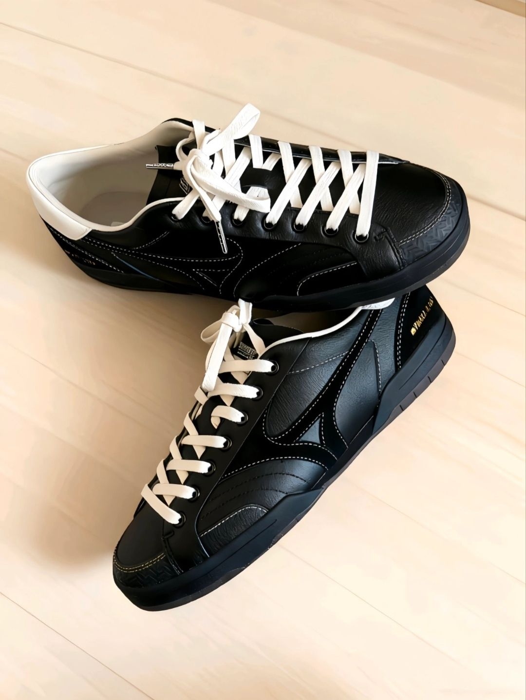 新入的这双Mizuno CT CLUB黑板鞋,实测一周必须分享给你们! 外观真的长在我的审美上,纯黑低帮+复古鞋型,妥妥的“黑武士”既视感,自带日系简约调调。我选的经典款,简直是衣柜万能搭子——牛仔裤、运动裤、甚至休闲西装裤,随便一套都不违和,男生穿干净利落,女生穿酷飒又显瘦,男女同款真的太适合当情侣鞋了!