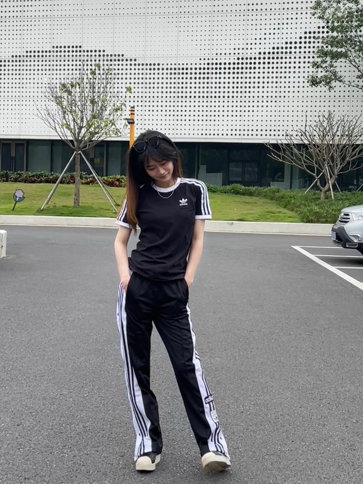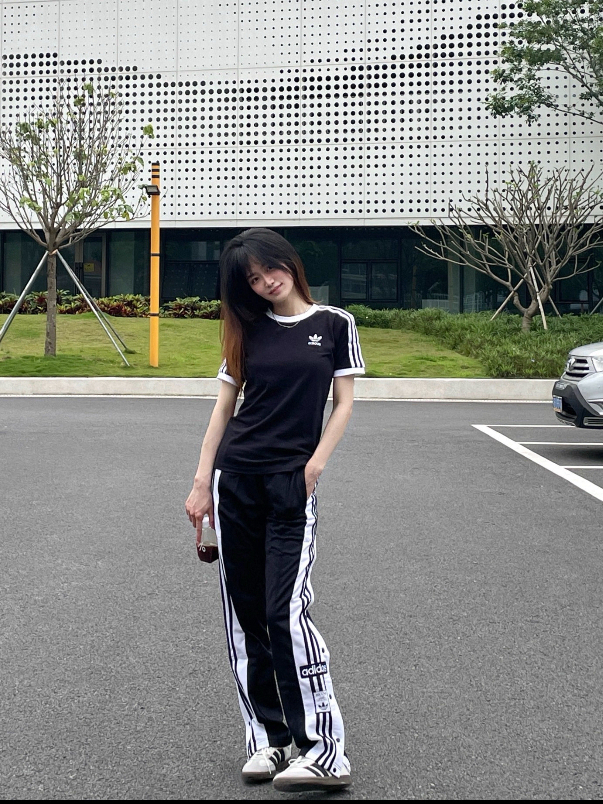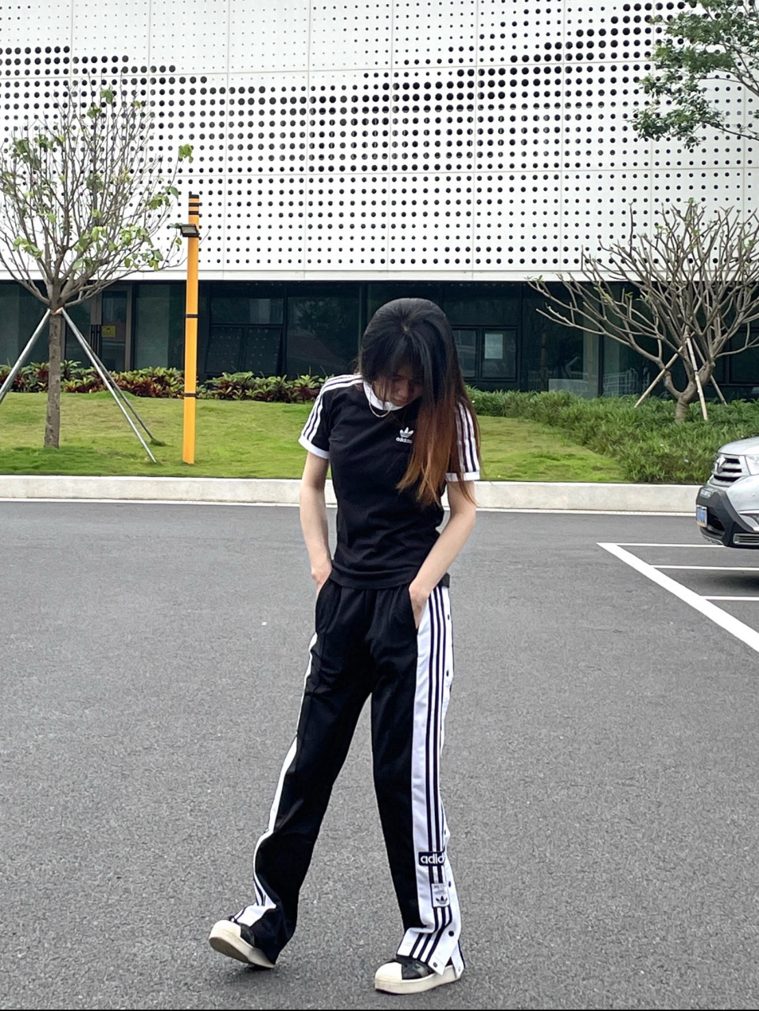 春天就是出门逛街的季节! 今天选择黑白cleanfit穿搭 阿迪黑白条纹短袖➕同色系条纹运动裤 慵懒又帅气! 再来一双经典三叶草德训鞋 不挑人还好看 男女生都OK哦~